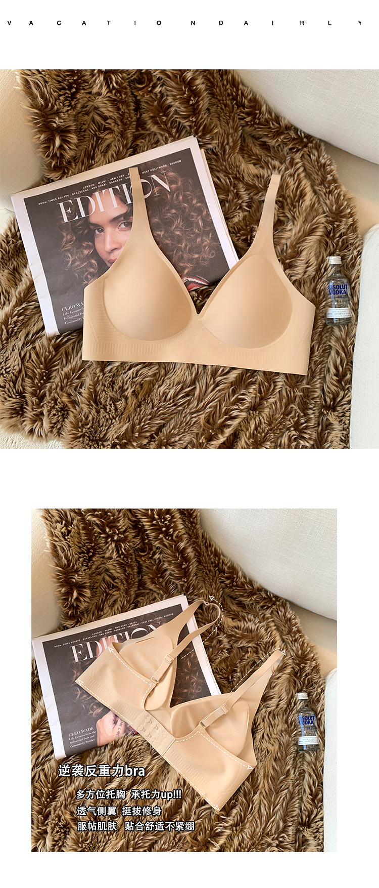 软支撑无痕内衣女上托防下垂大胸显小胸舒适裸感无钢圈薄款文胸罩
