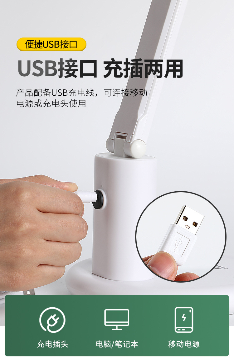 外贸专供LED台灯护眼专用学生充电式家用阅读床头可调光