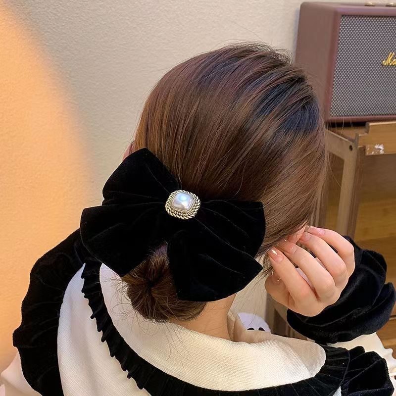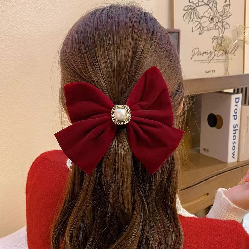 新年发饰红色丝绒蝴蝶结弹簧夹春节虎年头饰法式复古ins风后脑勺