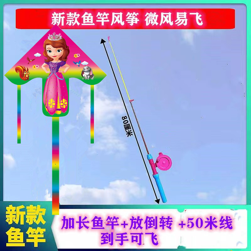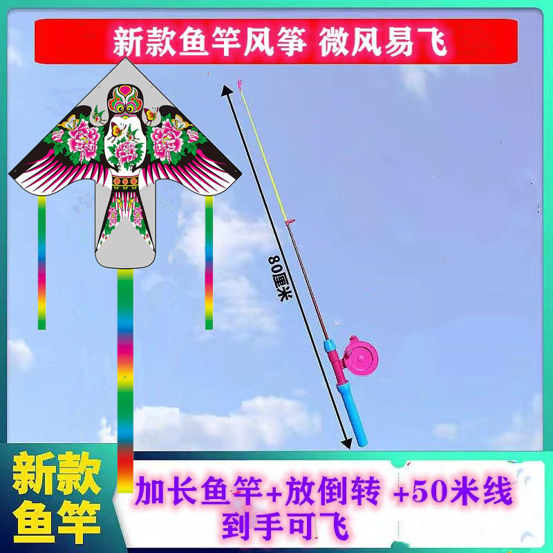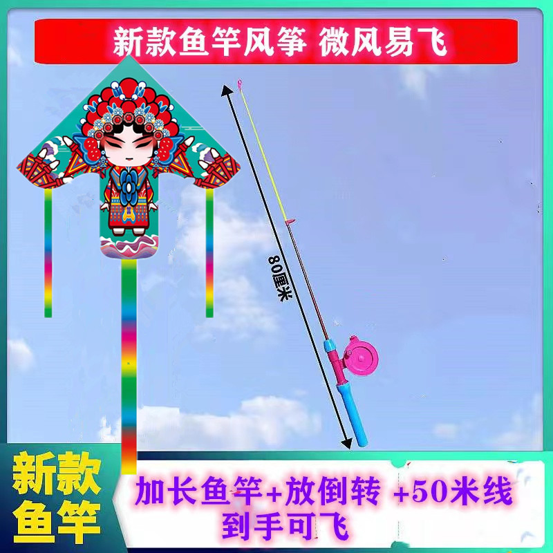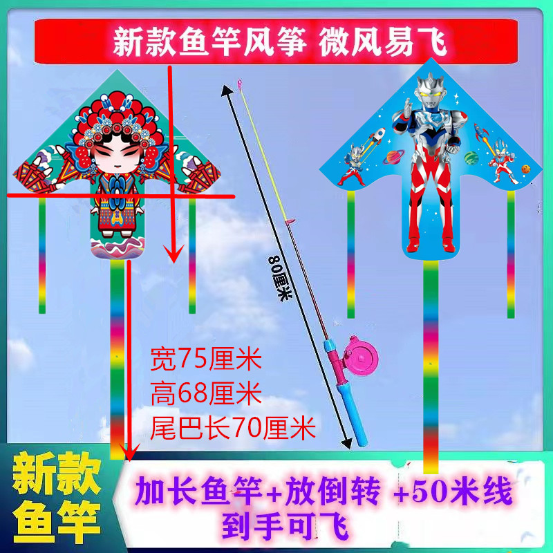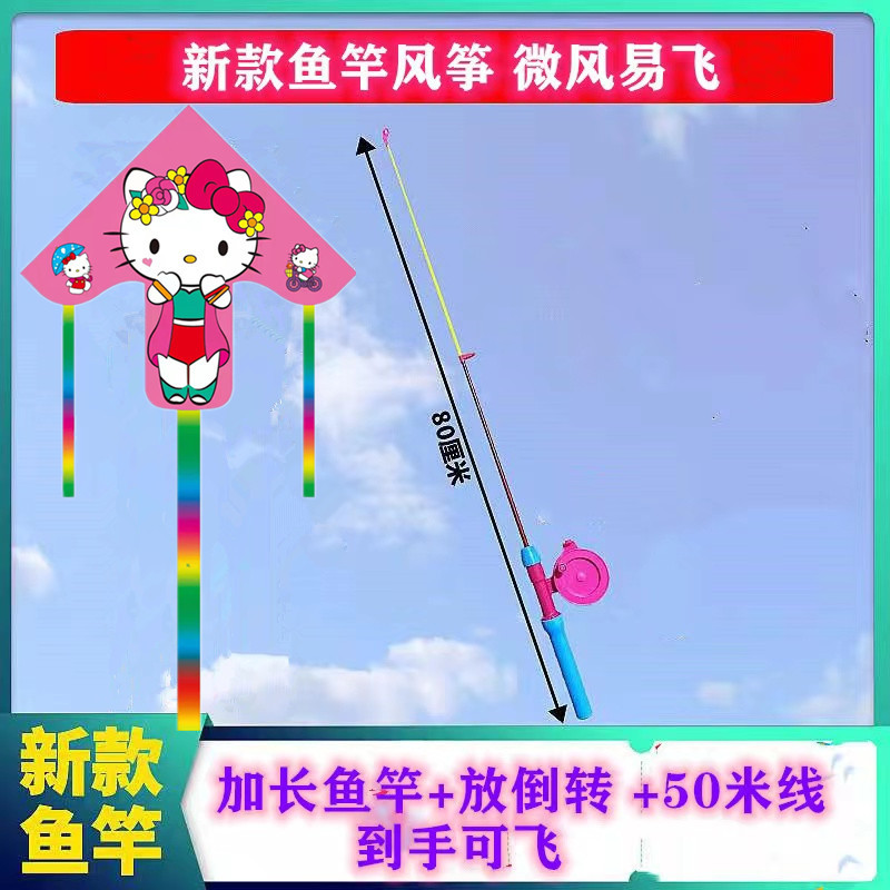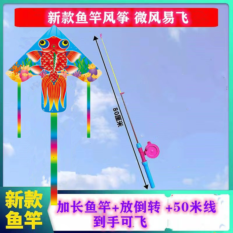 儿童手持鱼竿风筝塑料风筝鱼杆风筝大量批发鱼竿风筝地摊批发新款