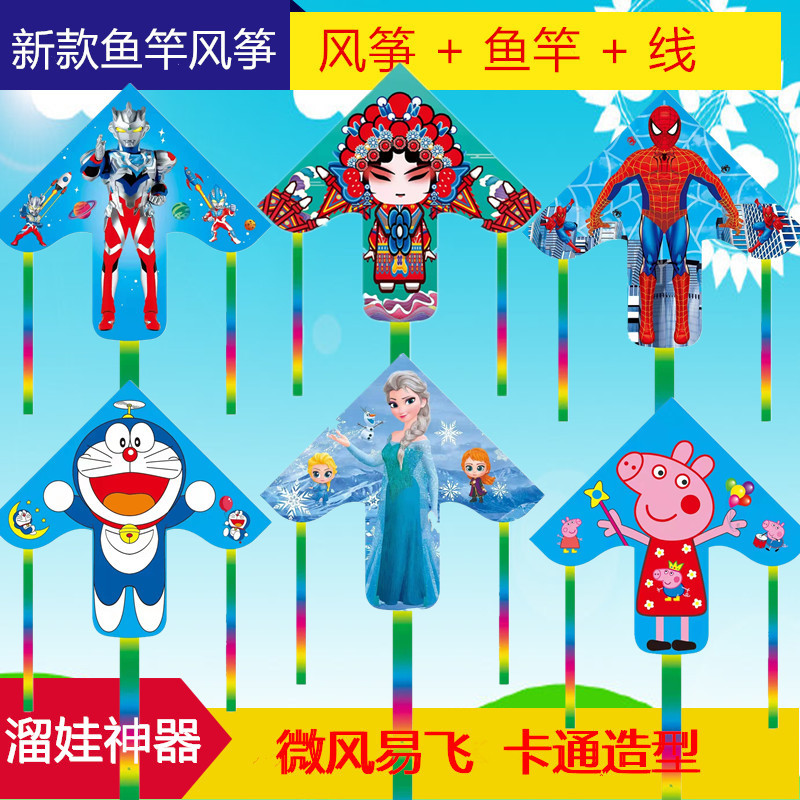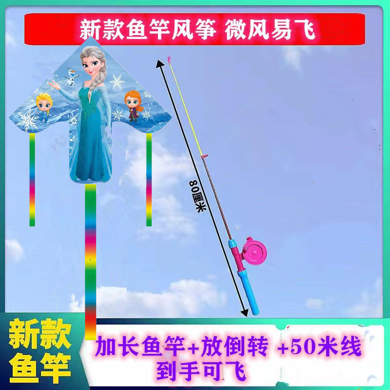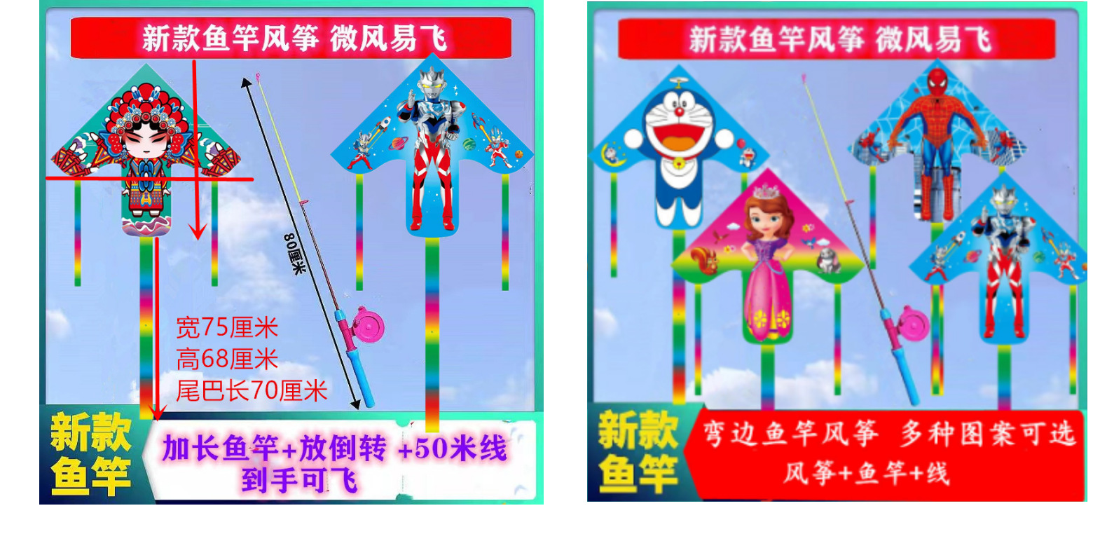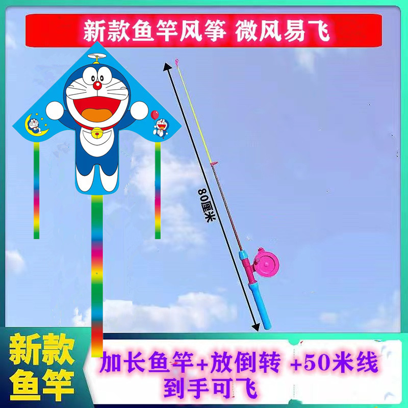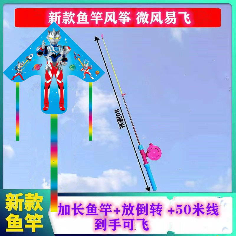 儿童手持鱼竿风筝塑料风筝鱼杆风筝大量批发鱼竿风筝地摊批发新款