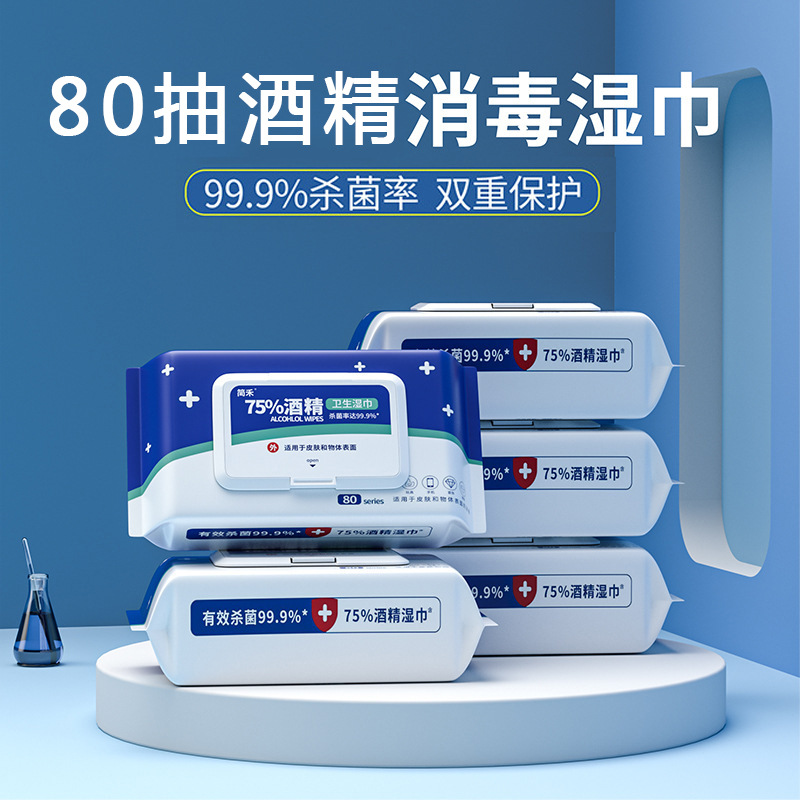 75度一次性卫生酒精消毒湿巾酒精湿巾大量批发独立包装家用湿纸巾
