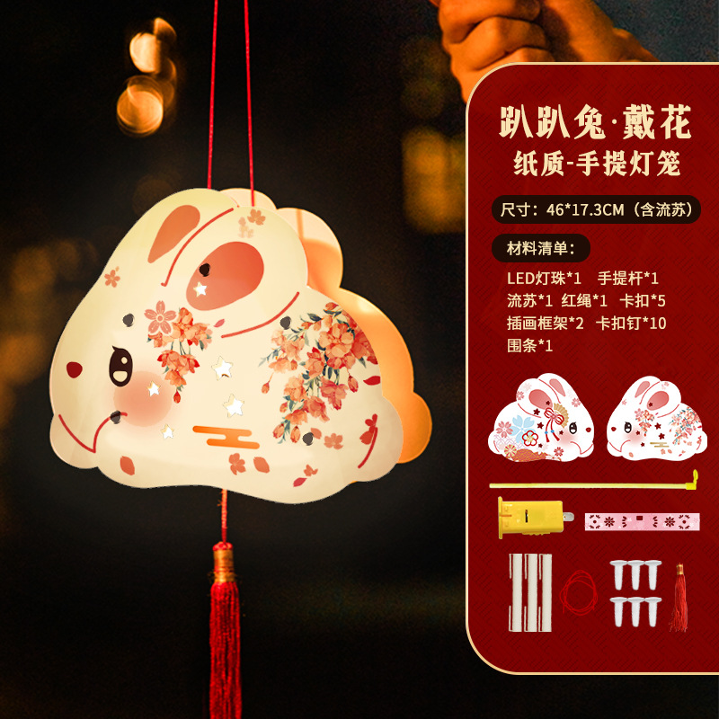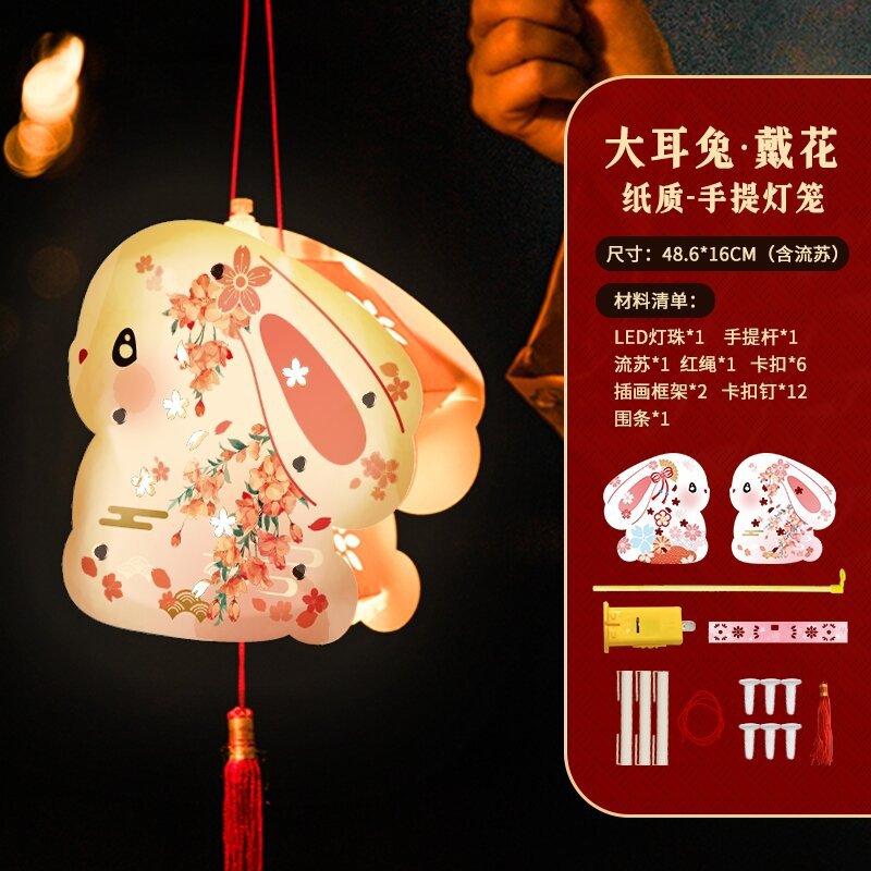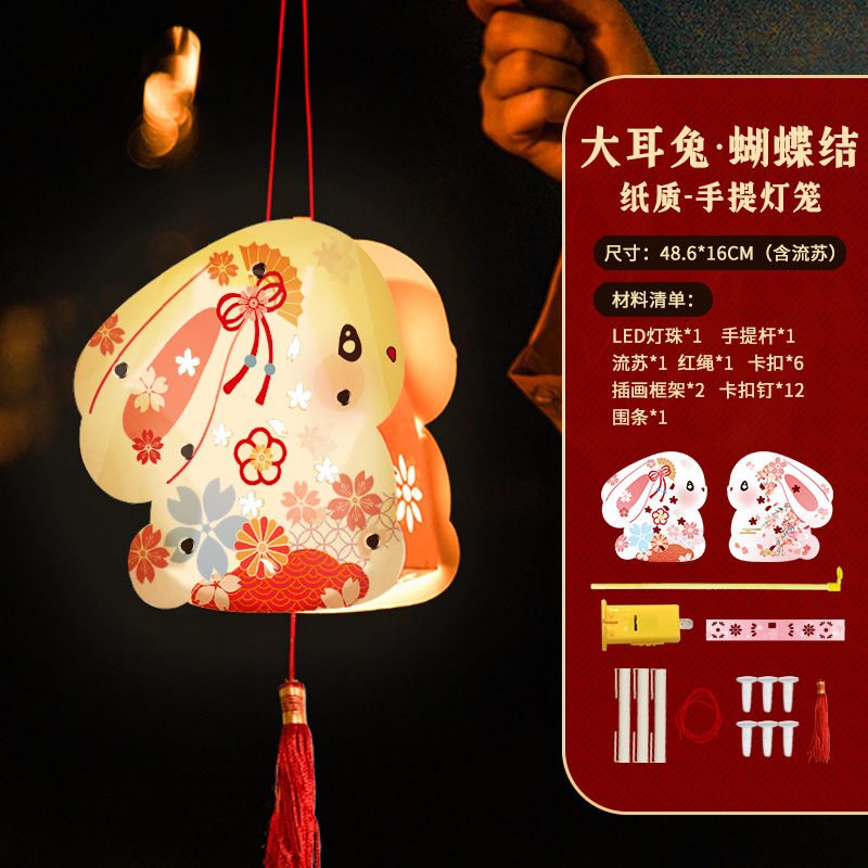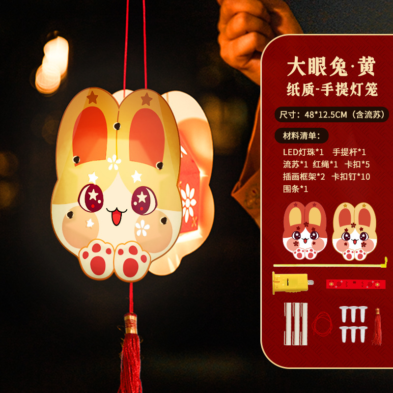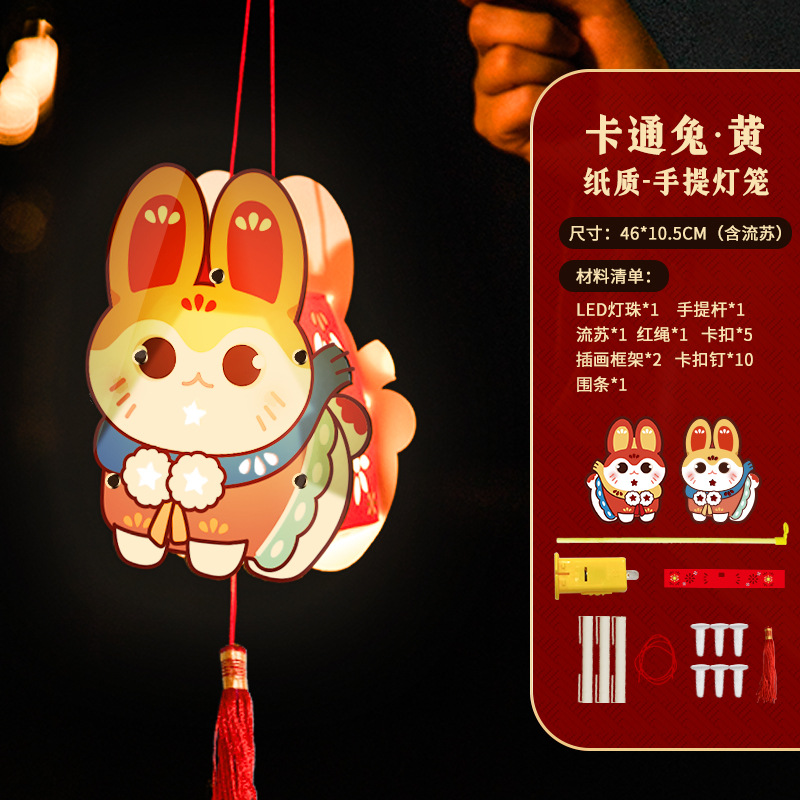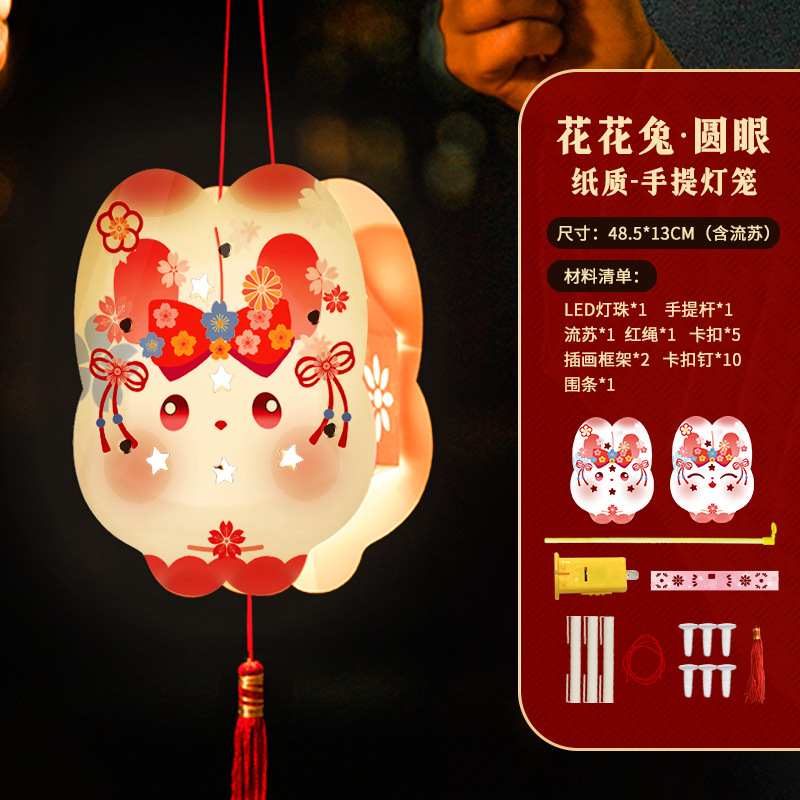 灯笼批发兔子灯花灯元宵节手提小灯笼儿童布置diy发光纸灯笼玩具