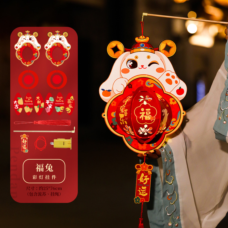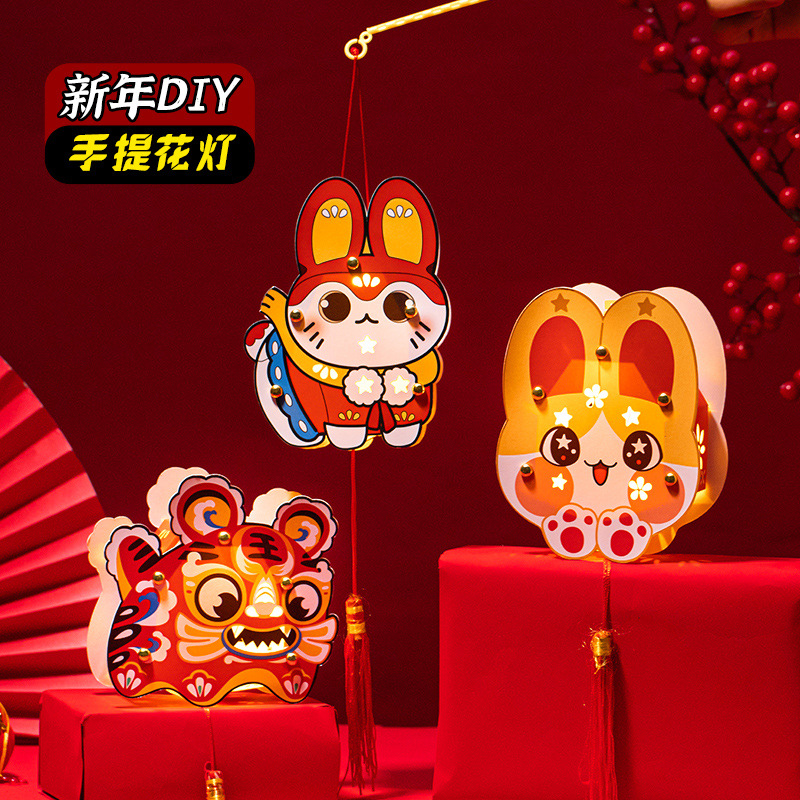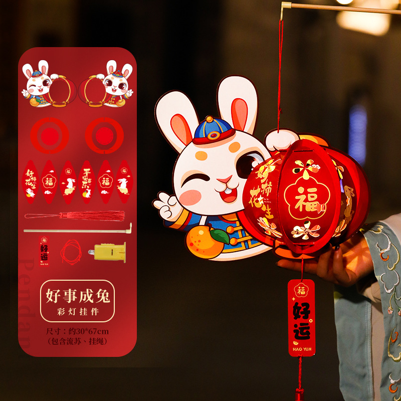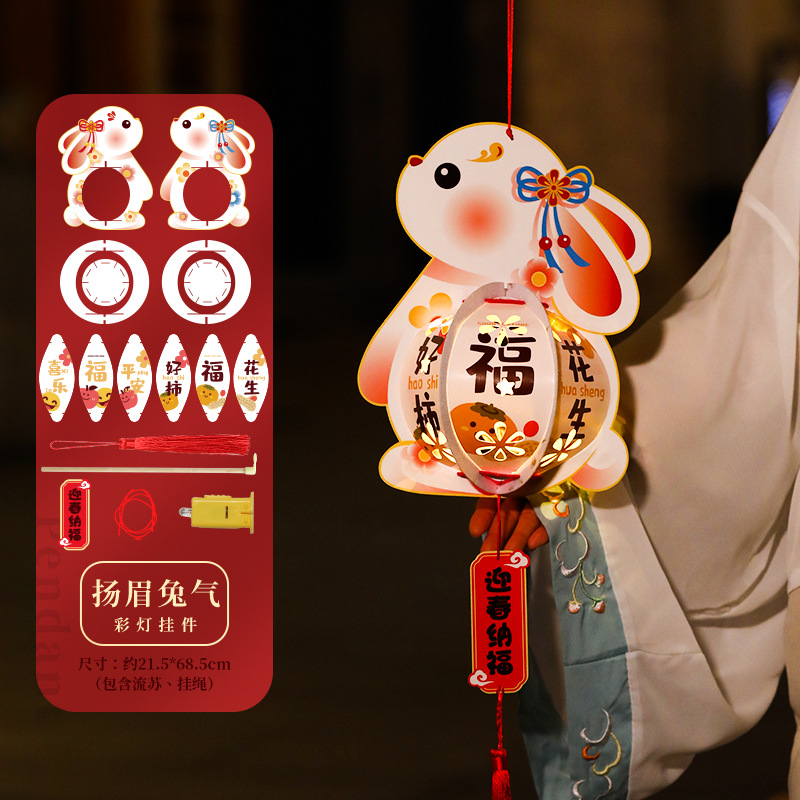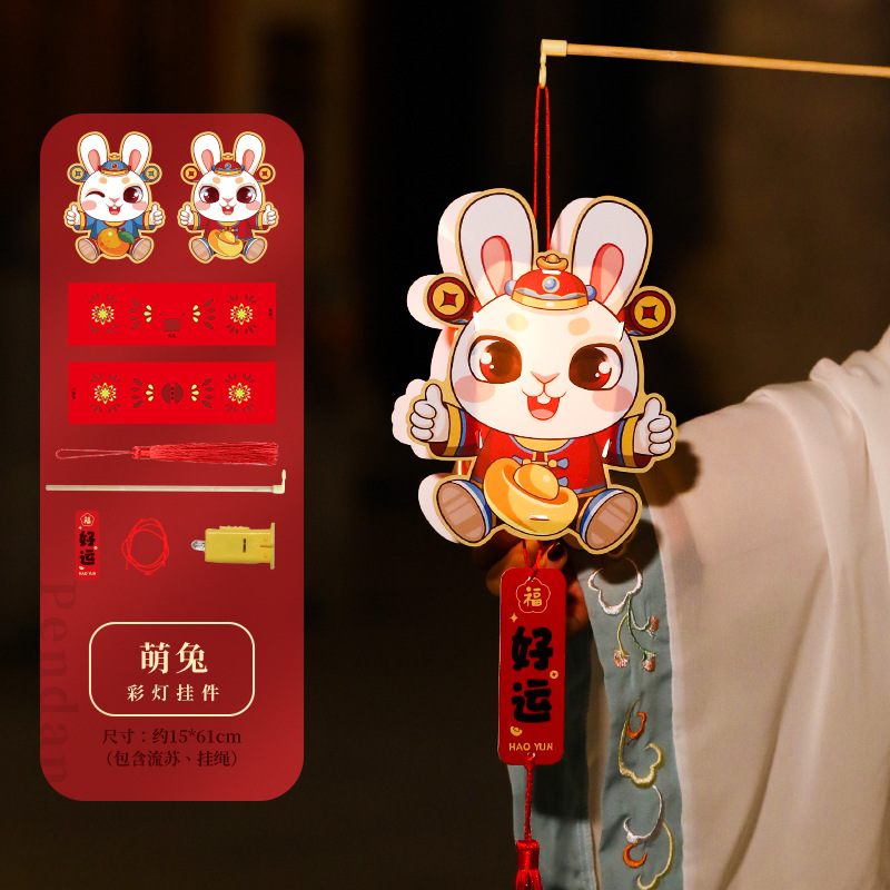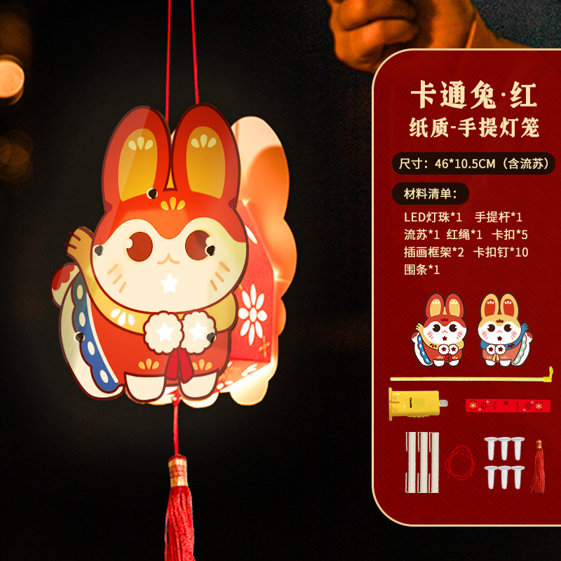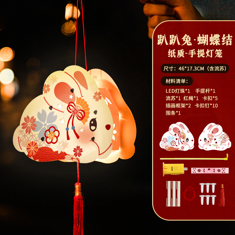 灯笼批发兔子灯花灯元宵节手提小灯笼儿童布置diy发光纸灯笼玩具