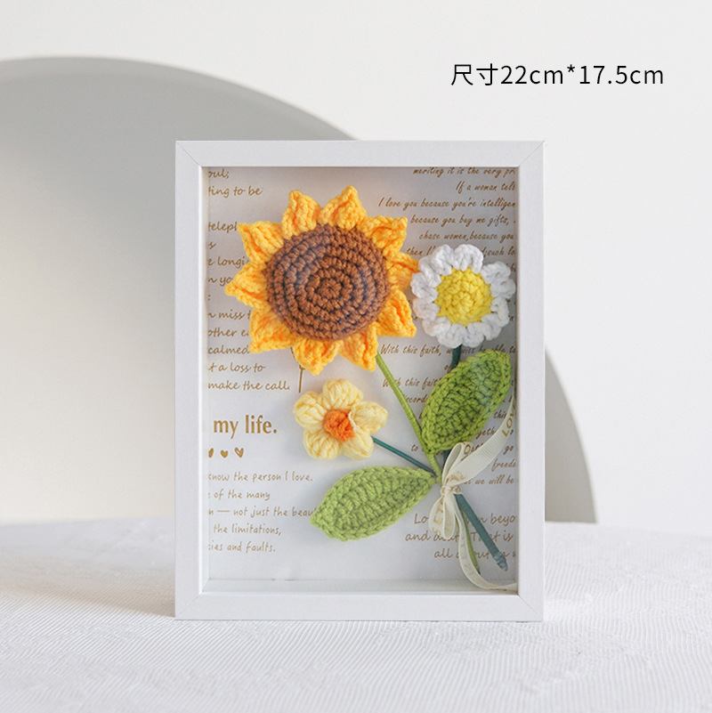 情人节混搭花束手捧渐变玫瑰相框花束成品diy毛线手工编织礼品