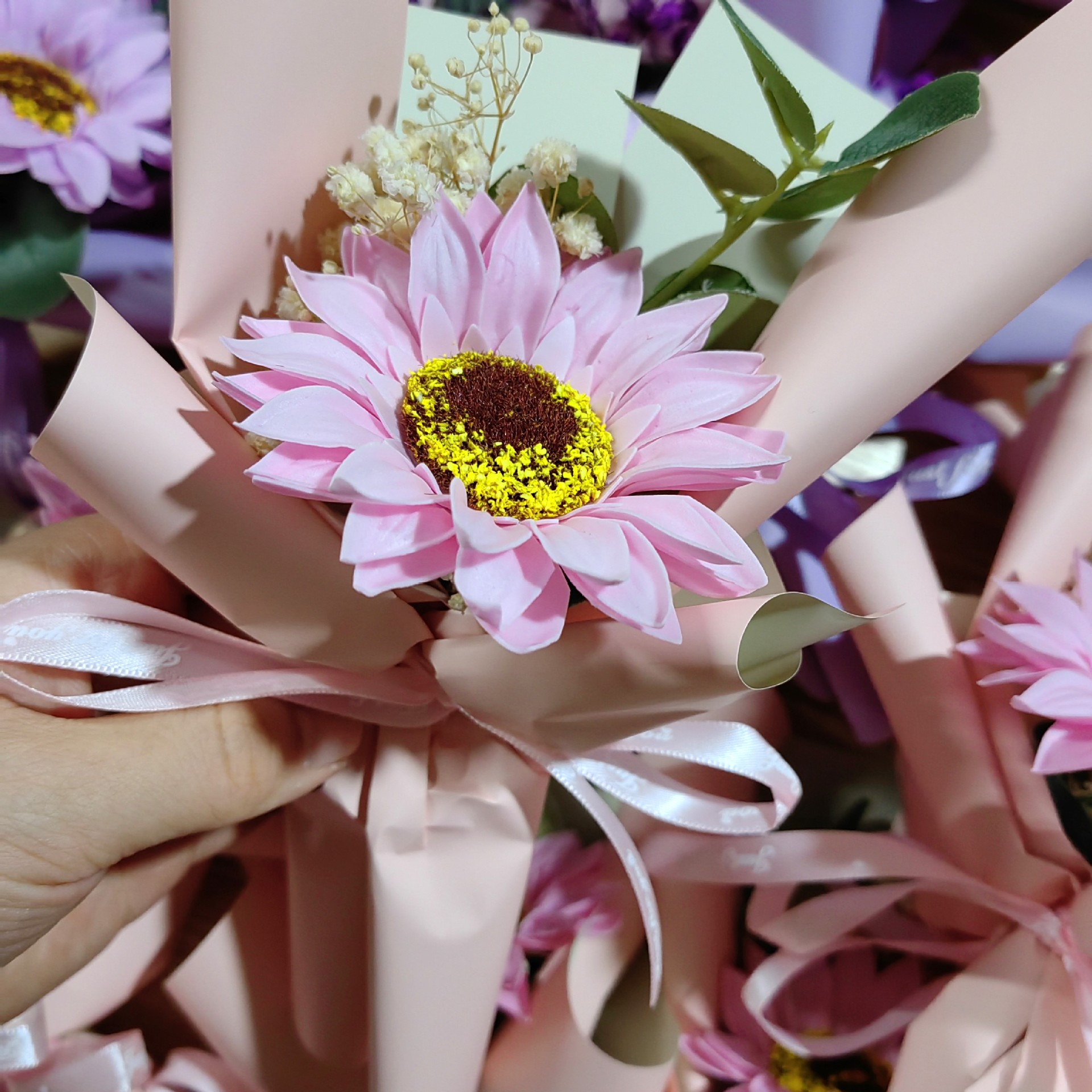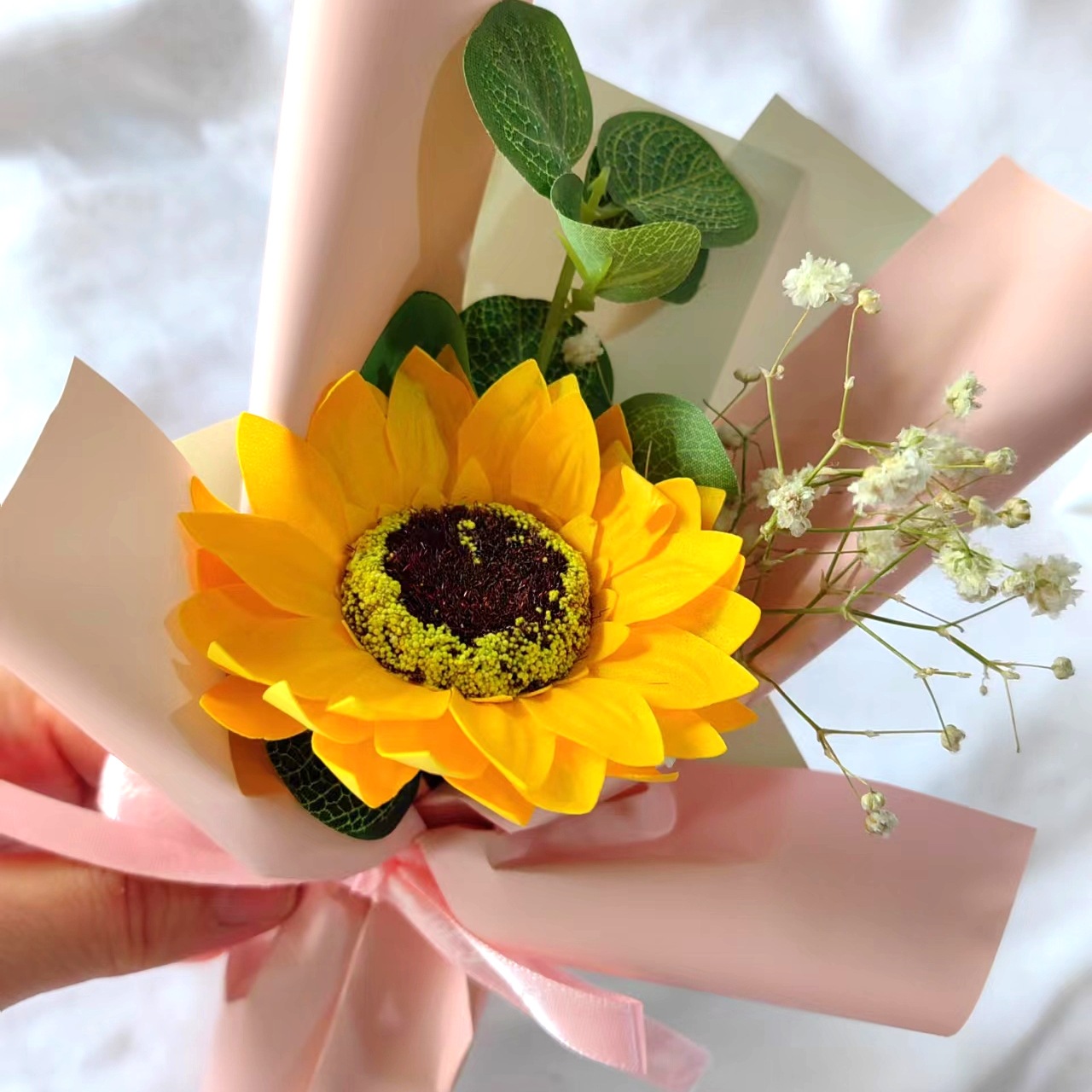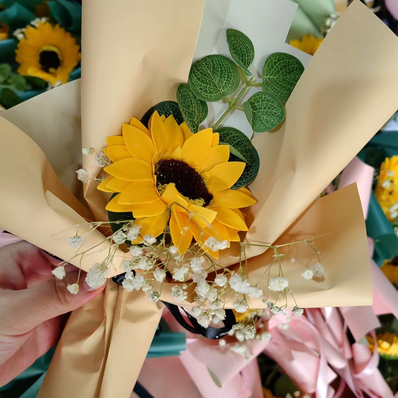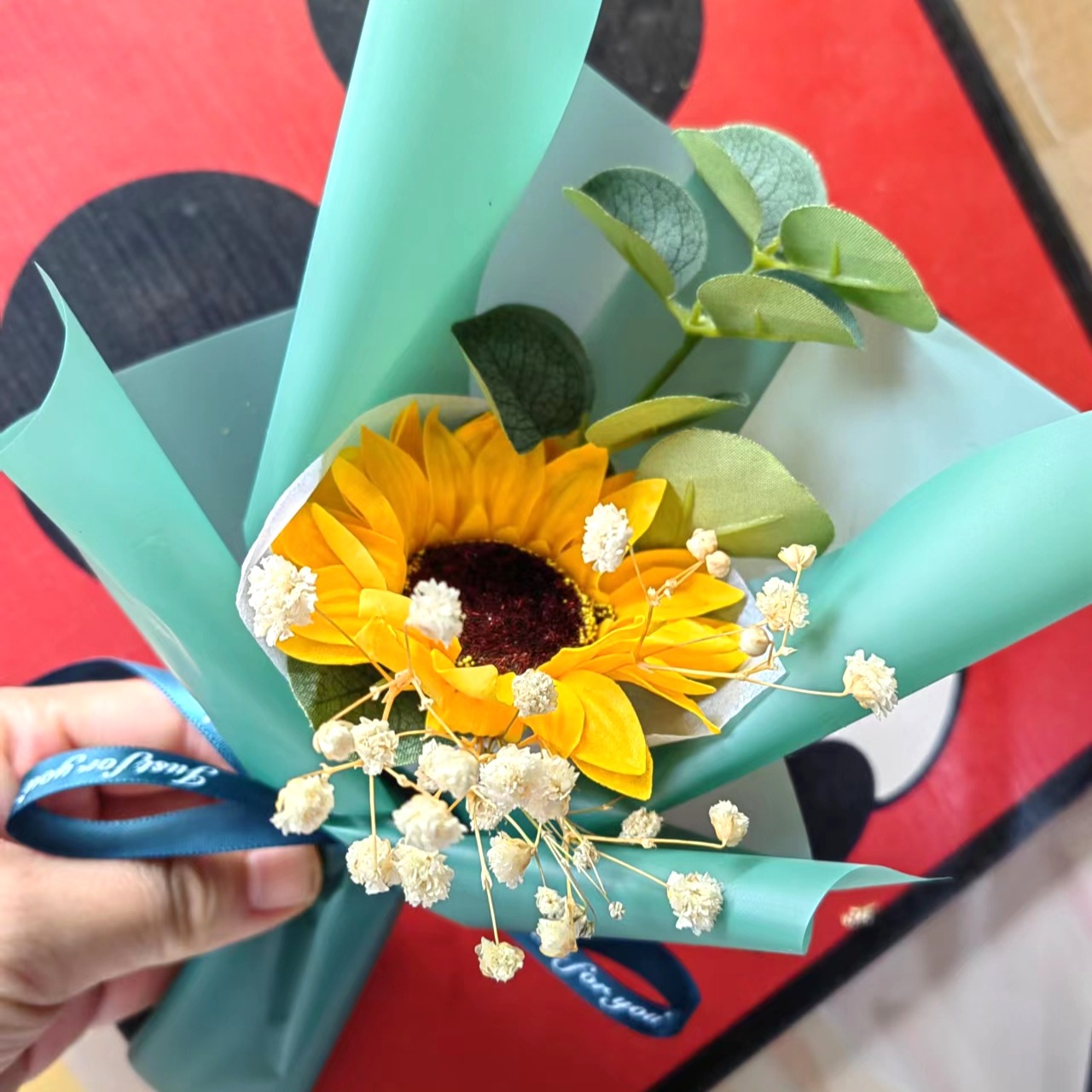 新款情人节花束礼物花束向日葵香皂花满天星干花花束礼盒搭配花