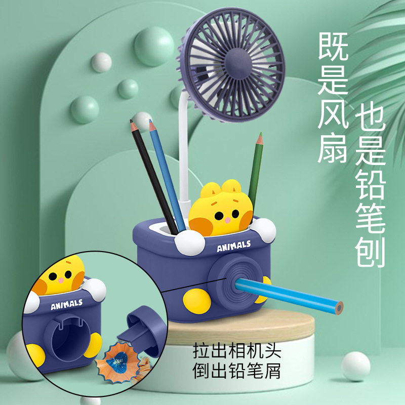 2022萌猫削笔刀笔筒台式小风扇迷你可充电便携式桌面学生儿童随身