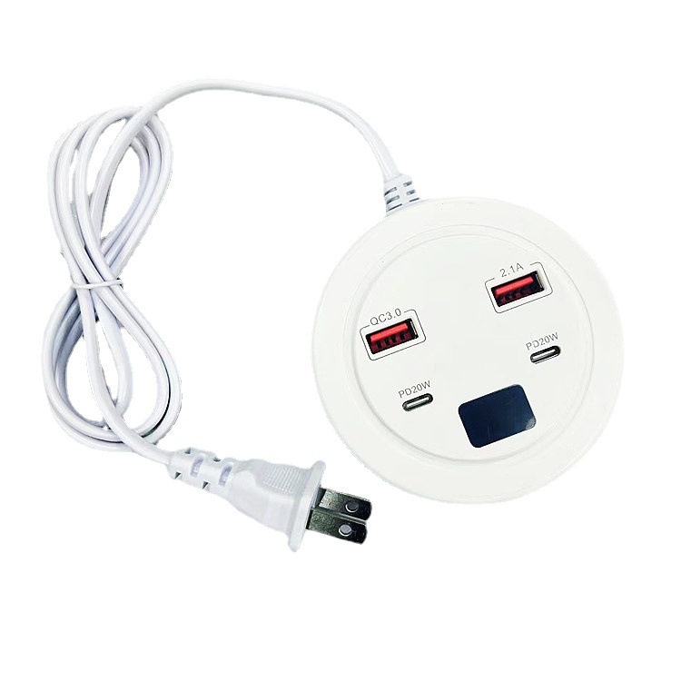 新款多口PD排插 带显示屏数显快充充电器 多功能智能排插欧规美规