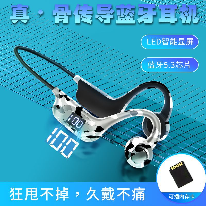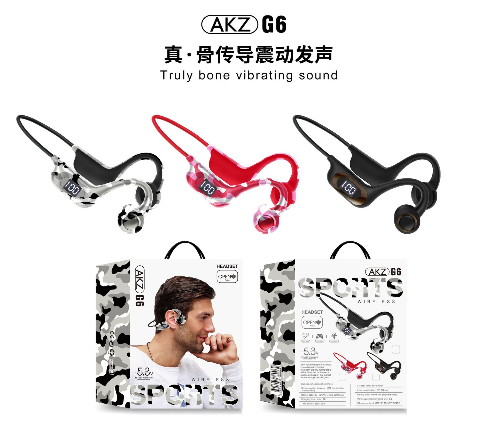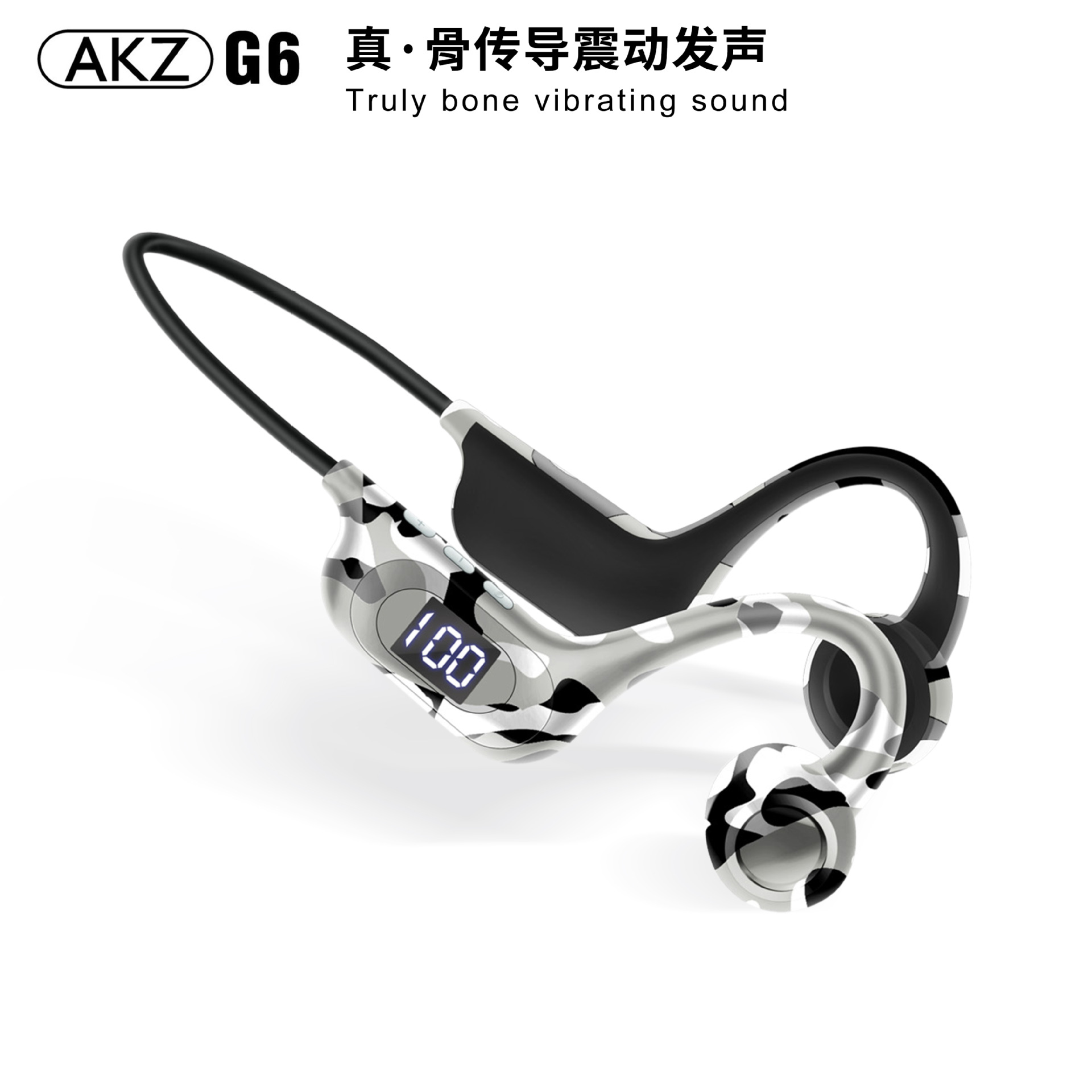 AKZ-G6骨传导蓝牙耳机迷彩涂鸦数显无线空气传导跑步运动耳机爆款