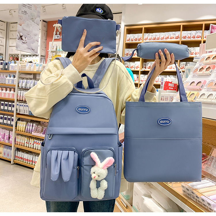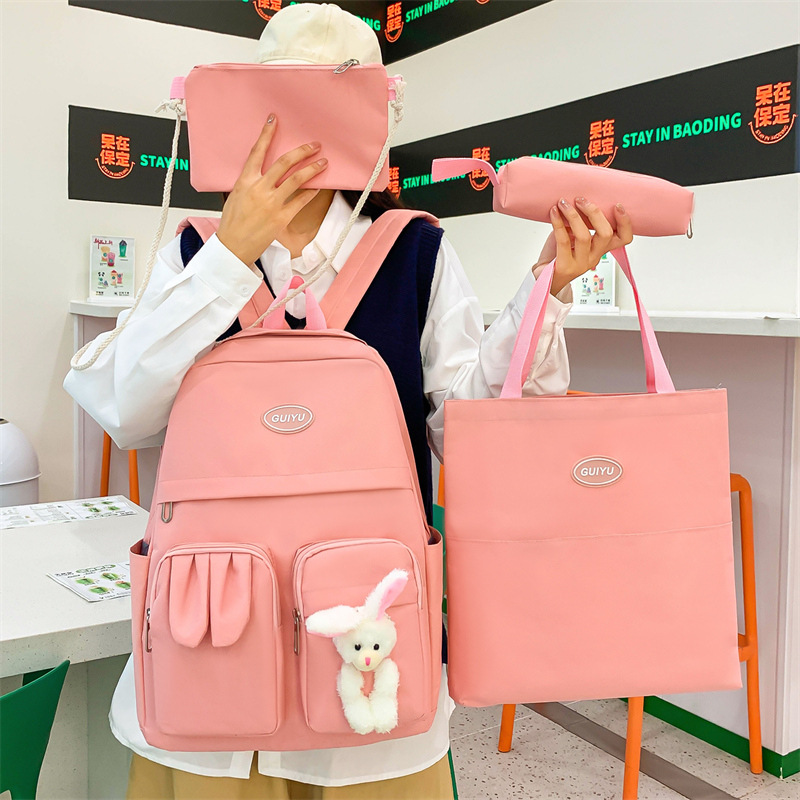 小学生补课袋书包批发兔耳朵少女双肩包可爱小兔子玩偶休闲包