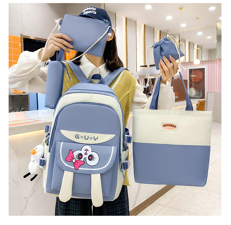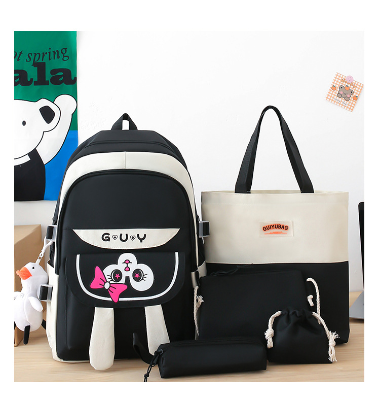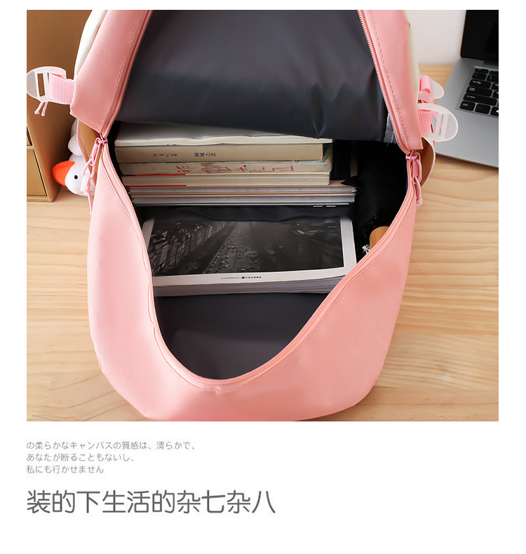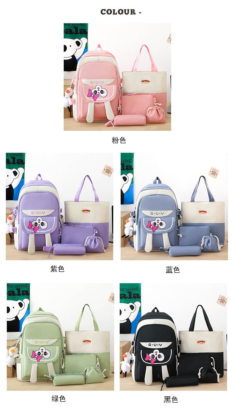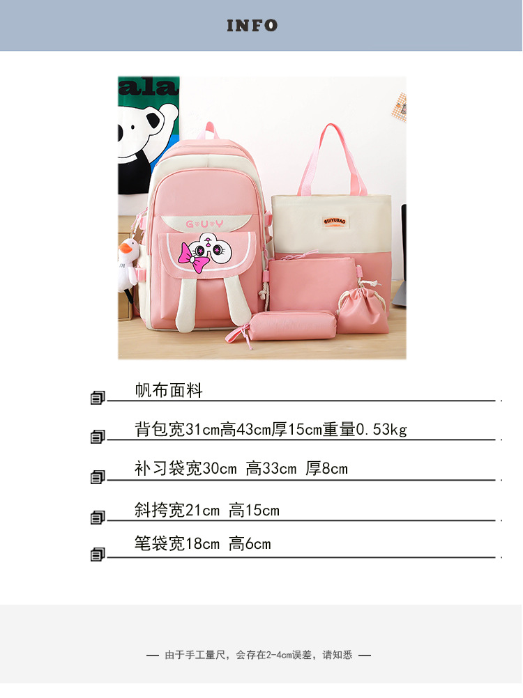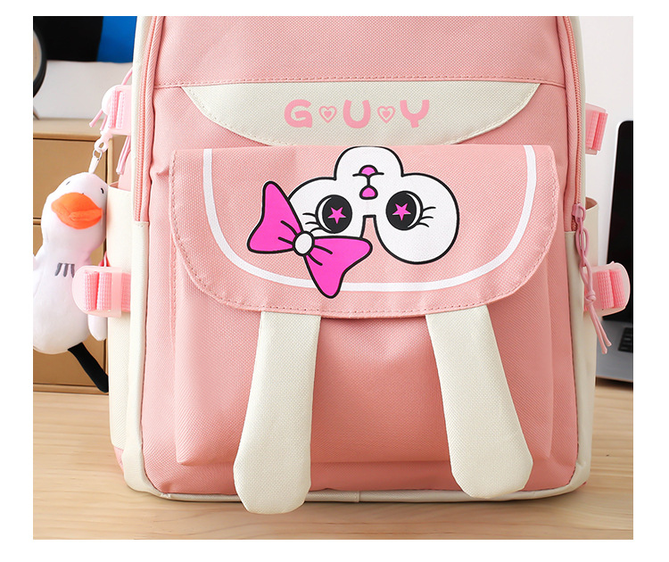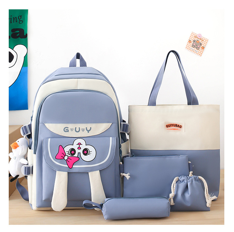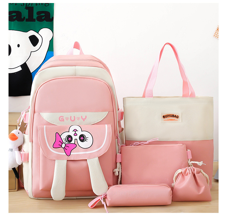 小学生五件套书包女卡通兔耳朵软妹帆布双肩包学生书包