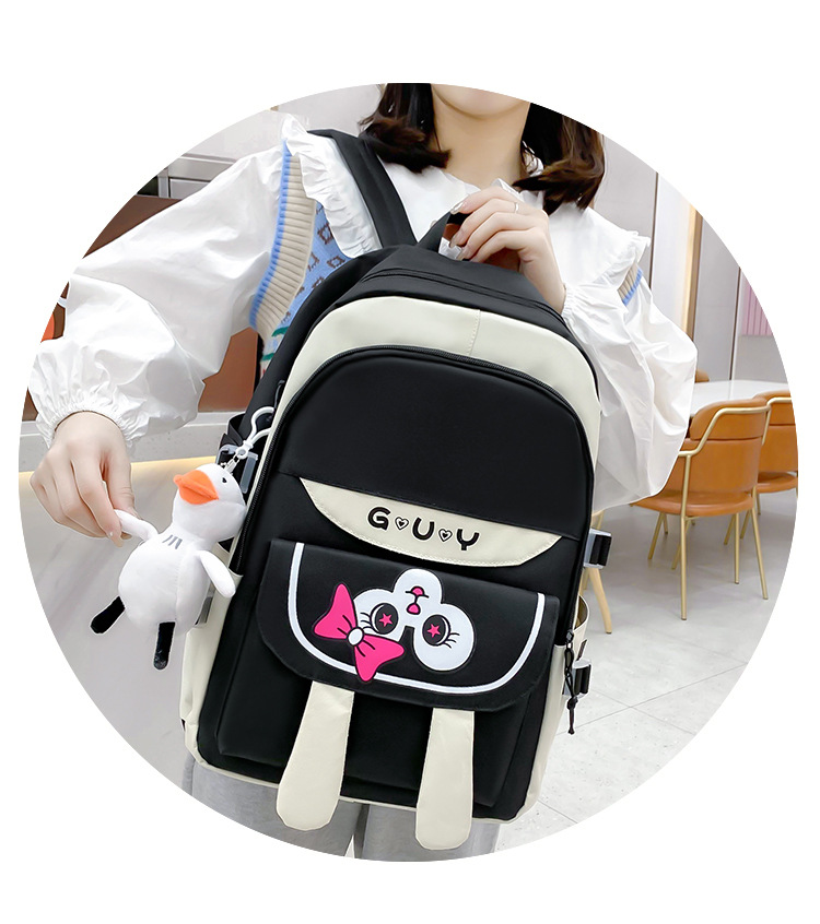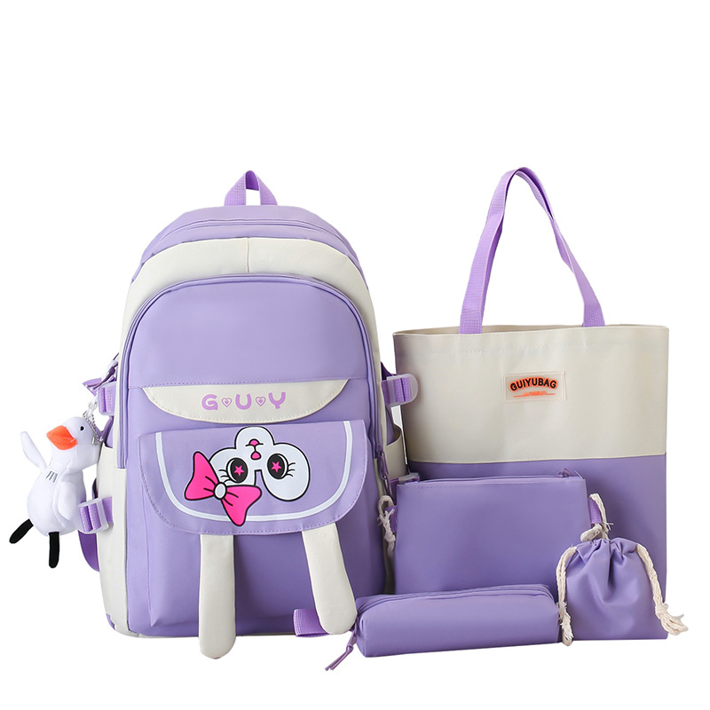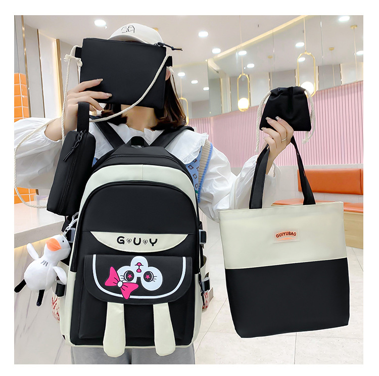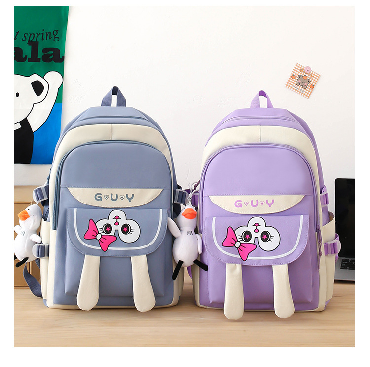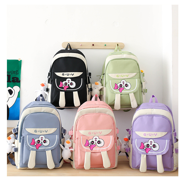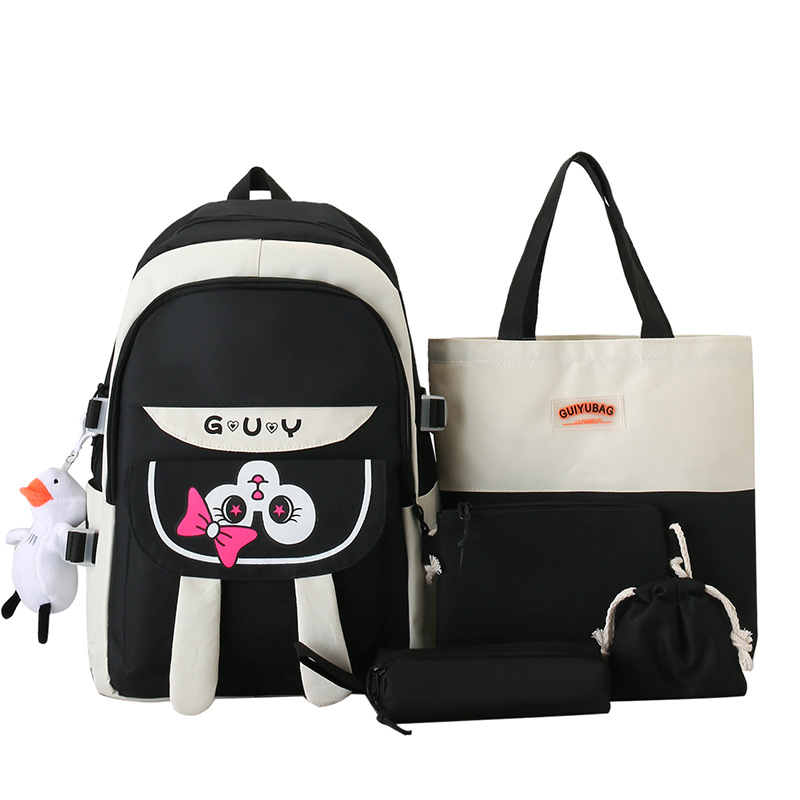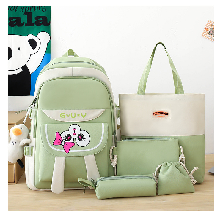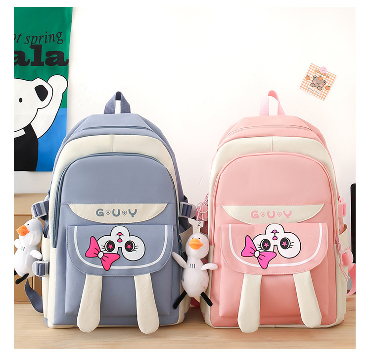 小学生五件套书包女卡通兔耳朵软妹帆布双肩包学生书包