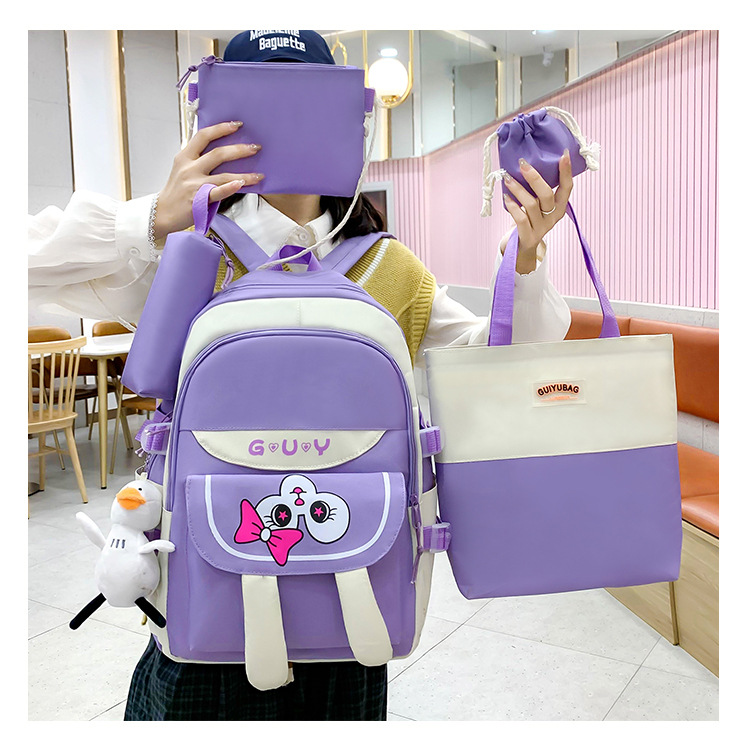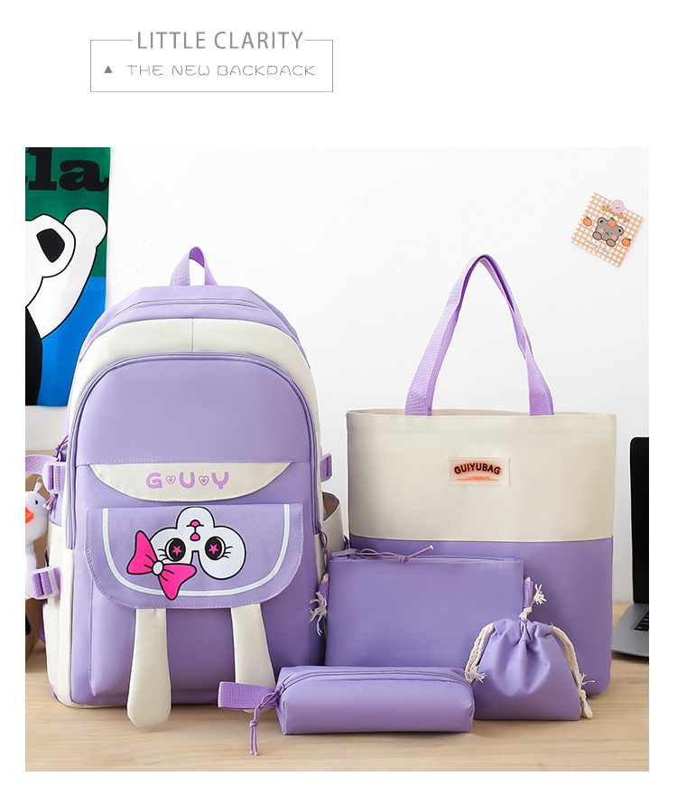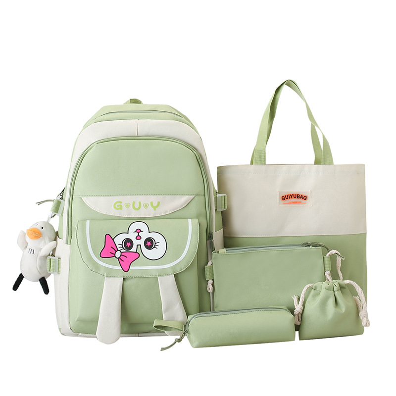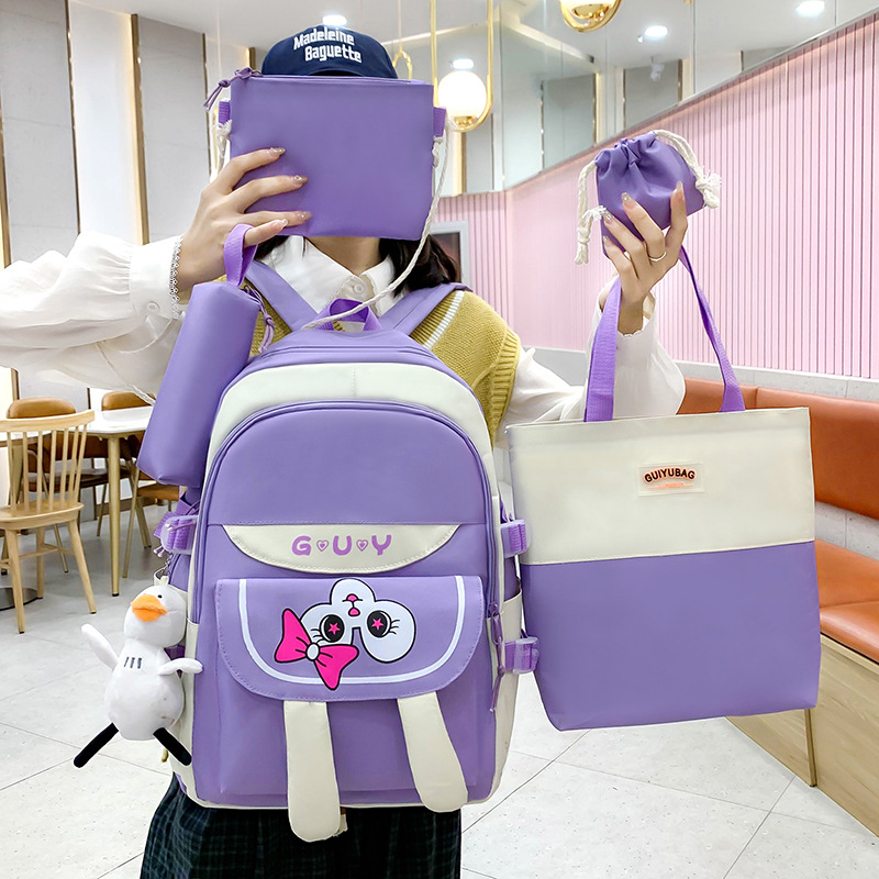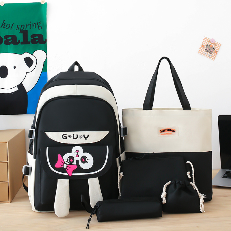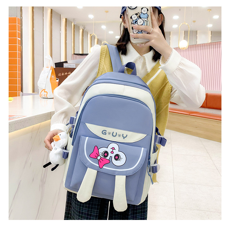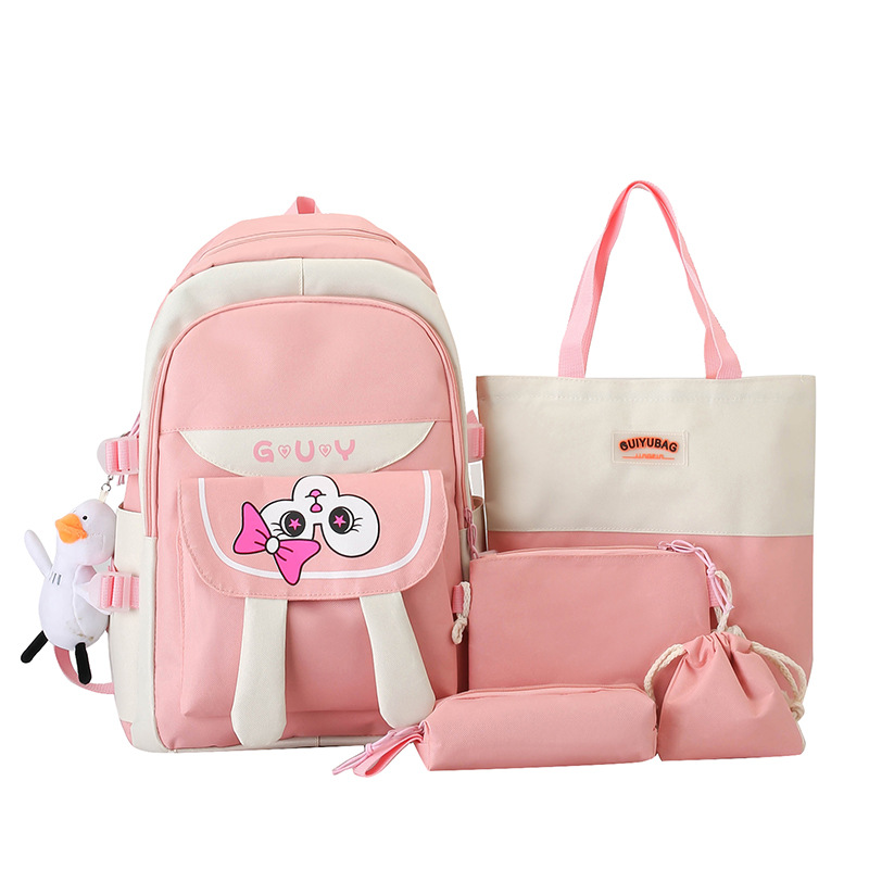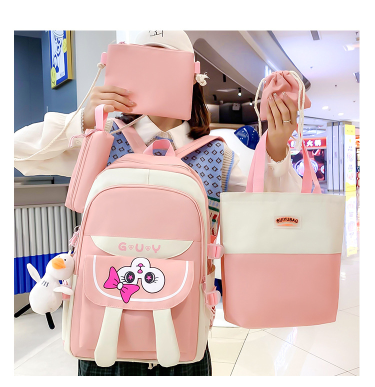小学生五件套书包女卡通兔耳朵软妹帆布双肩包学生书包