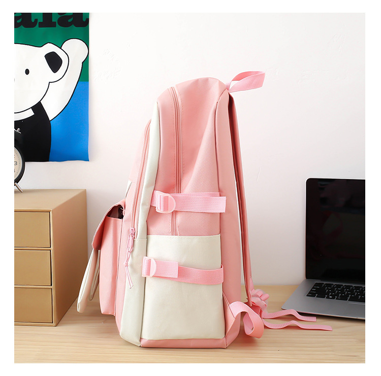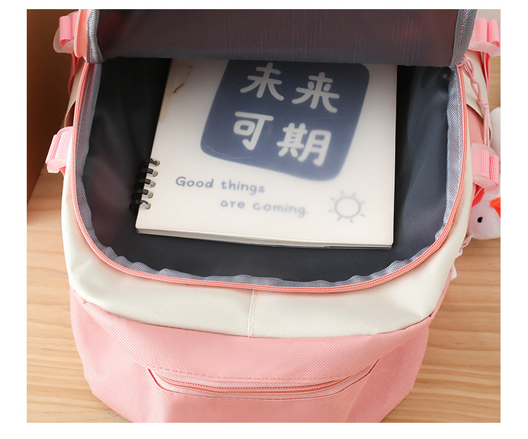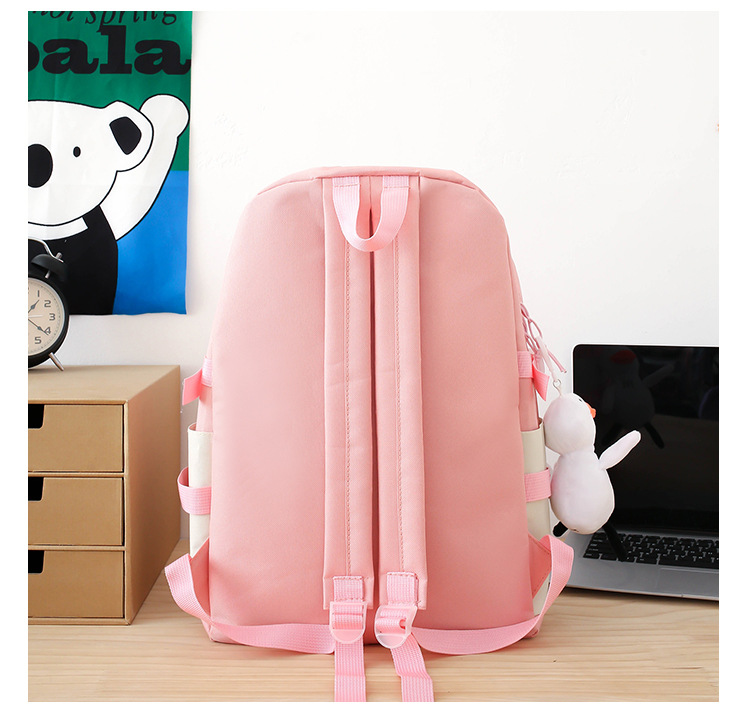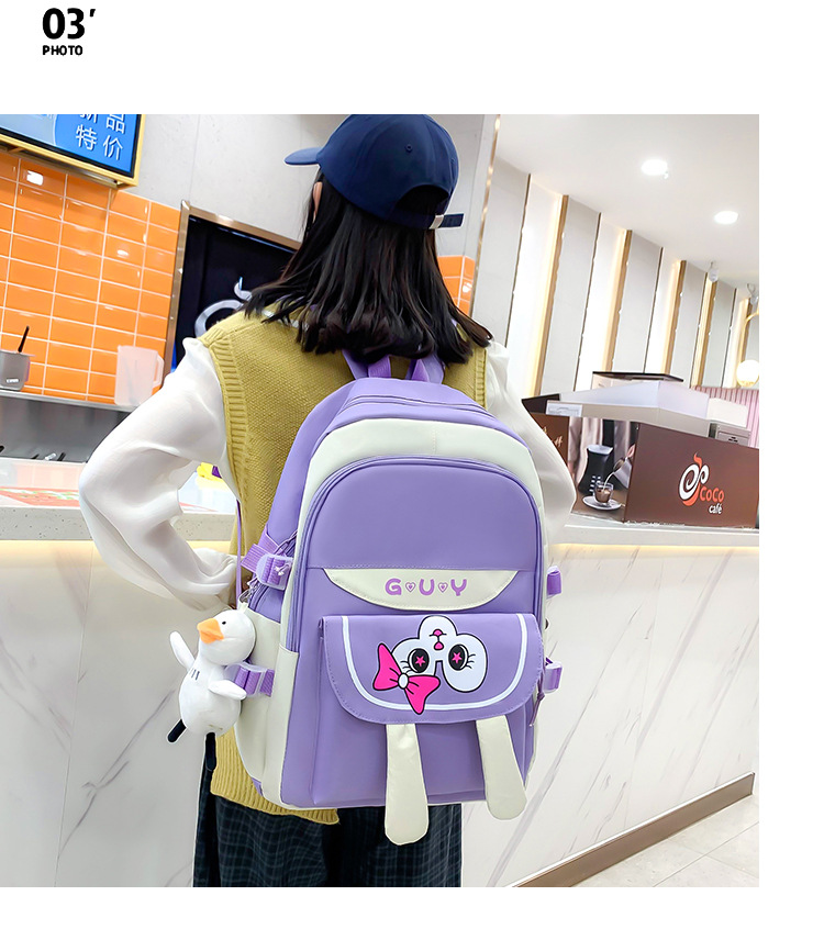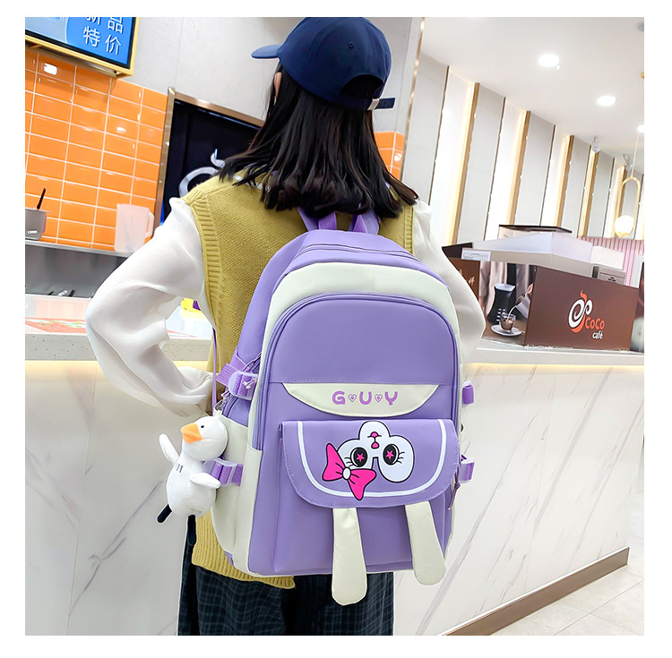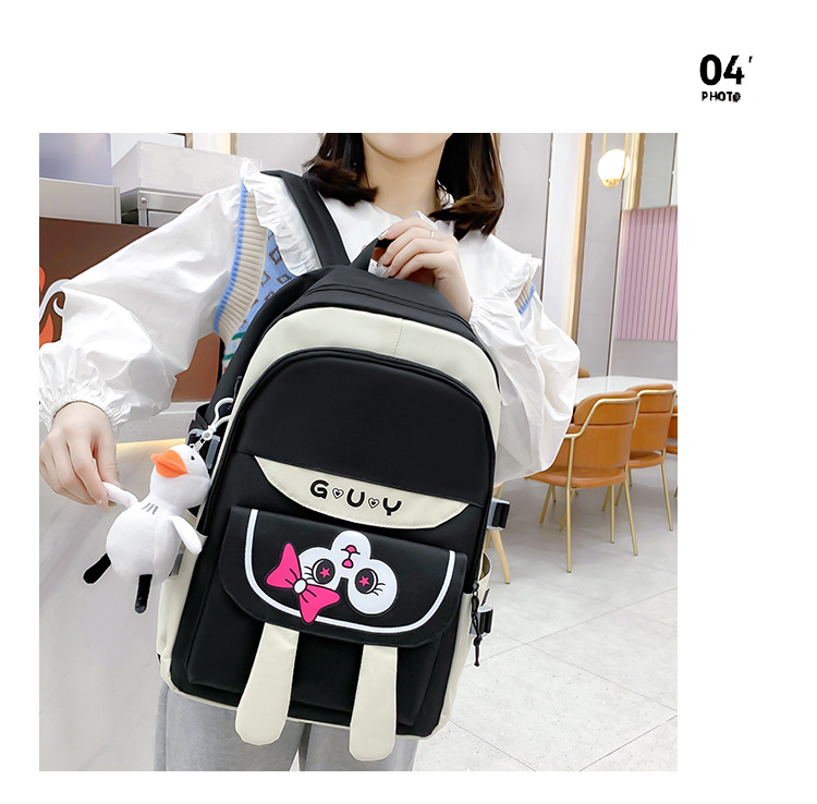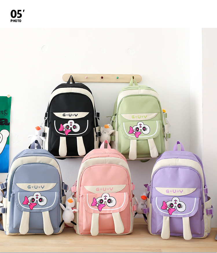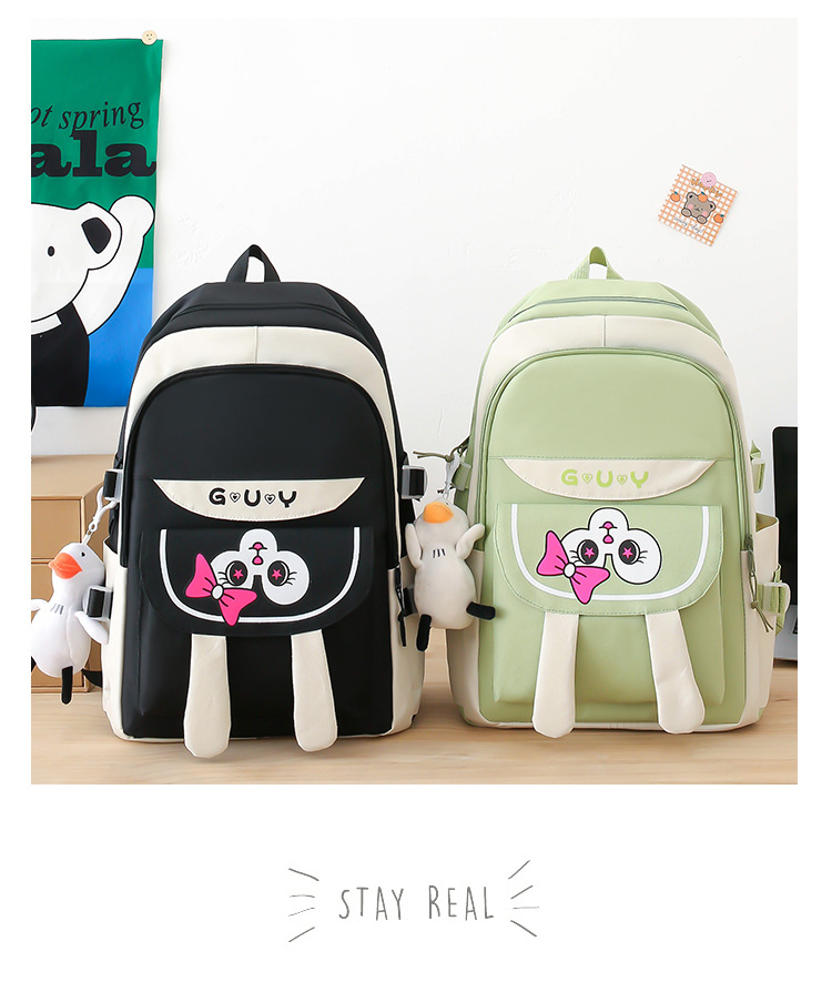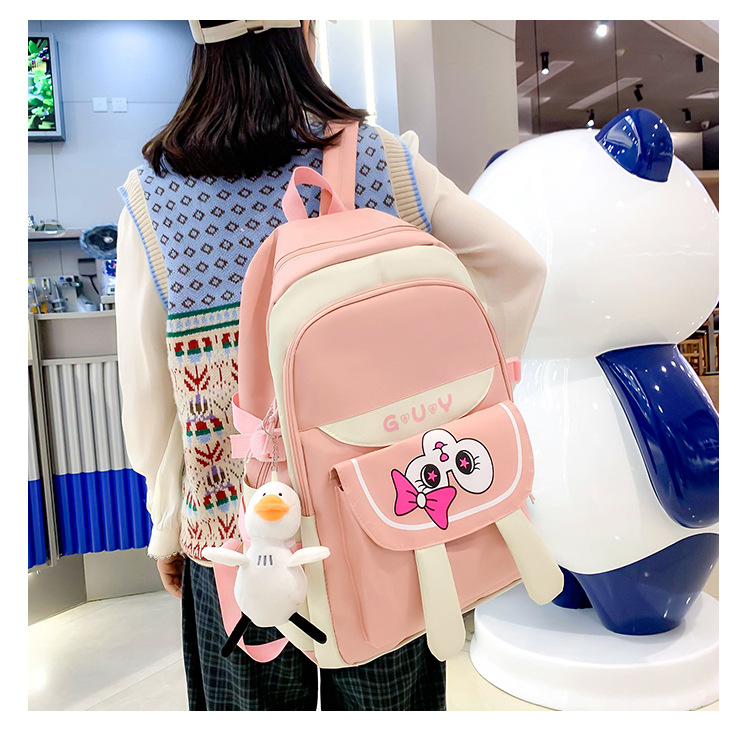小学生五件套书包女卡通兔耳朵软妹帆布双肩包学生书包