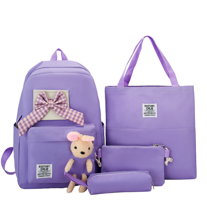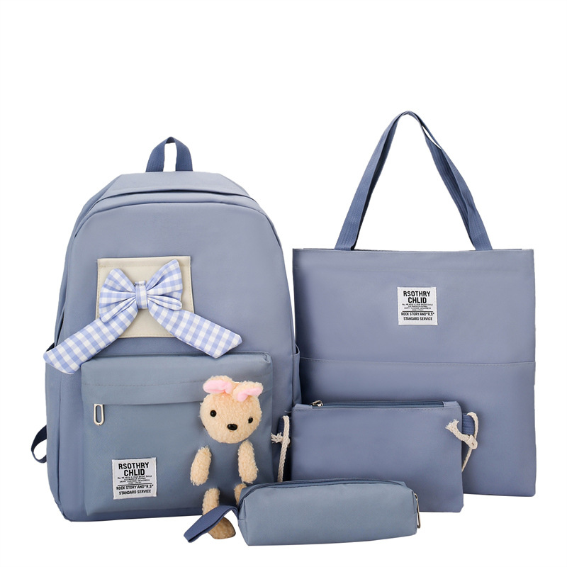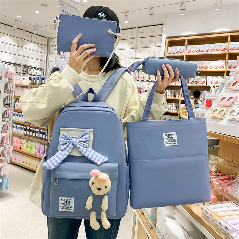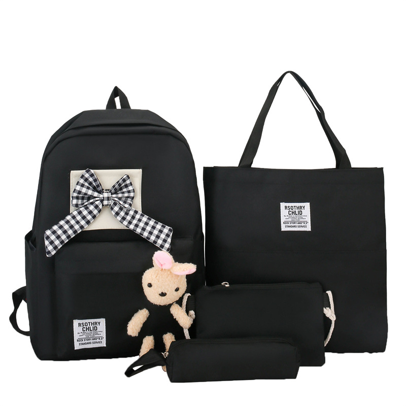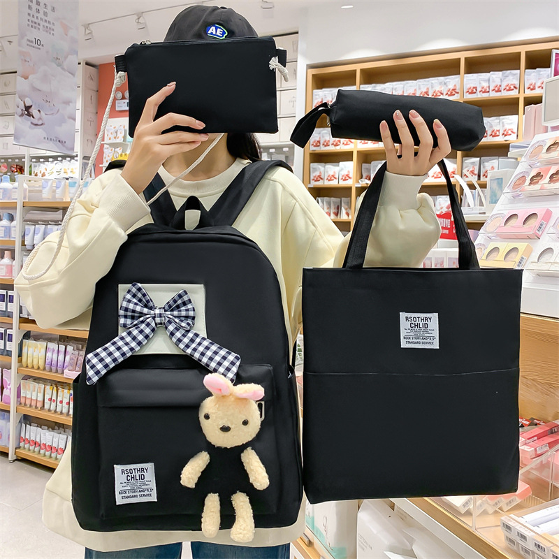 开学季新款格纹蝴蝶结小清新背包小兔子玩偶中小学双肩书包