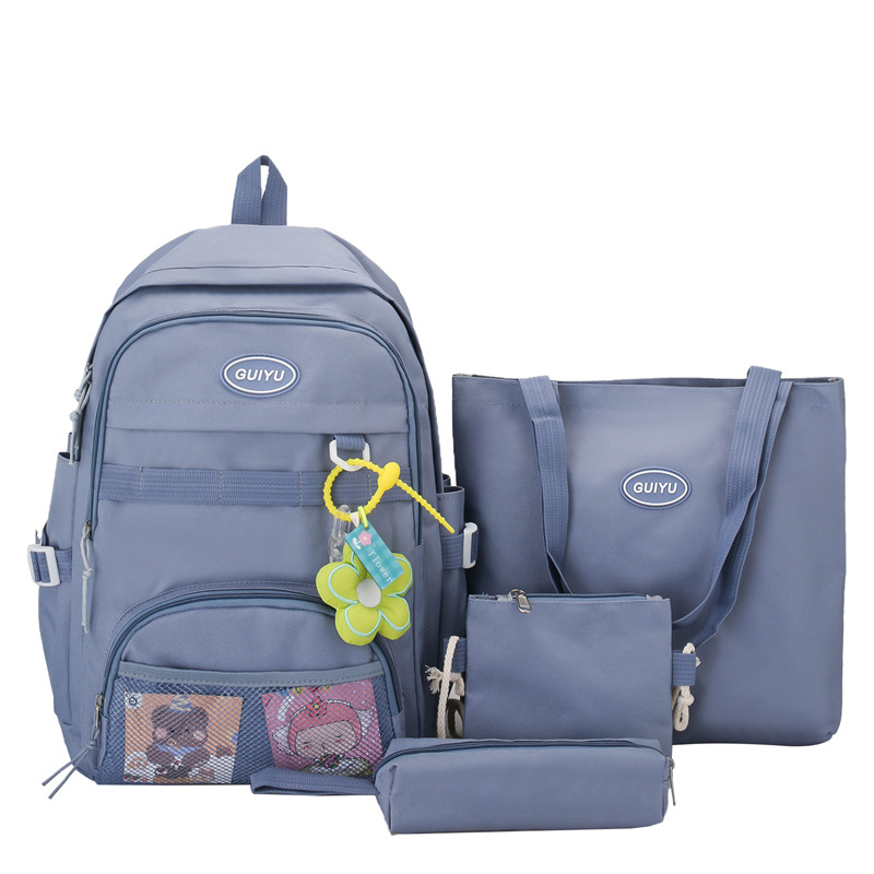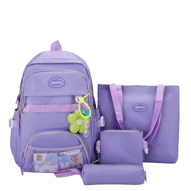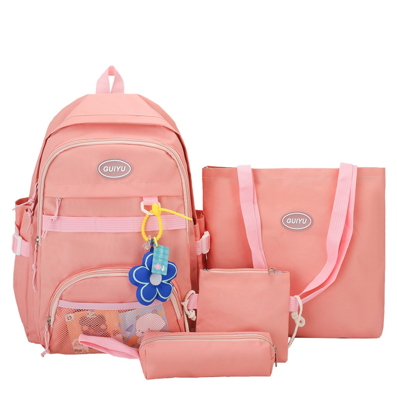 厂家批发潮流双肩包瑰语小学生书包四件套时尚简约休闲包