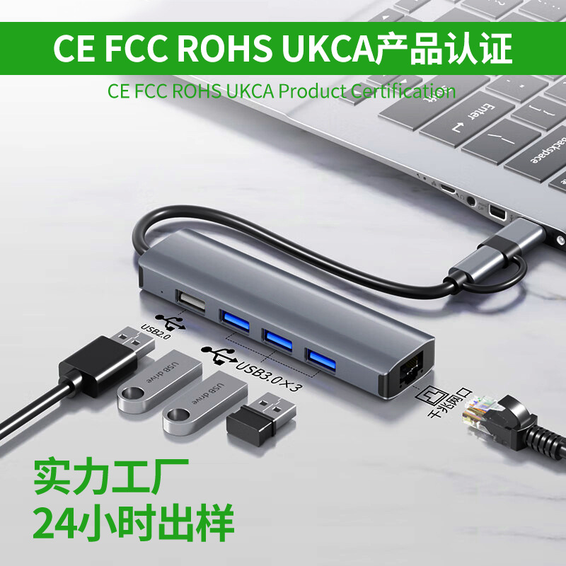 新款千兆网口拓展坞五合一集线器usb3.0 type-c接口二合一扩展坞