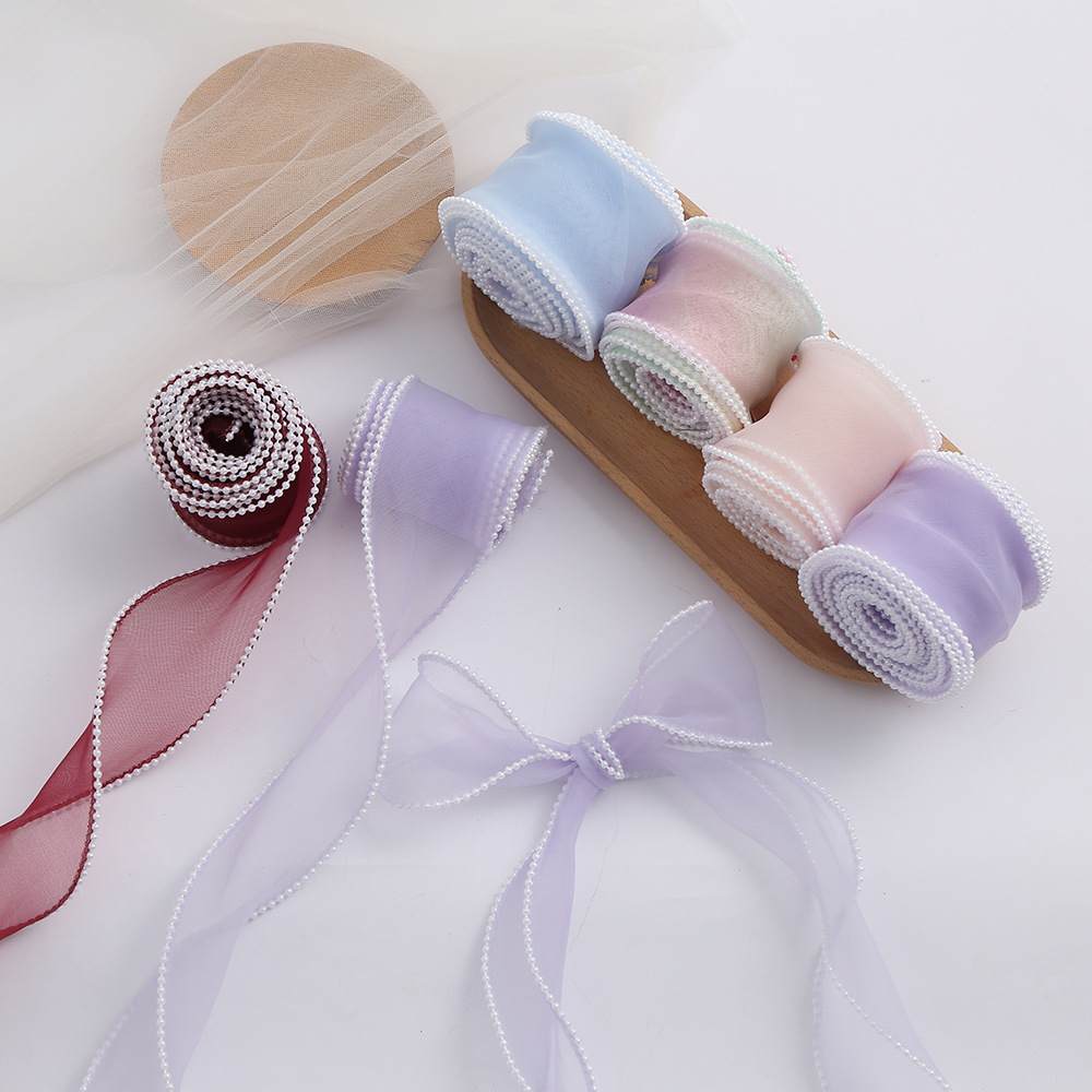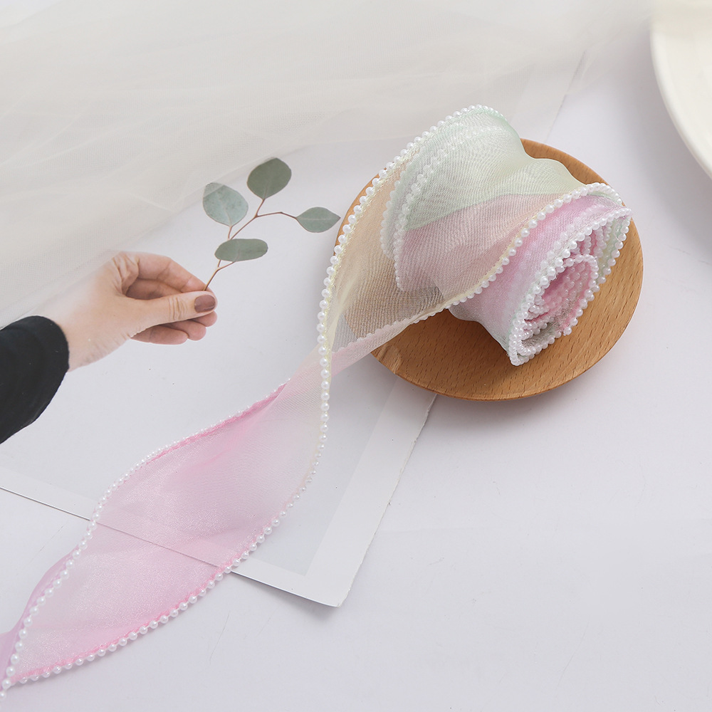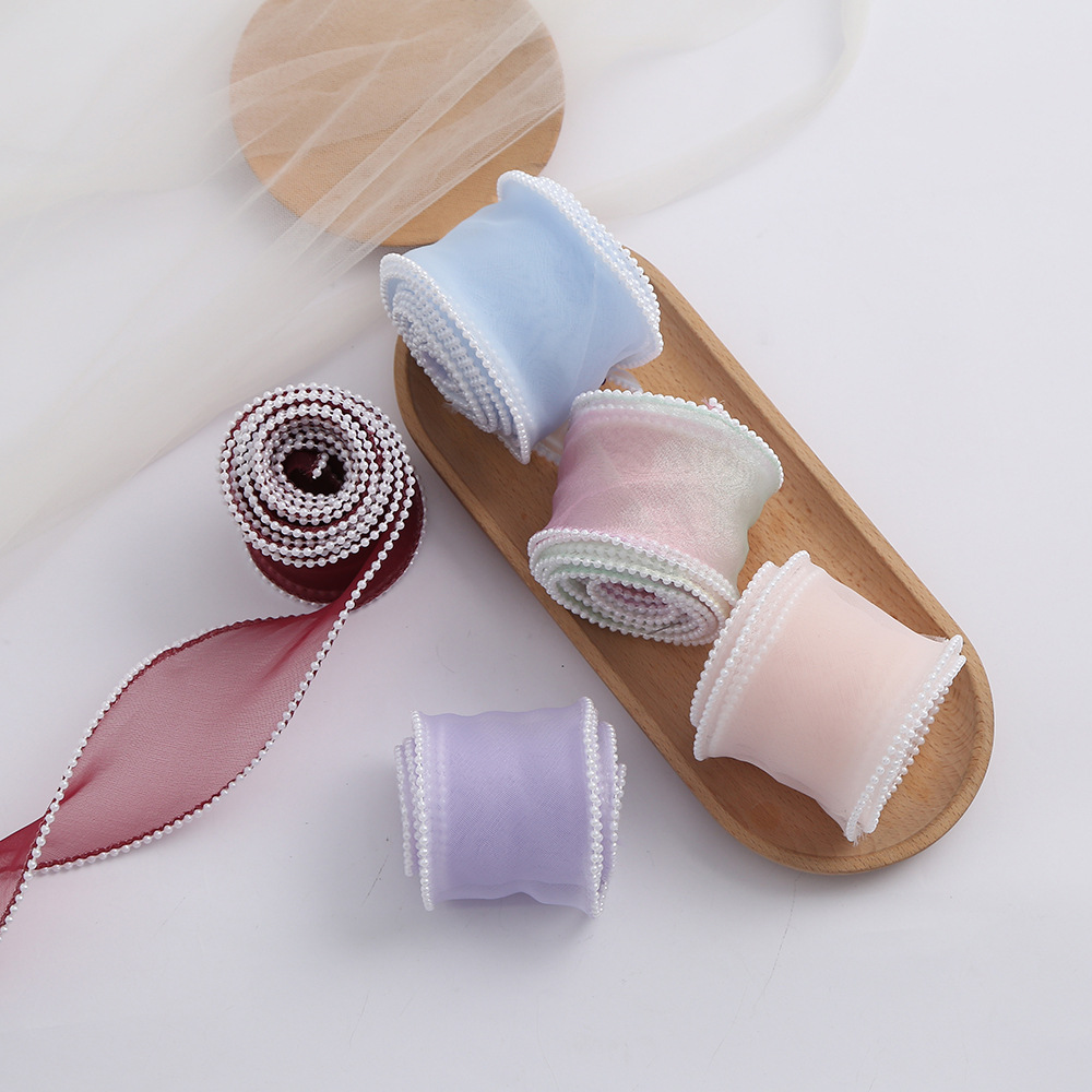 现货6cm彩色珍珠鱼尾纱丝带服装波浪纱花边花束织带DIY蝴蝶结材料