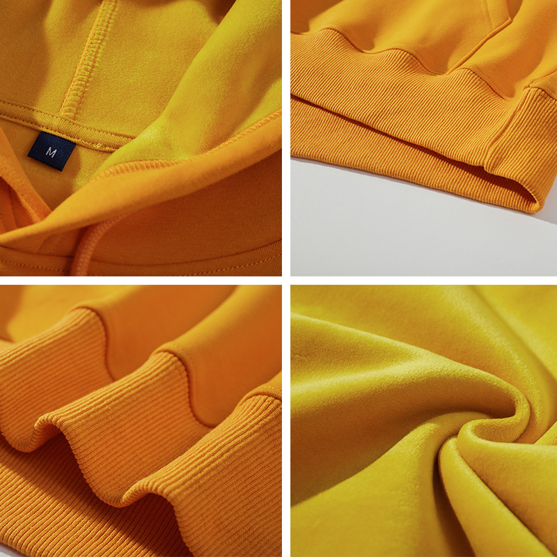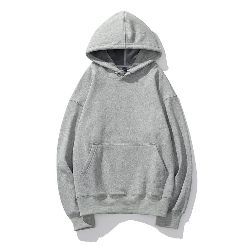 欧美跨境秋冬加绒加厚纯棉连帽衫男女纯色落肩套头卫衣来图印LOGO