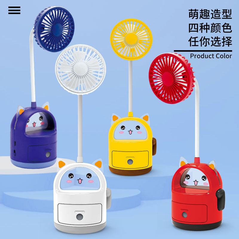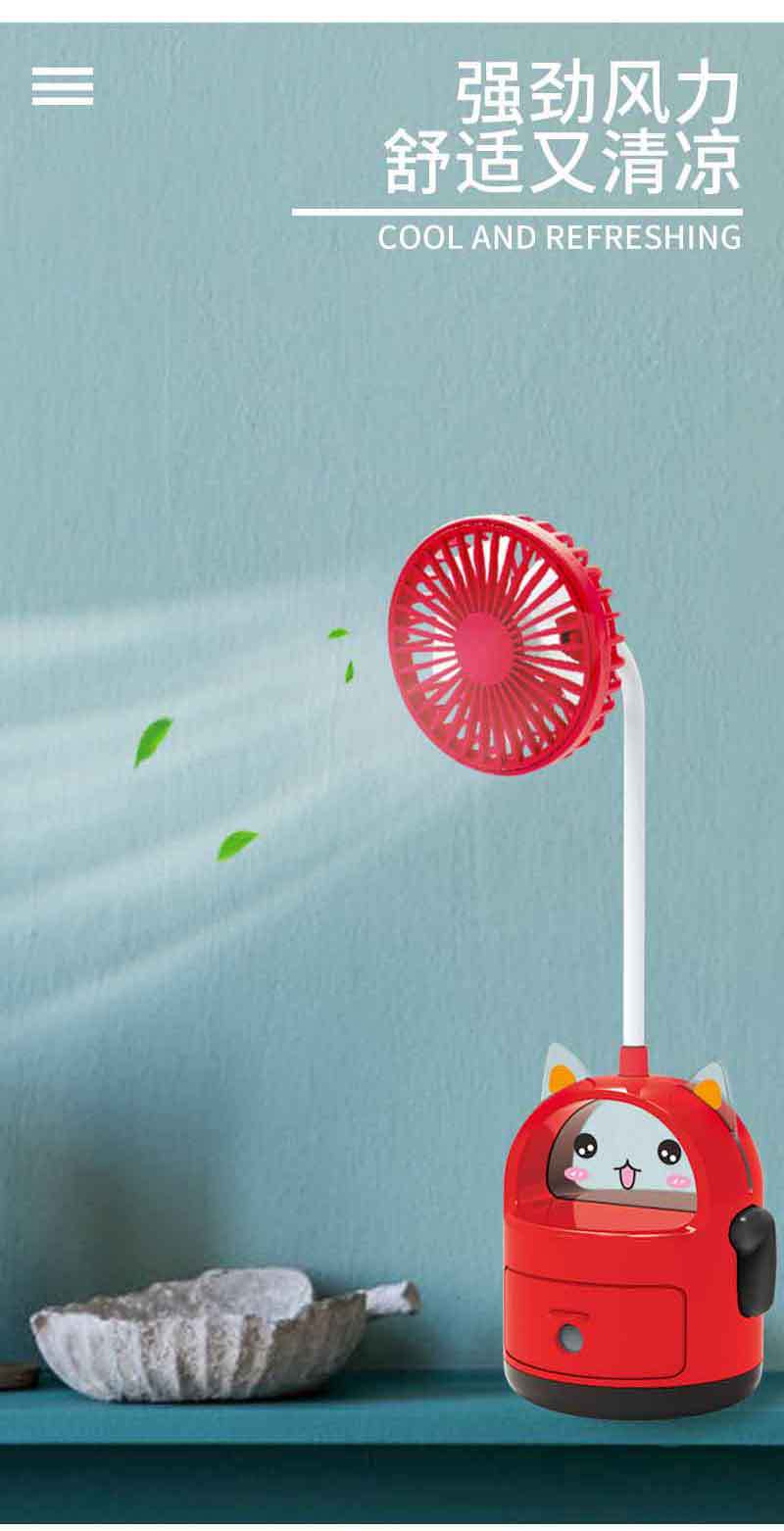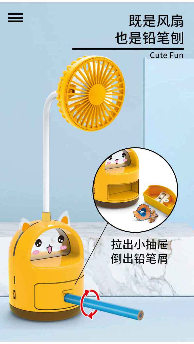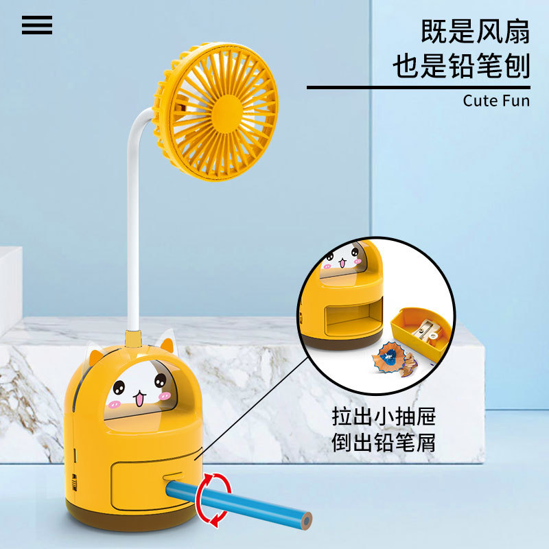 2023年新品卡通带铅笔削风扇 可折叠学生桌面办公宿舍床头风扇