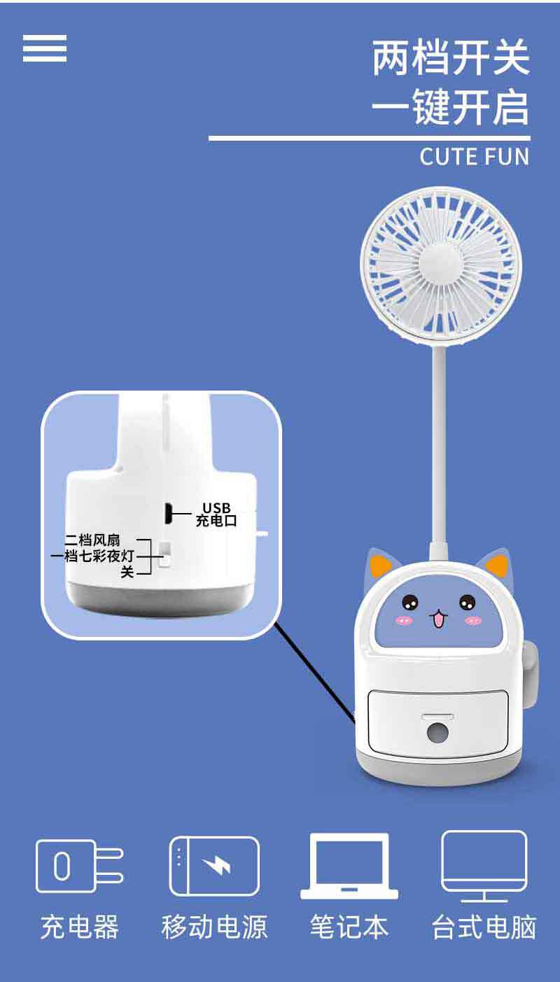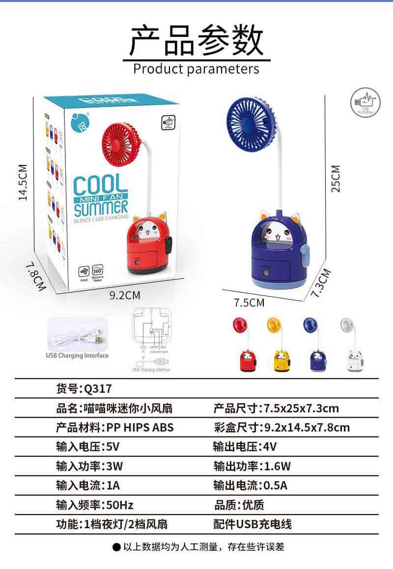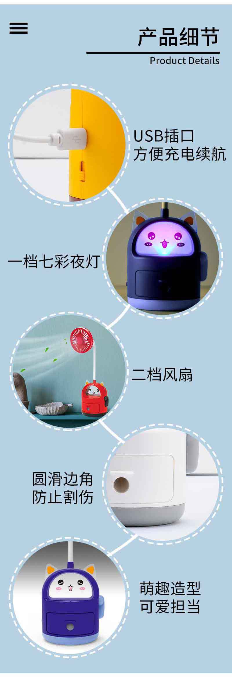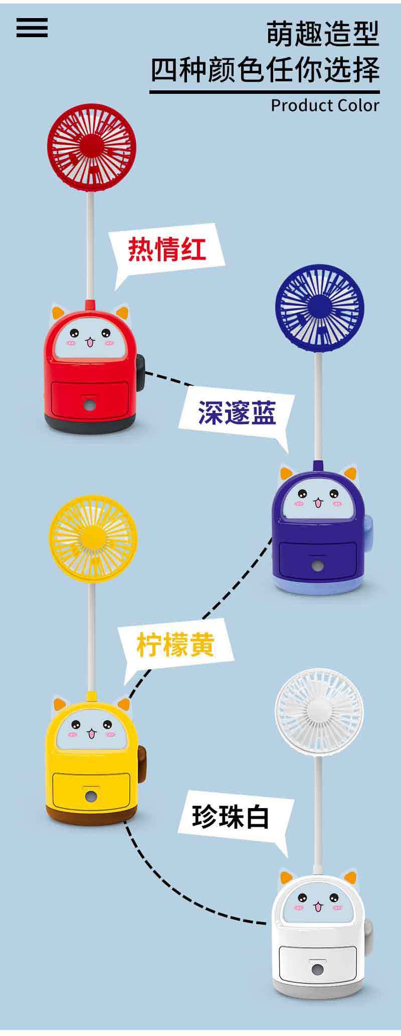 2023年新品卡通带铅笔削风扇 可折叠学生桌面办公宿舍床头风扇