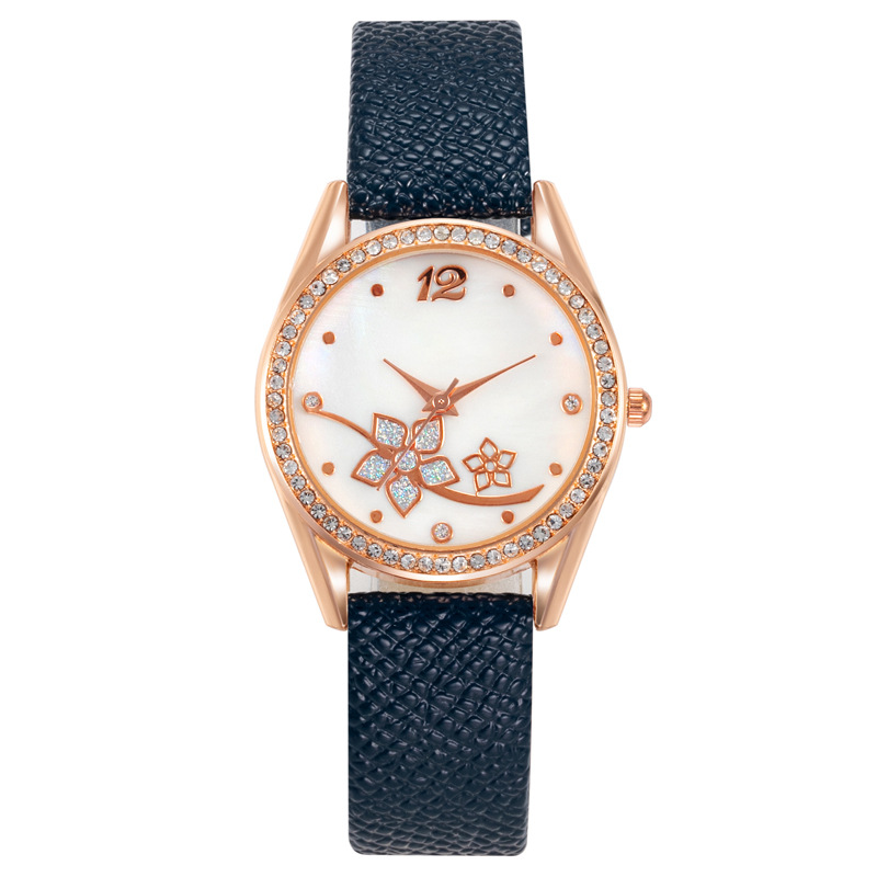 2023新款女士花朵时尚镶钻皮带手表 水珠皮带石英腕表女款外贸爆