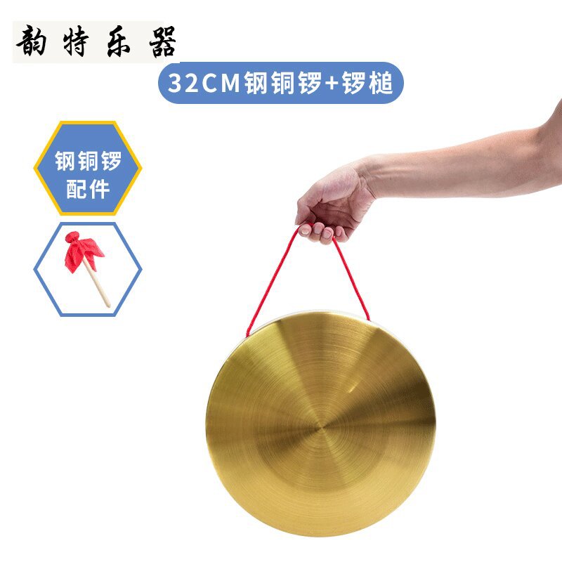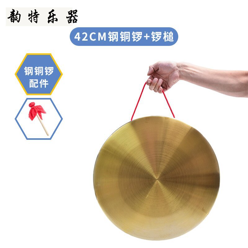防汛抗洪铜锣三句半套装锣36cm42厘米镀铜纯铜色锣鼓乐器预警铜锣