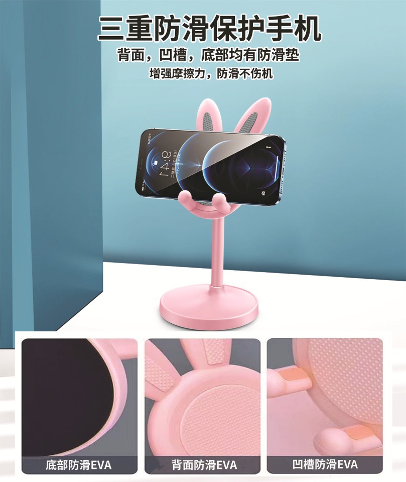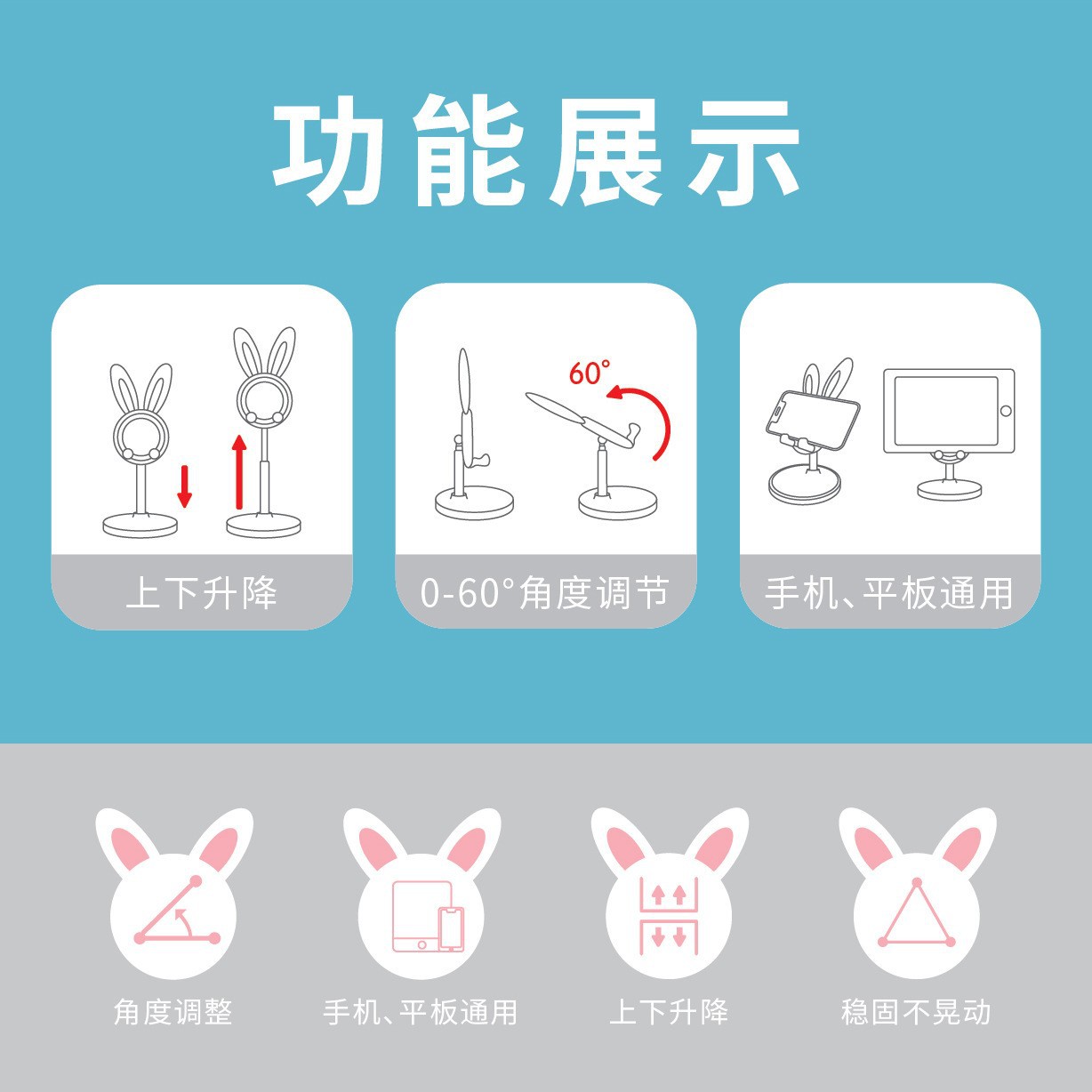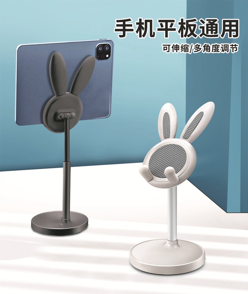新款卓面手机支架卡通兔子头手机平板支架可升降调节网课直播支架