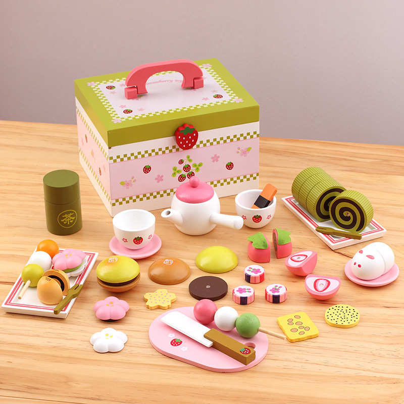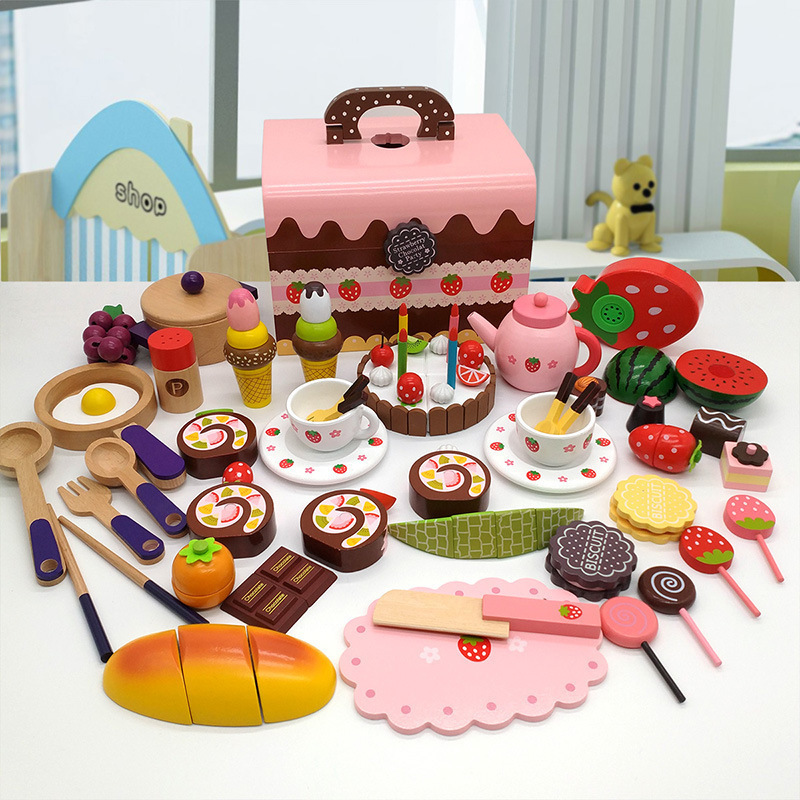 木制过家家儿童玩具仿真生日蛋糕下午茶蔬菜水果切切乐餐厨具套装