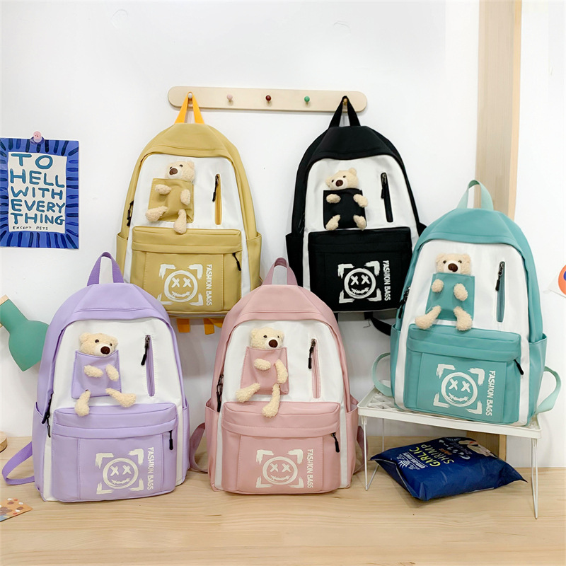 2022开学季新款初高中学生书包潮流休闲包卡通小熊玩偶双肩包