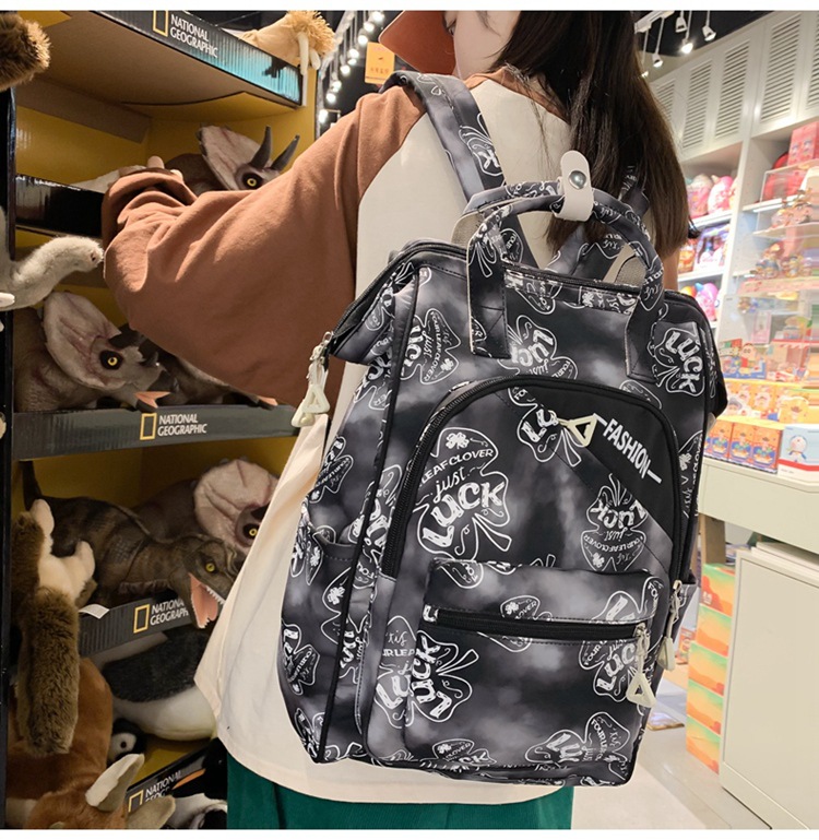 2023外贸新款潮酷休闲包男女款时尚涂鸦初高中学生双肩包包