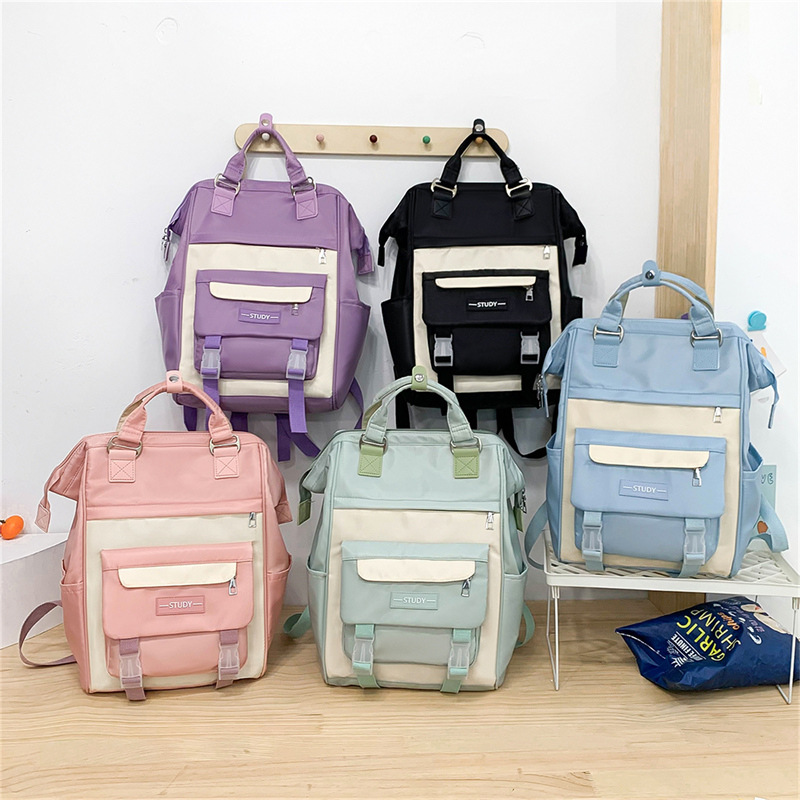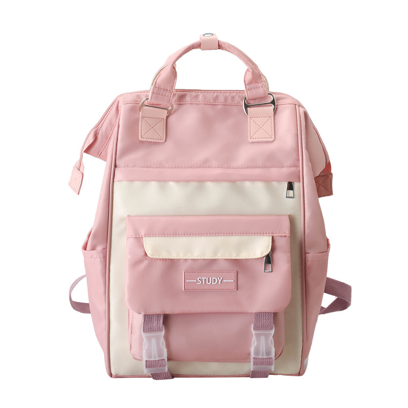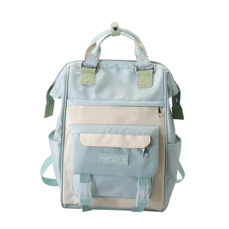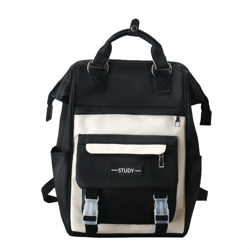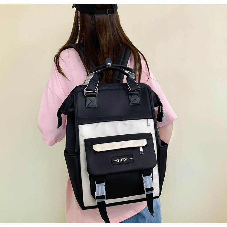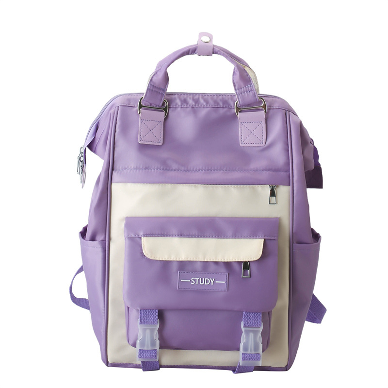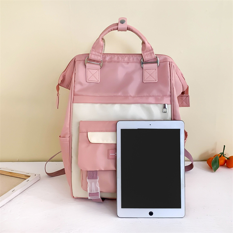 外贸 多隔层中学生书包批发 日系简约休闲包尼龙拼色潮流双肩包