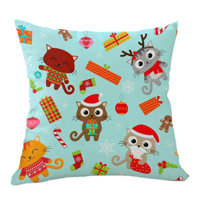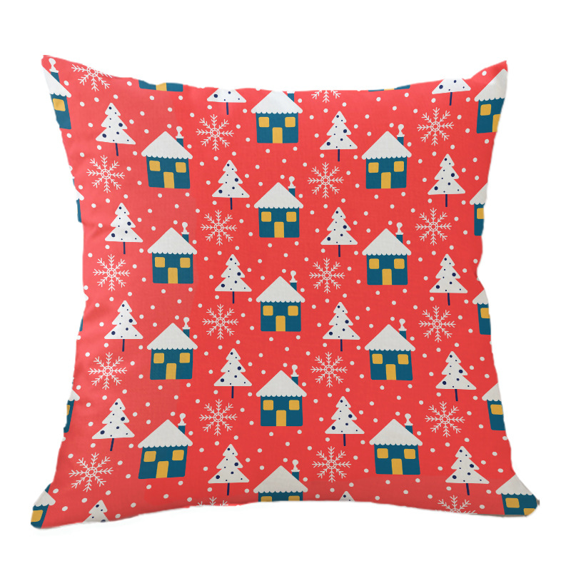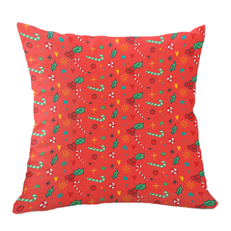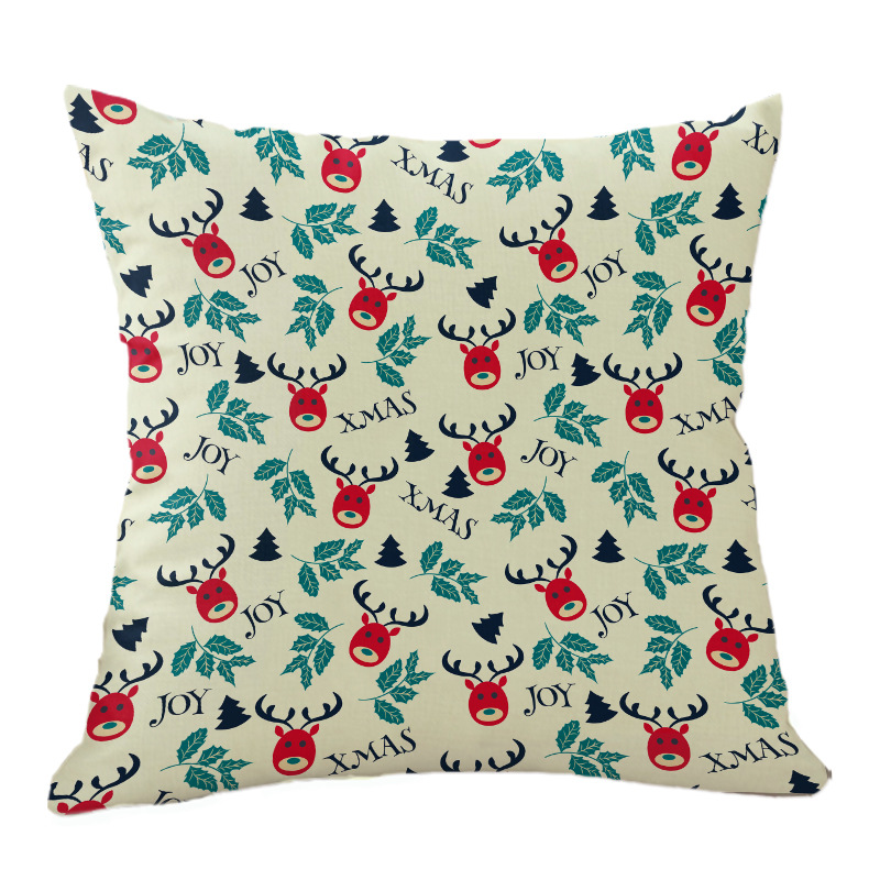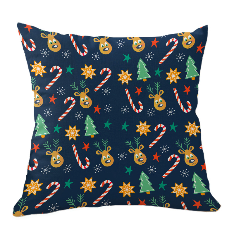 卡通图案印花抱枕套桃皮绒圣诞节靠垫套家居装饰定制图案一件代发