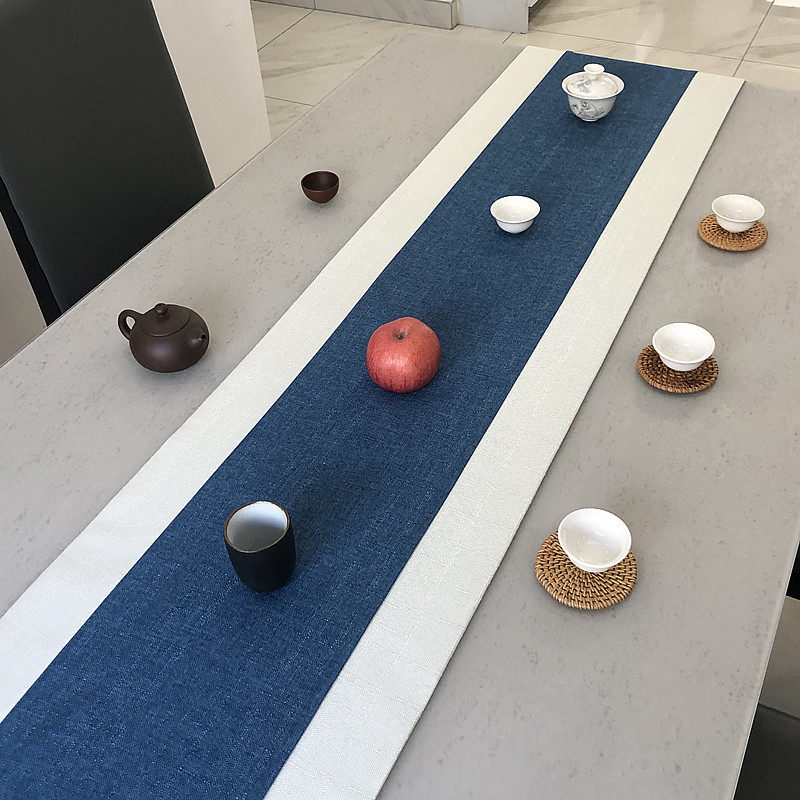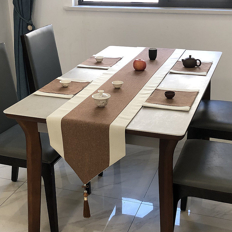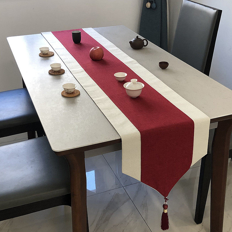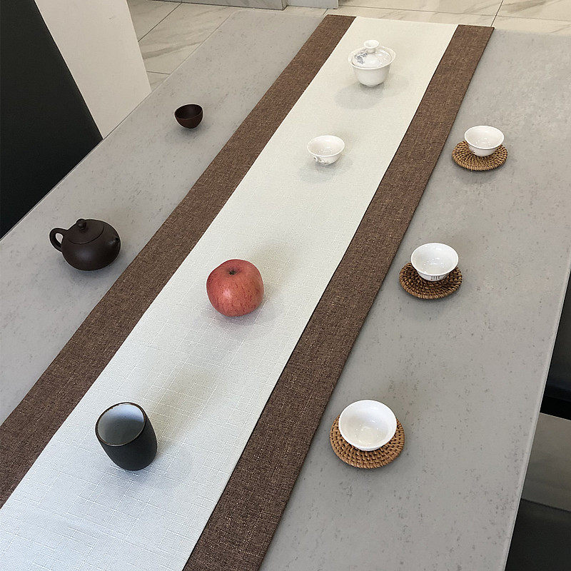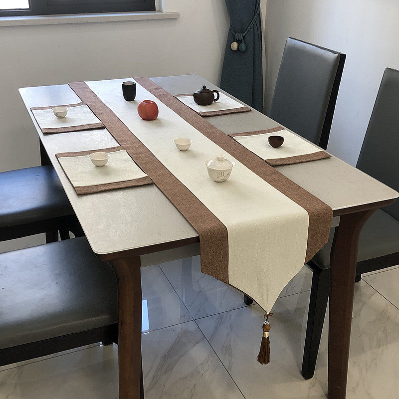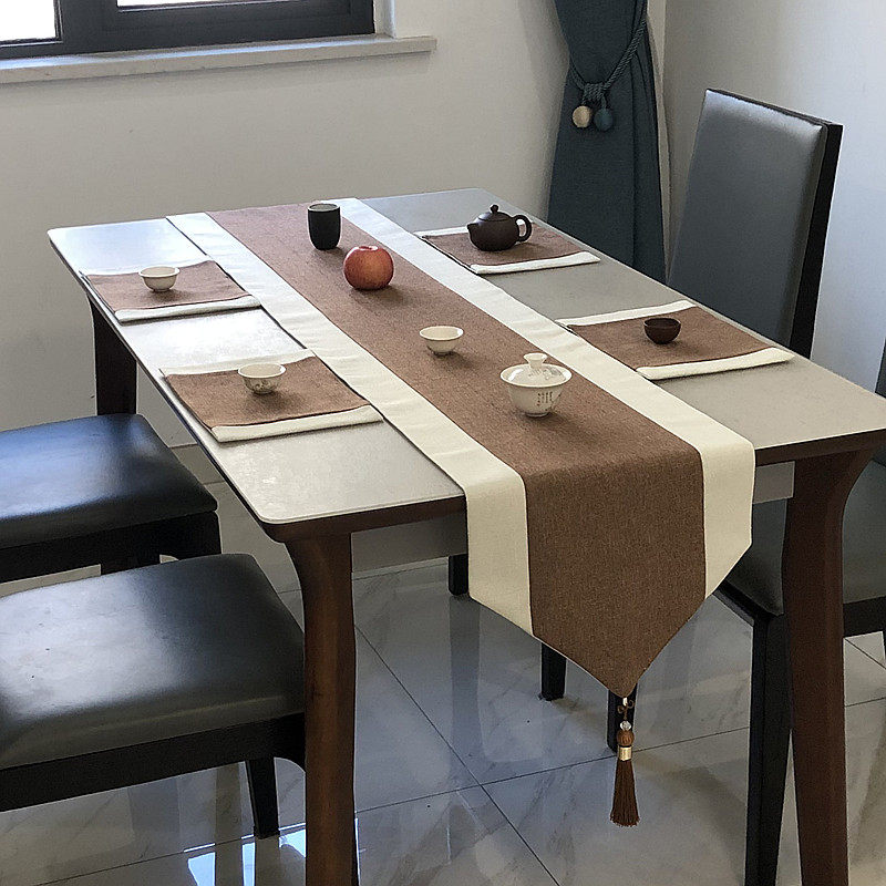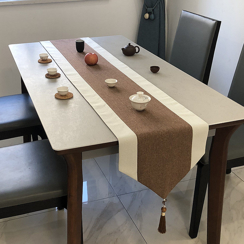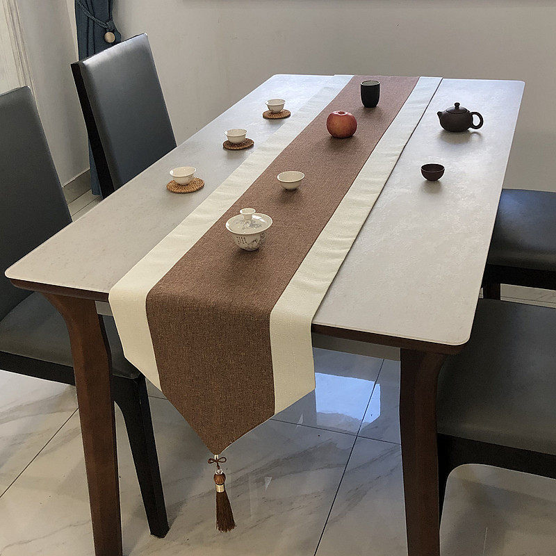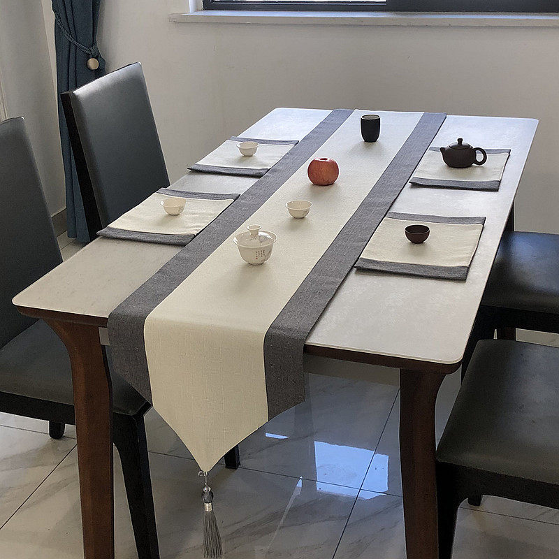 棉麻新中式简约禅意桌旗茶几餐桌垫席日式茶旗轻奢长条复古隔热