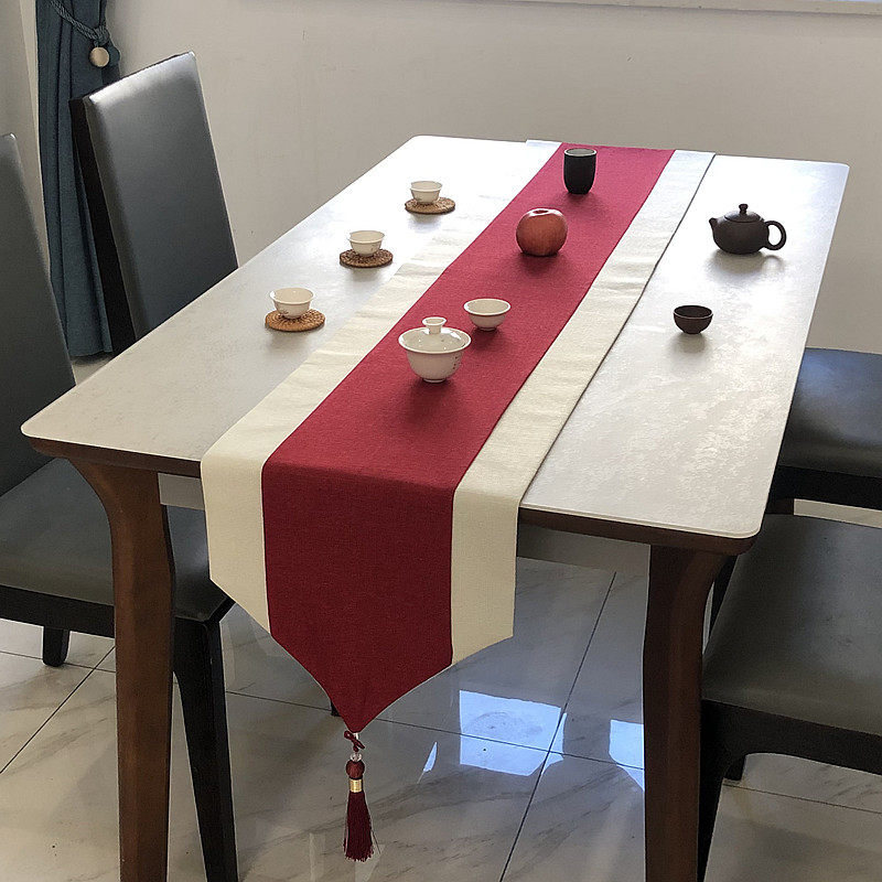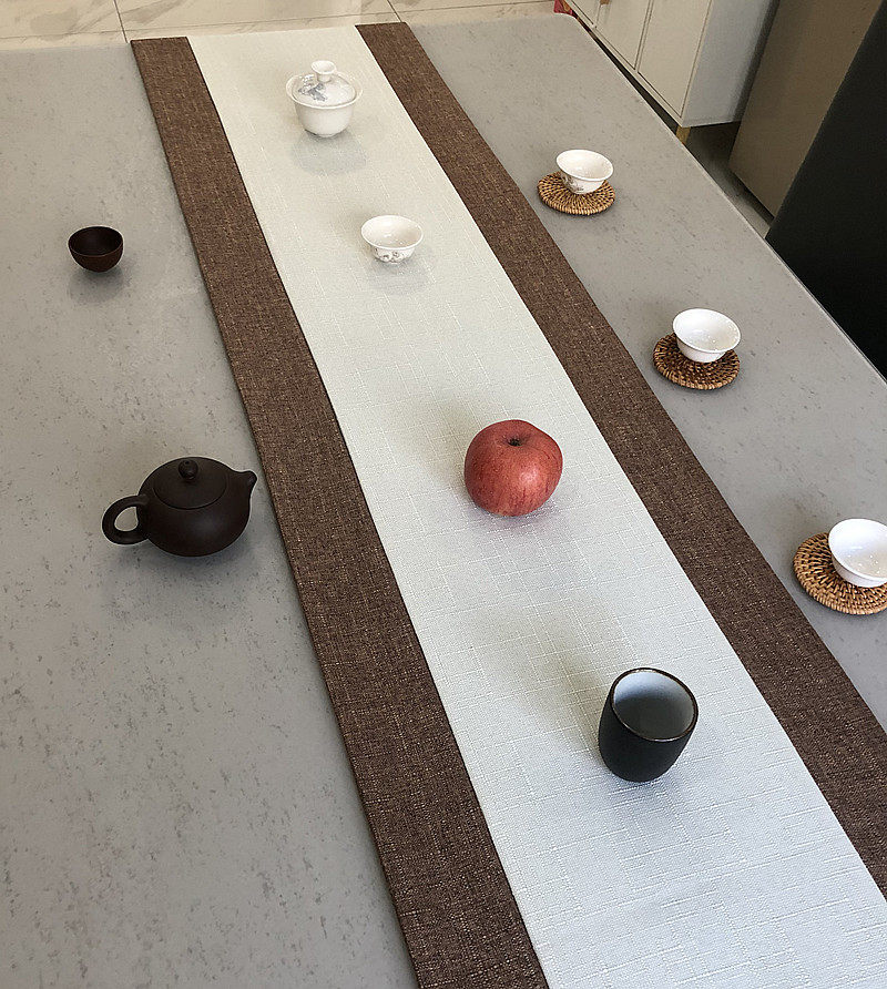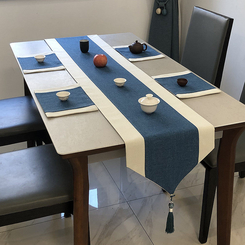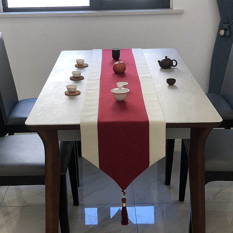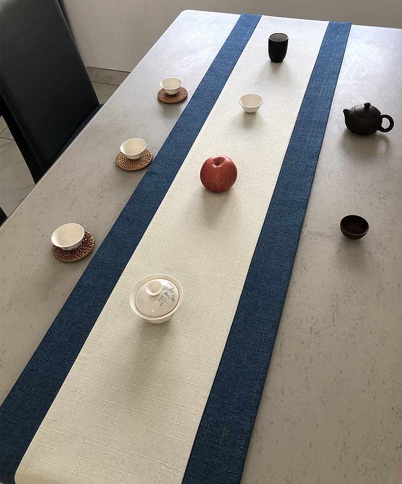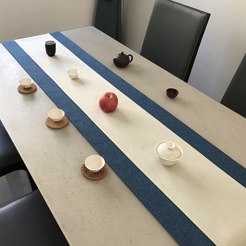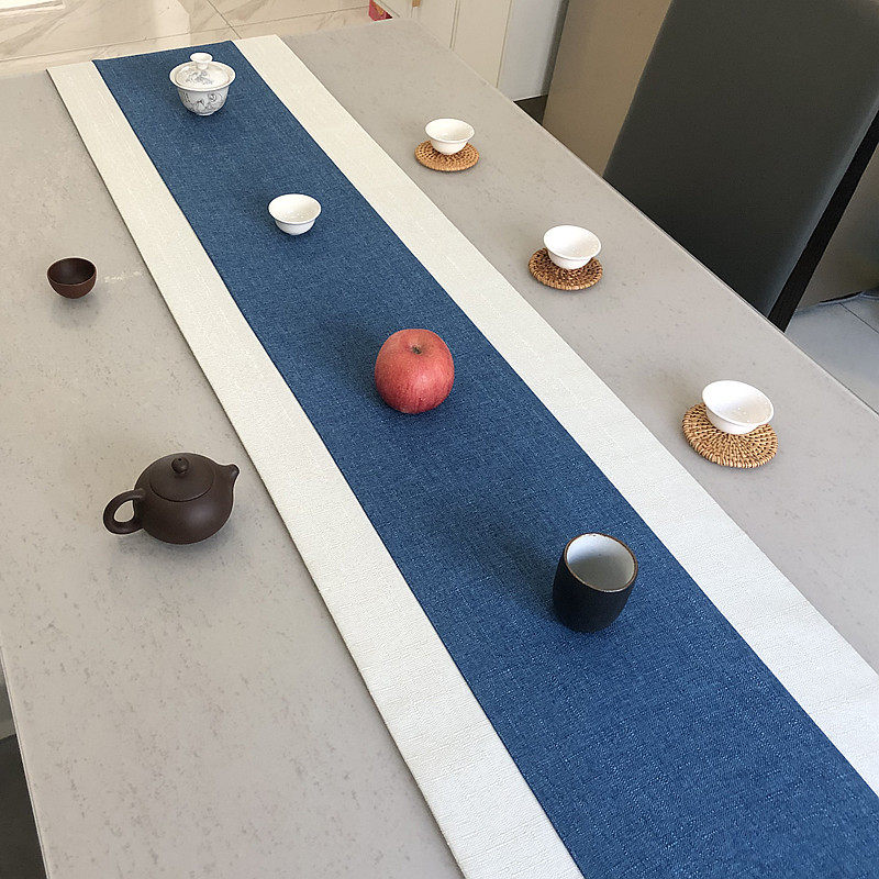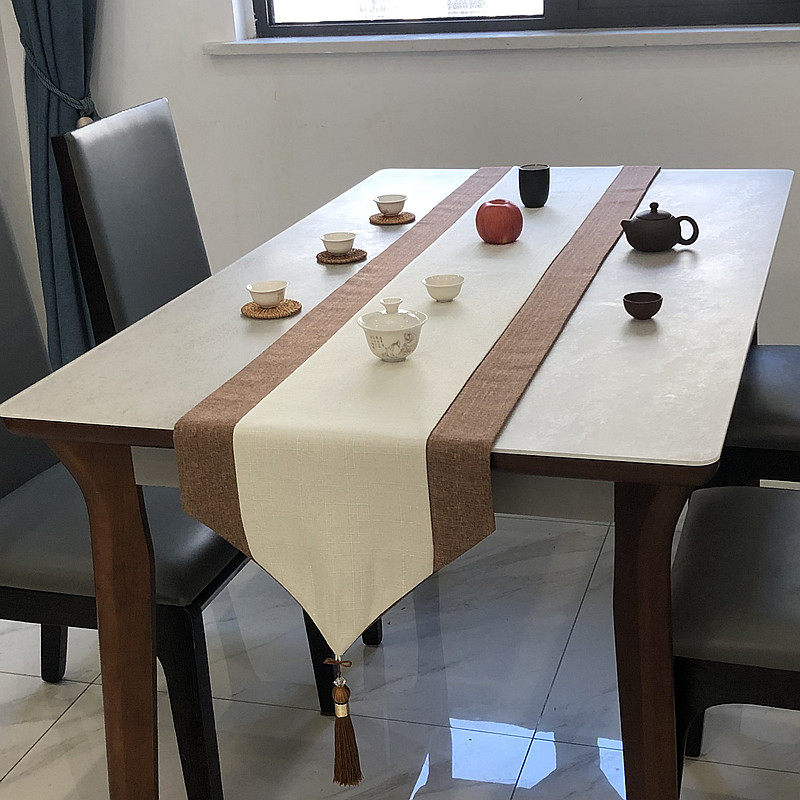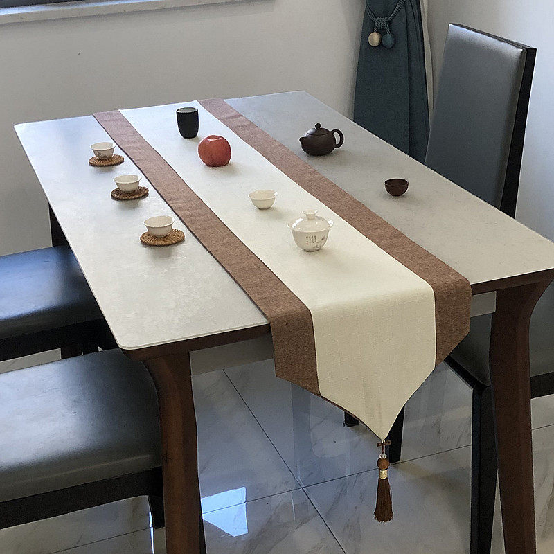 棉麻新中式简约禅意桌旗茶几餐桌垫席日式茶旗轻奢长条复古隔热