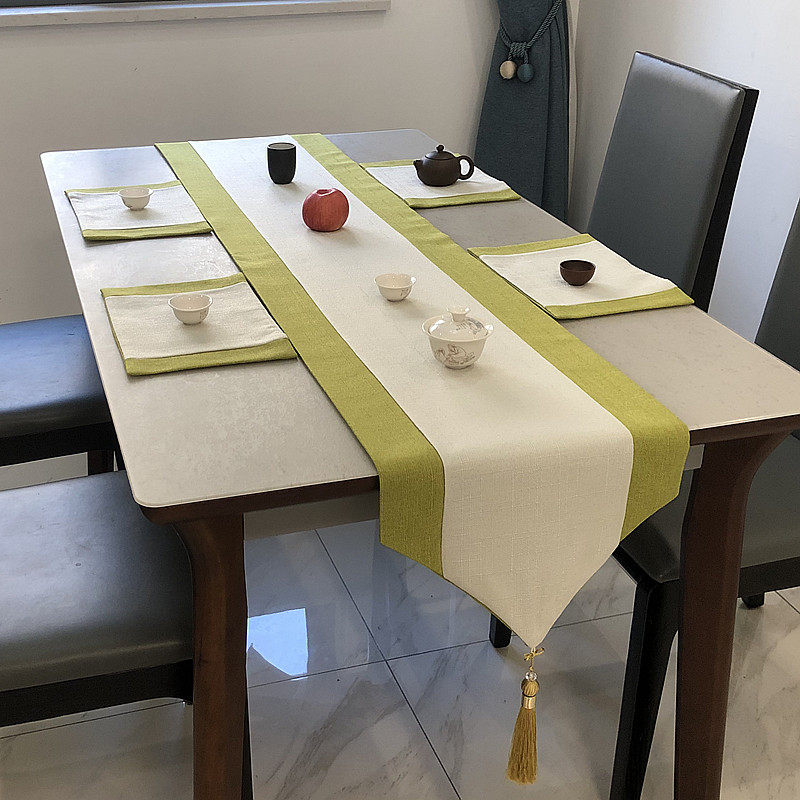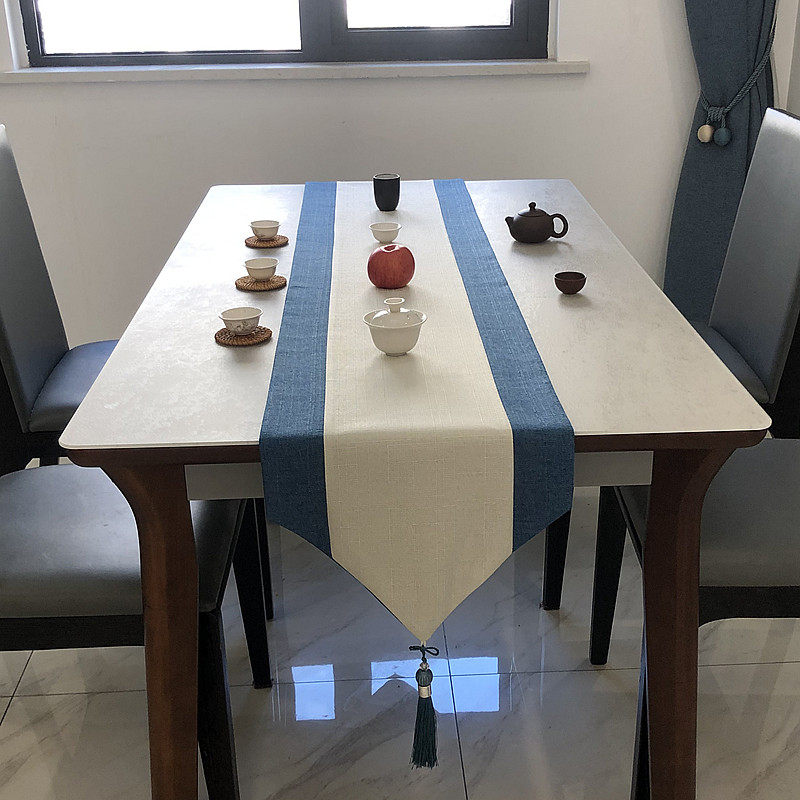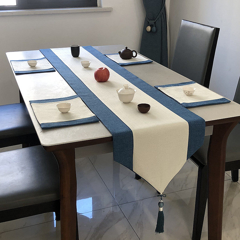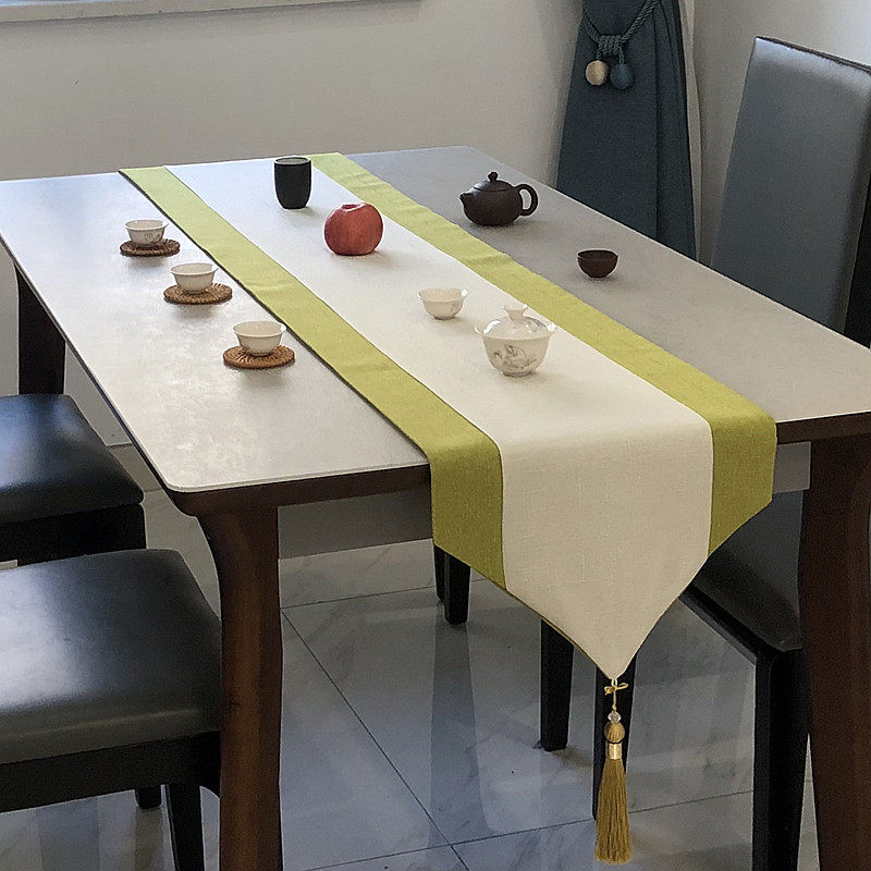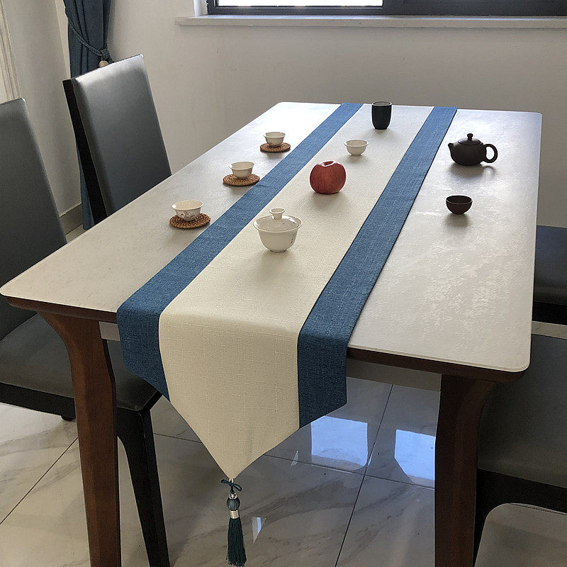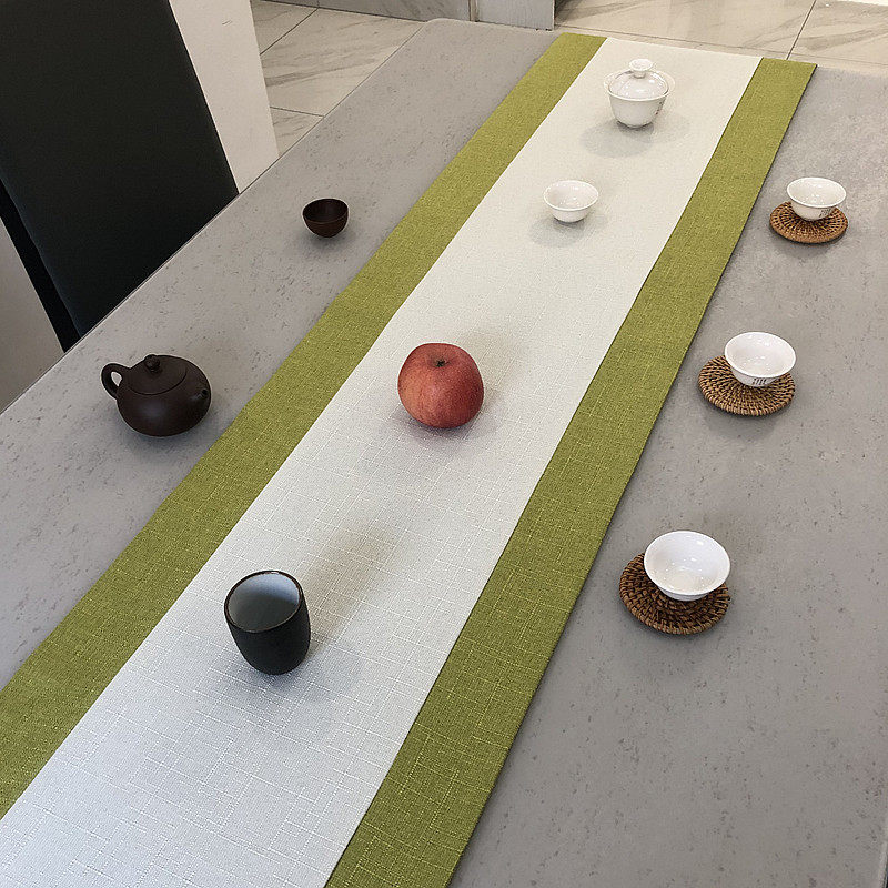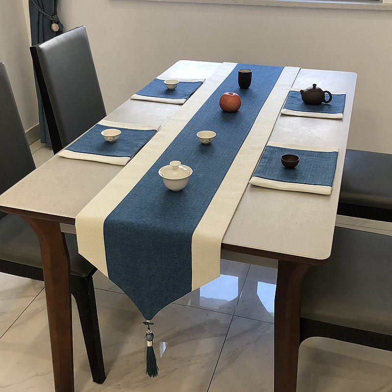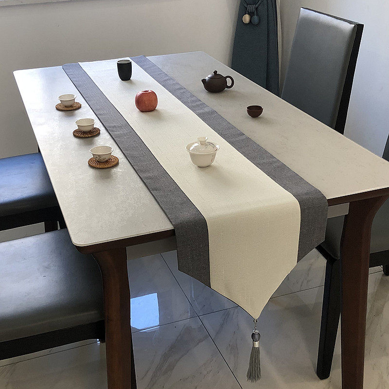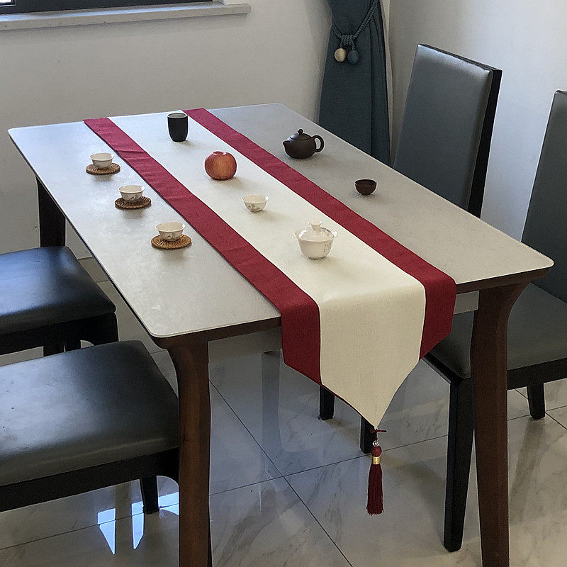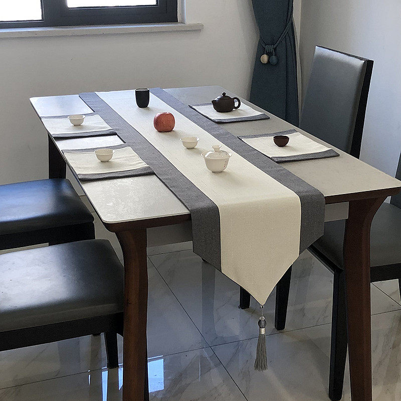 棉麻新中式简约禅意桌旗茶几餐桌垫席日式茶旗轻奢长条复古隔热