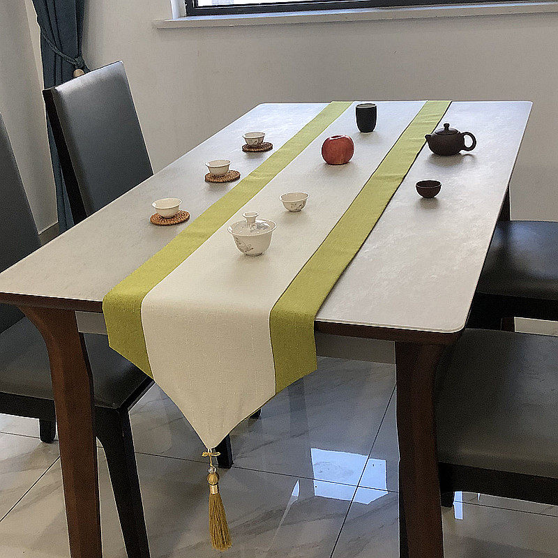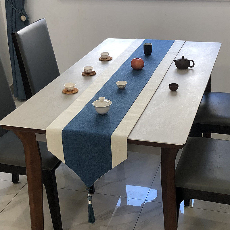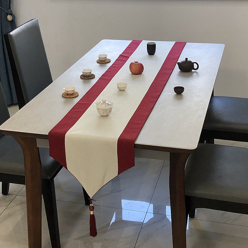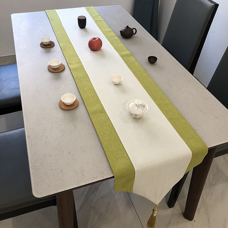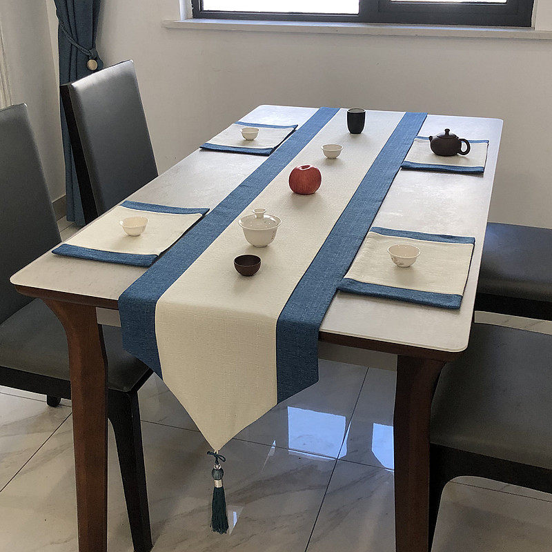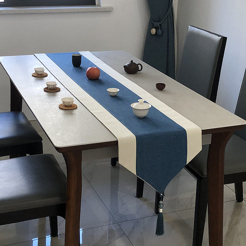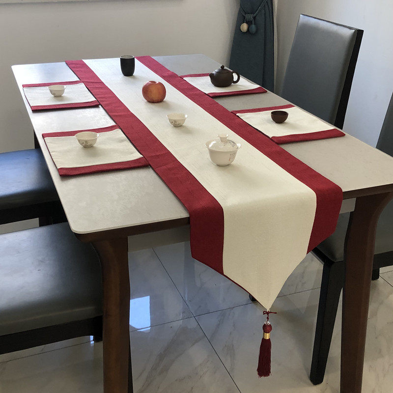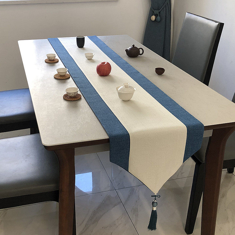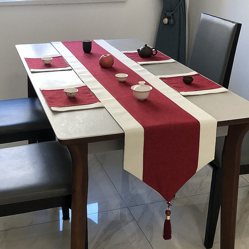 棉麻新中式简约禅意桌旗茶几餐桌垫席日式茶旗轻奢长条复古隔热