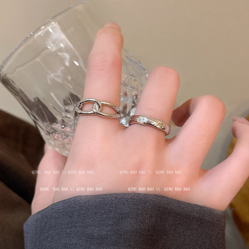 ins潮套装戒指女复古小众个性珍珠指环戒冷淡风感手饰品批发