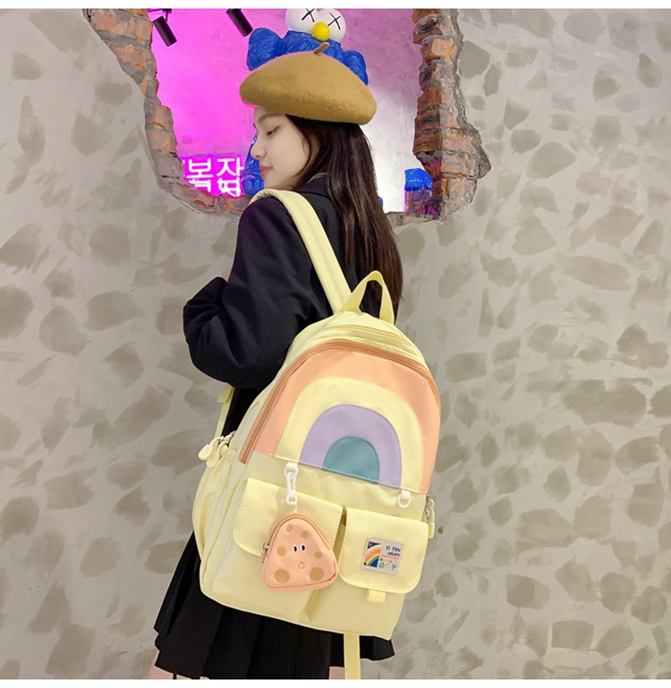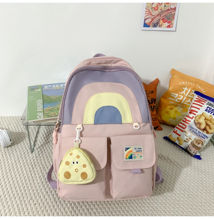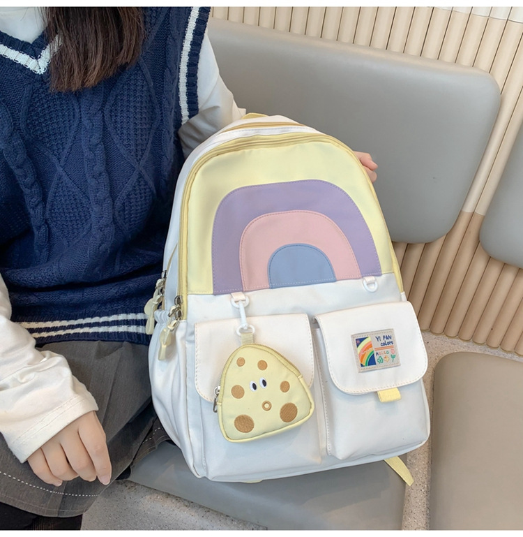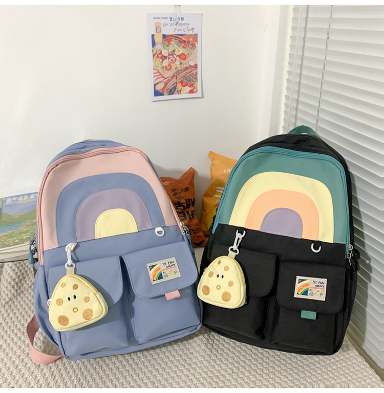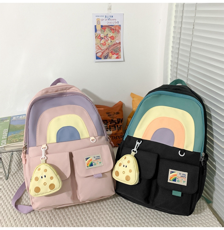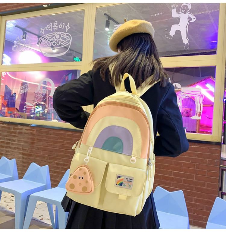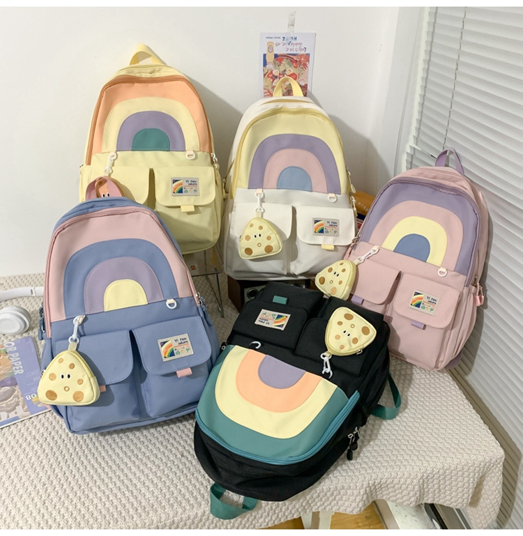 外贸书包女小学生简约可爱彩虹背包日系初中高中生大学生双肩包