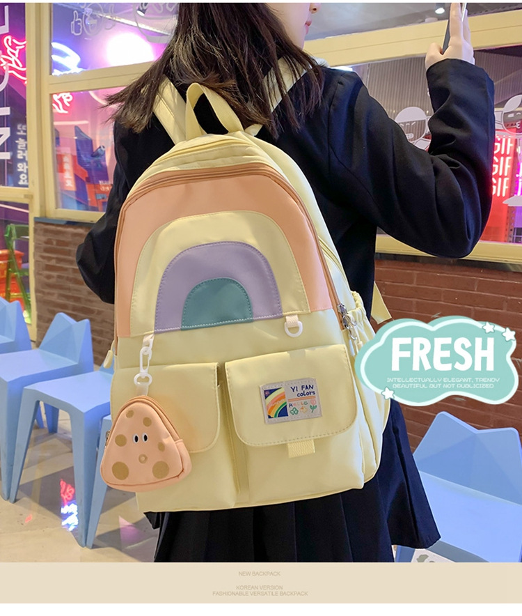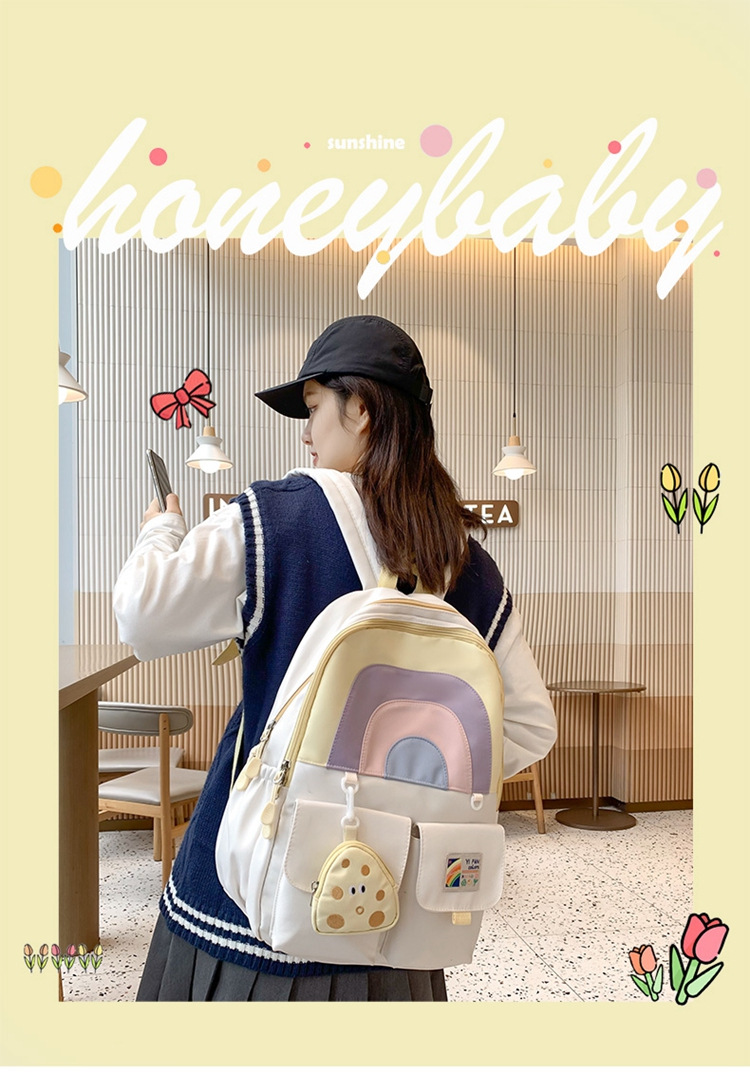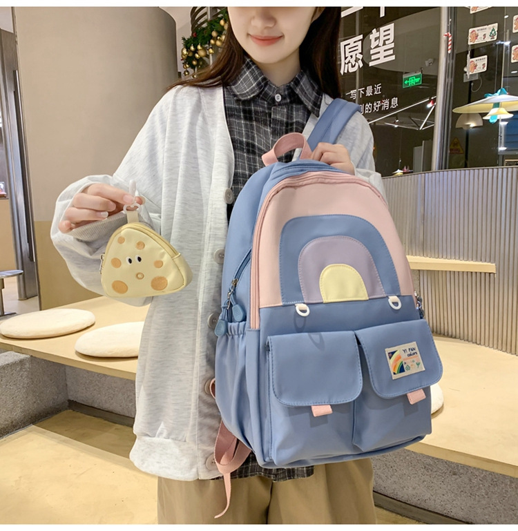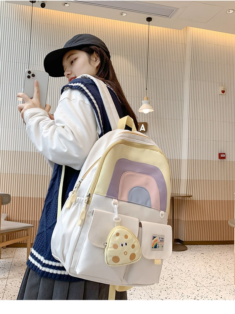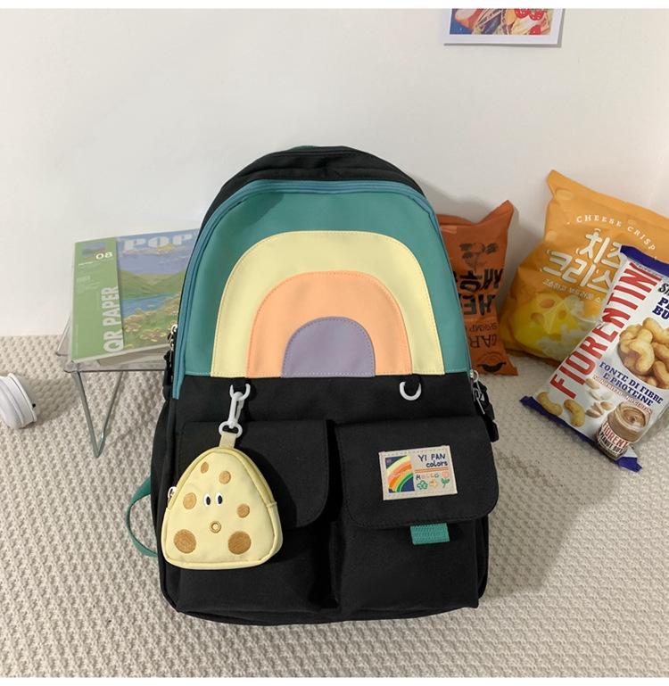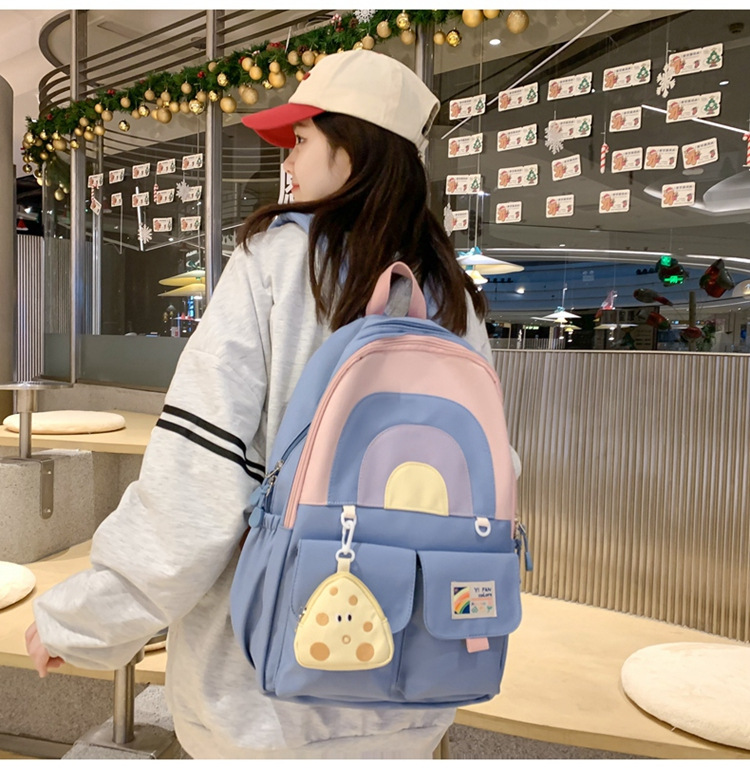 外贸书包女小学生简约可爱彩虹背包日系初中高中生大学生双肩包