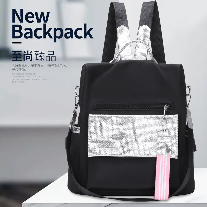 外贸批发2023新款电脑背包女士双肩包简约拼色简约旅行学生书包
