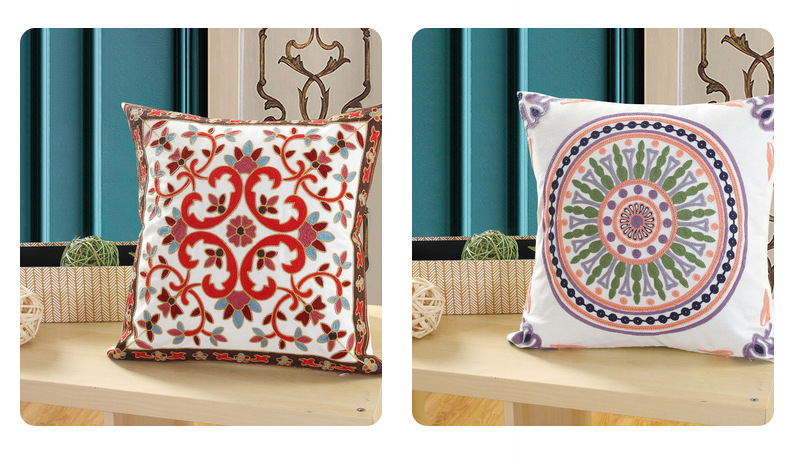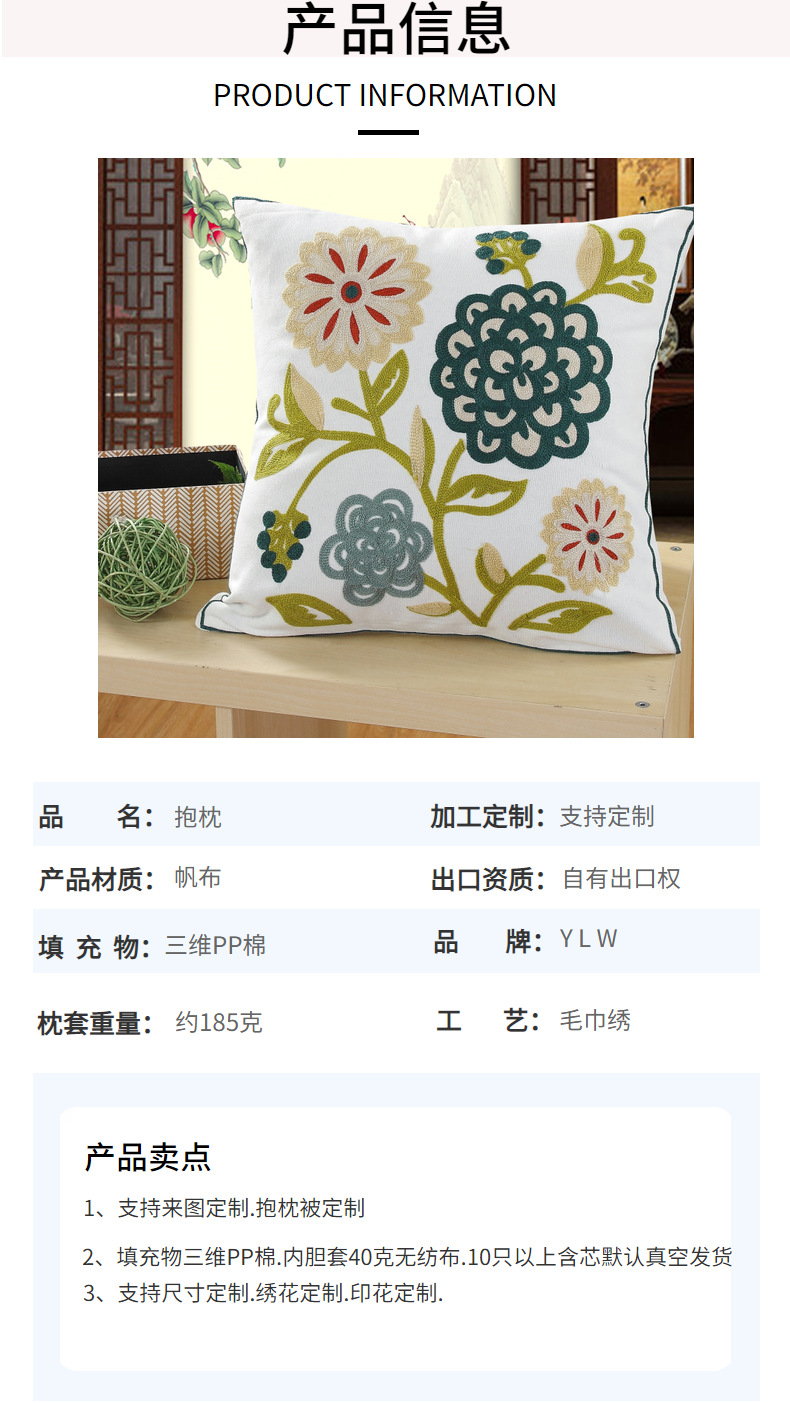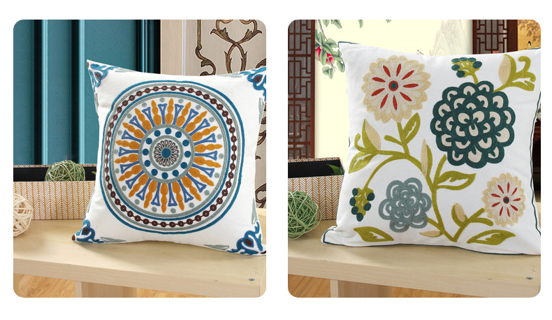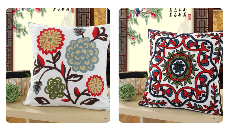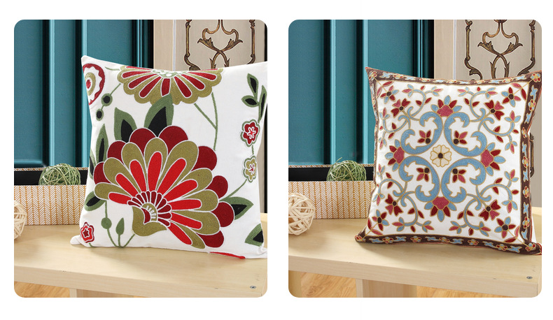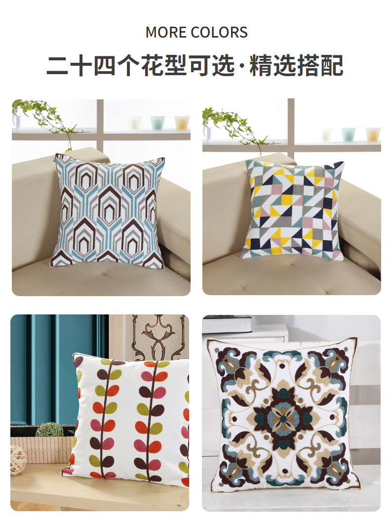 棉布抱枕套棉布枕头套家居椅垫小饰品花朵布艺抱枕刺绣绣花抱枕套