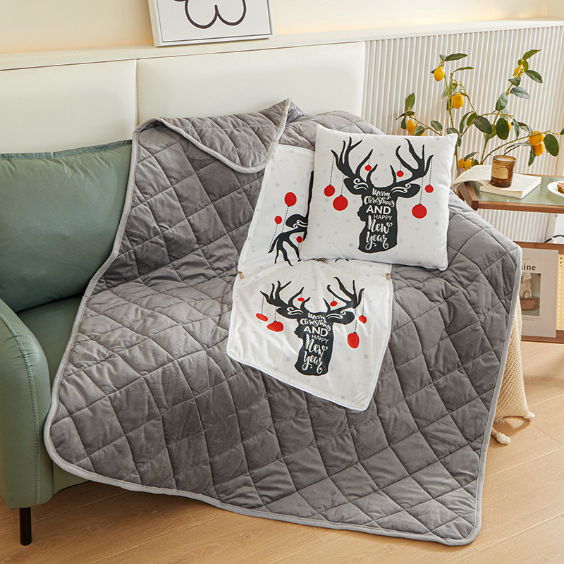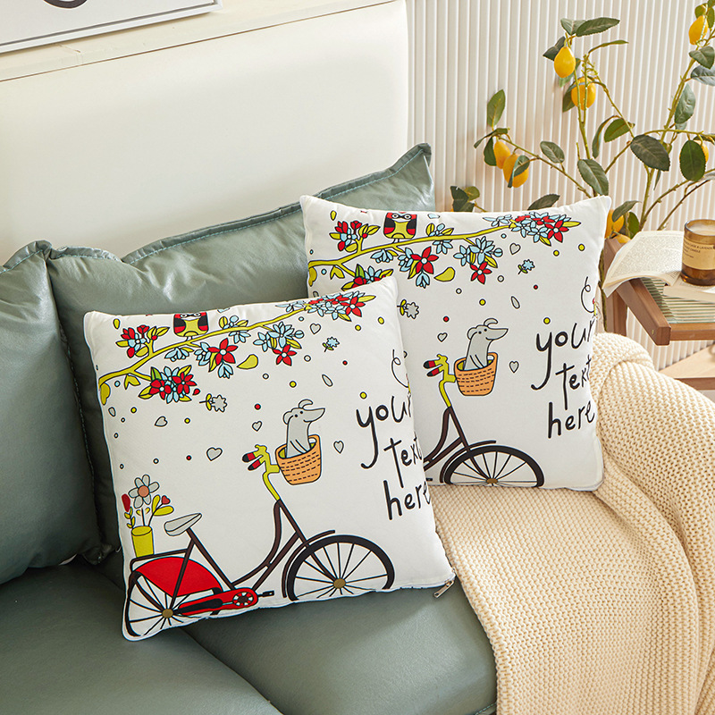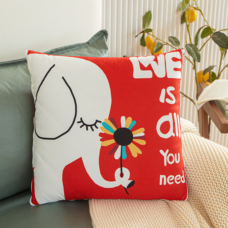 双面印花绗缝抱枕被办公室水晶绒卡通空调被二合一两用抱枕被现货