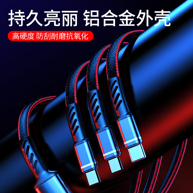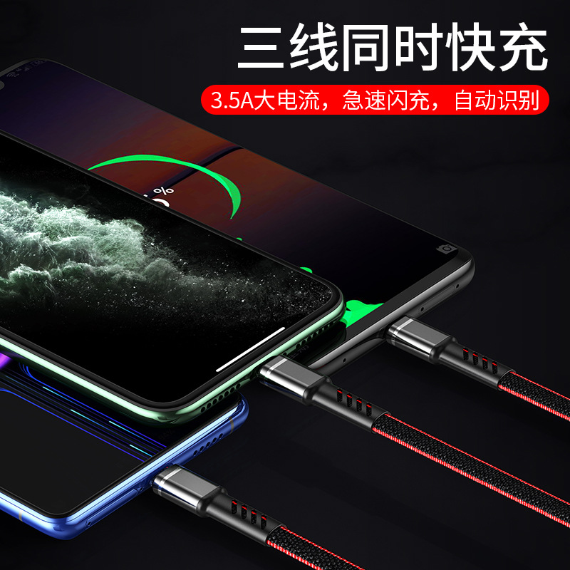 一拖三数据线5A快充线适用华为iPhone13Pro手机三合一多头充电线