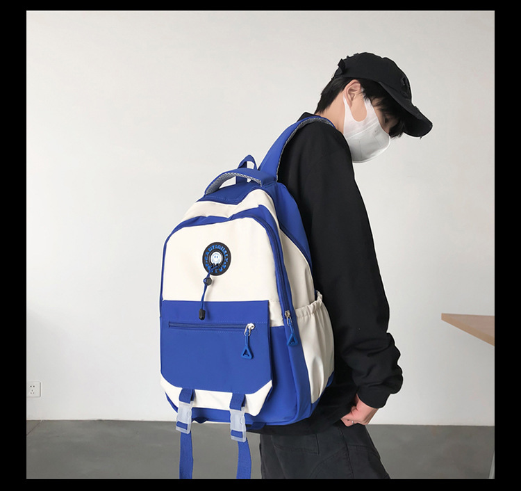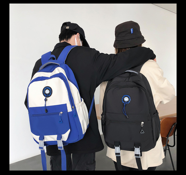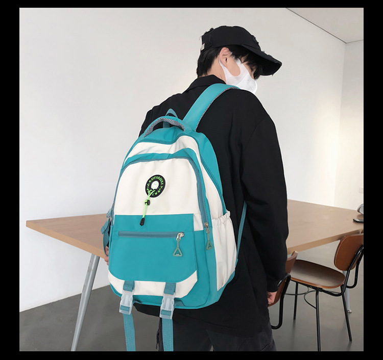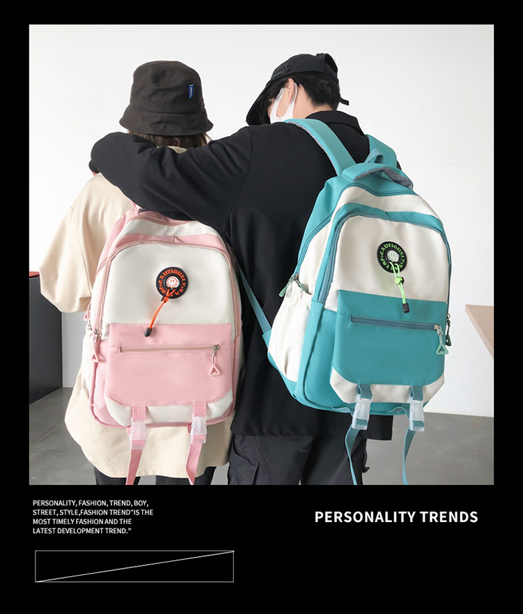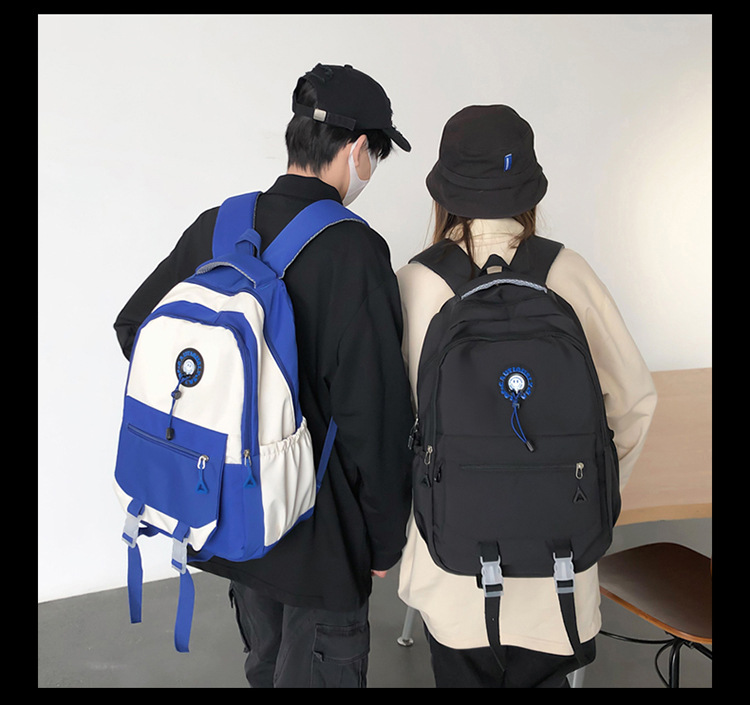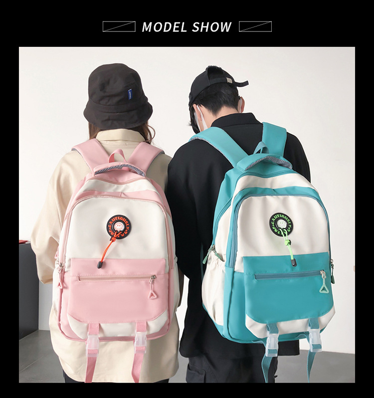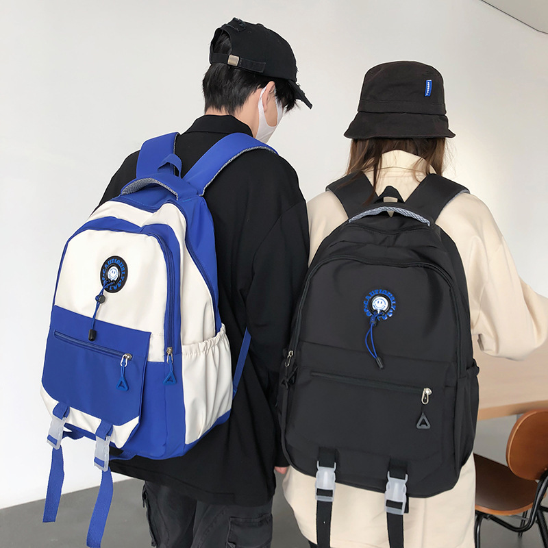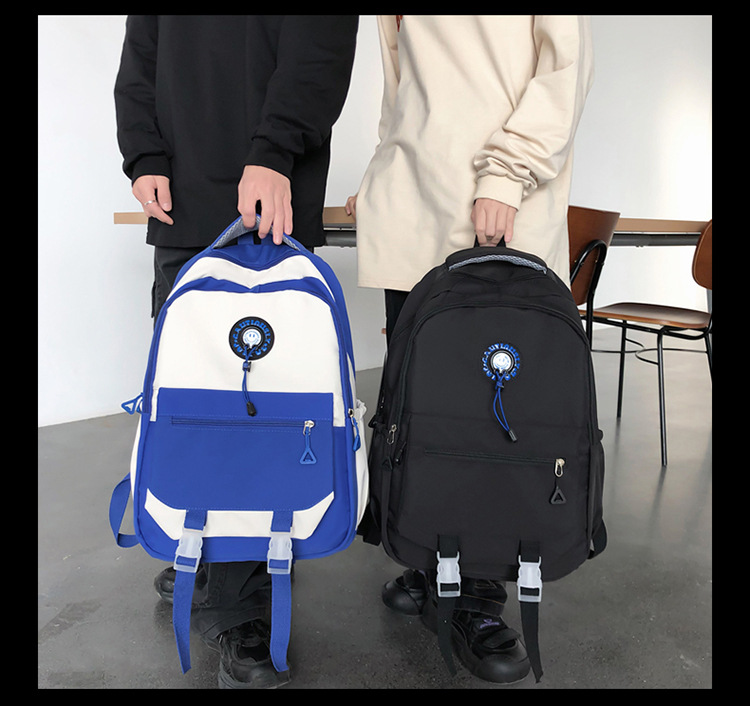 外贸批发2023新款书包女初中生结实耐用撞色双肩包男休闲潮流背包