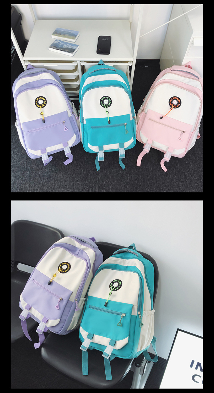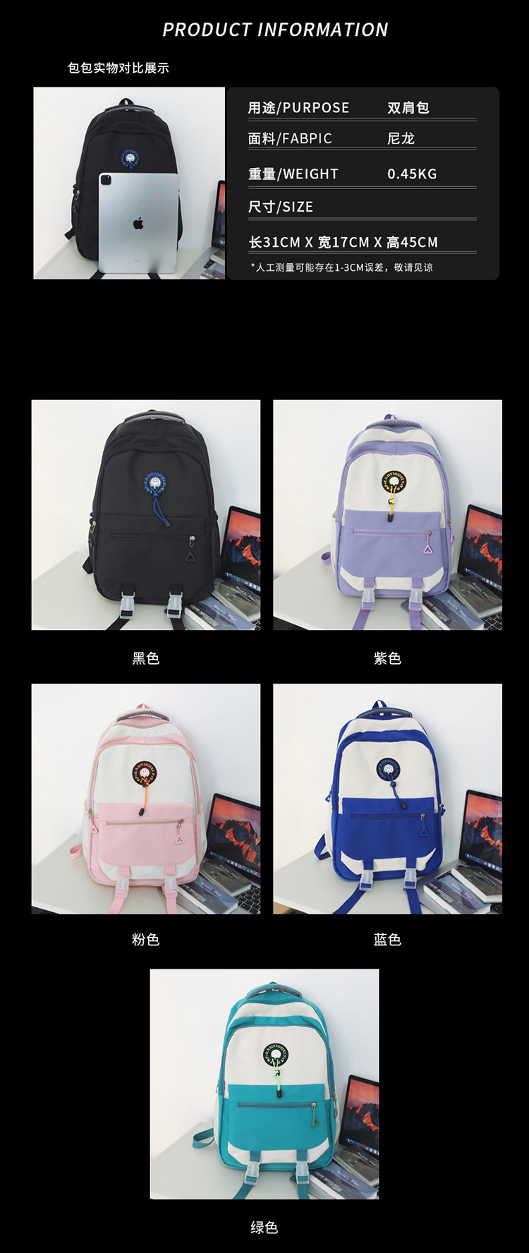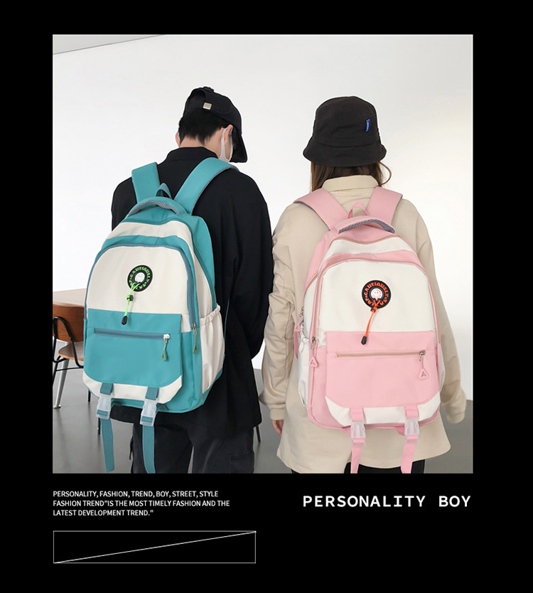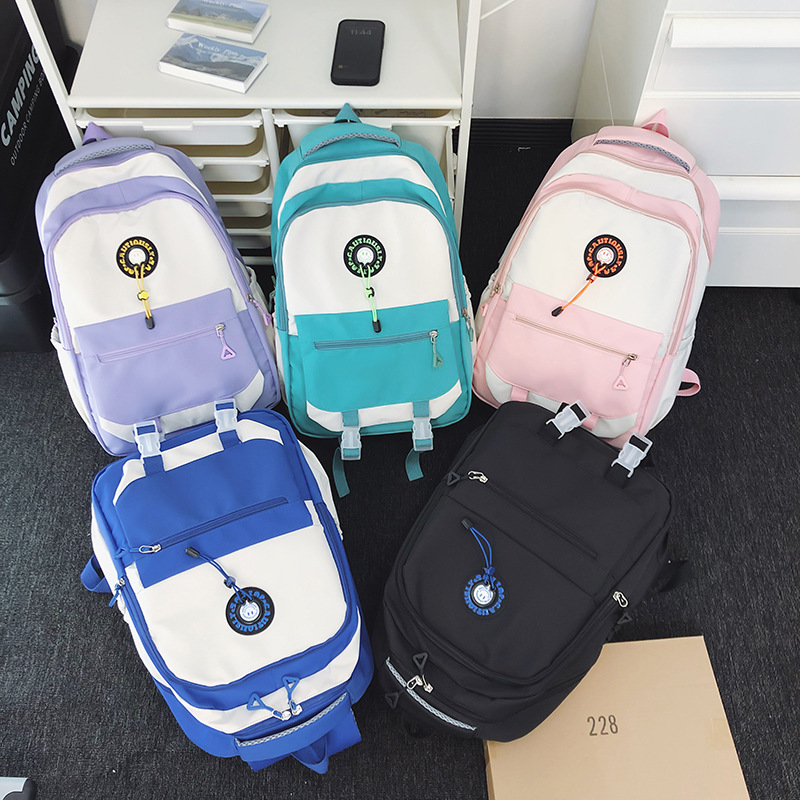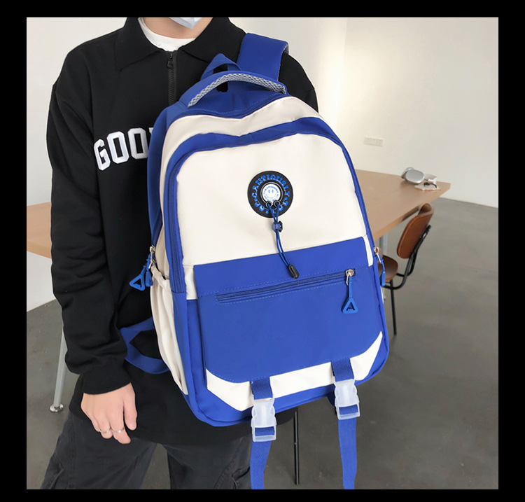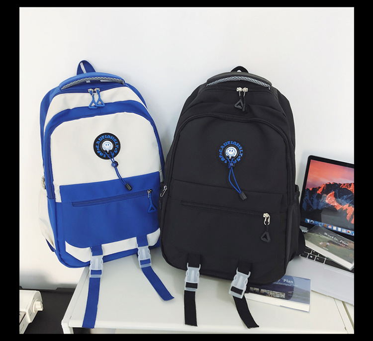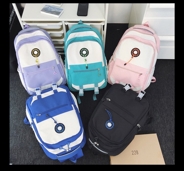 外贸批发2023新款书包女初中生结实耐用撞色双肩包男休闲潮流背包