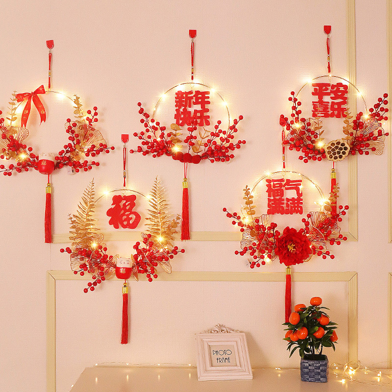 2023兔年新年花环挂件福字门挂装饰门口乔迁之喜装饰入宅布置品