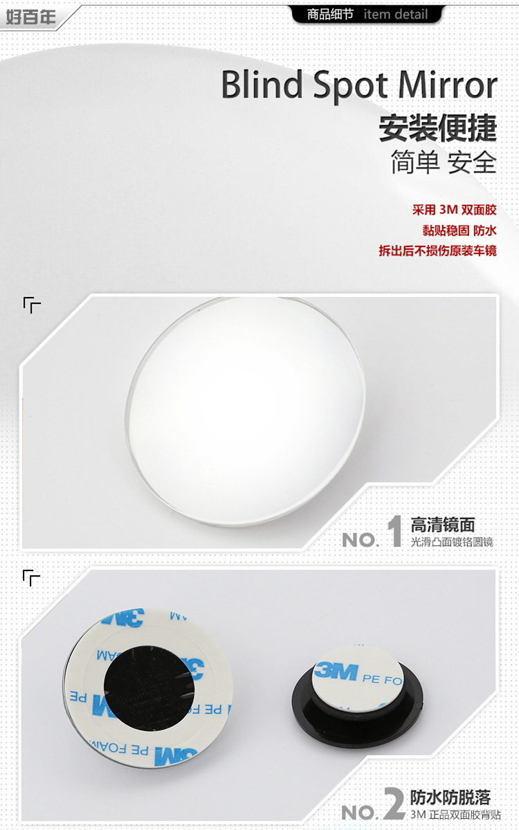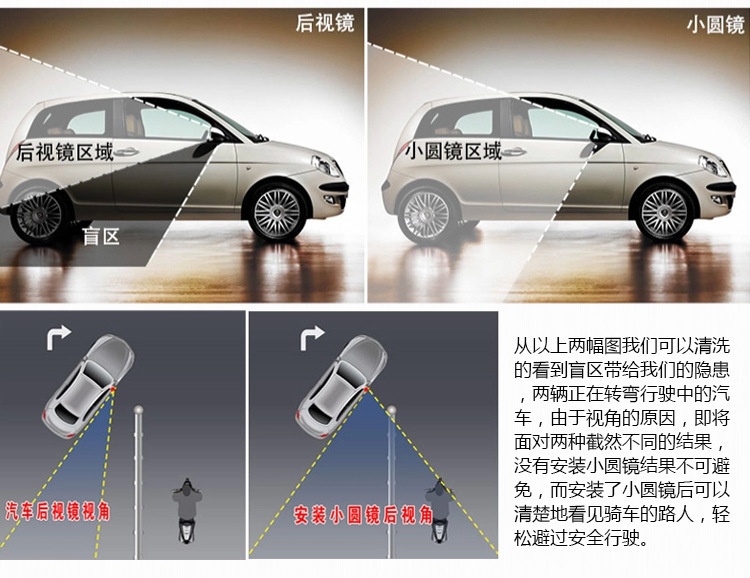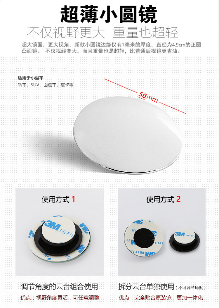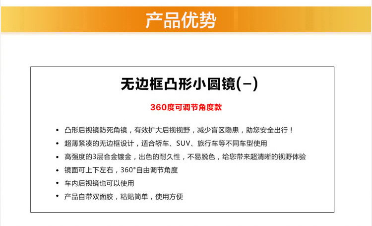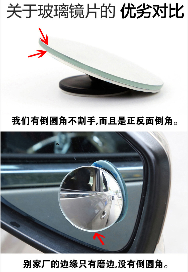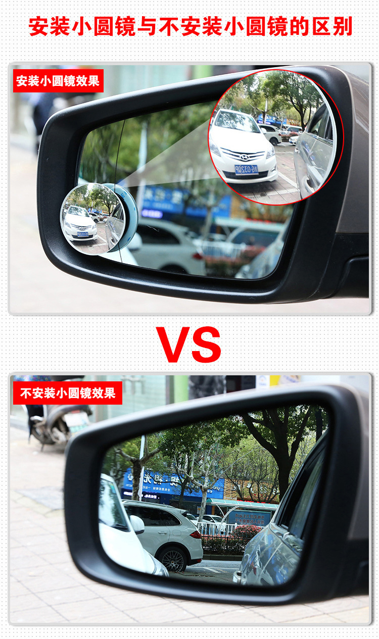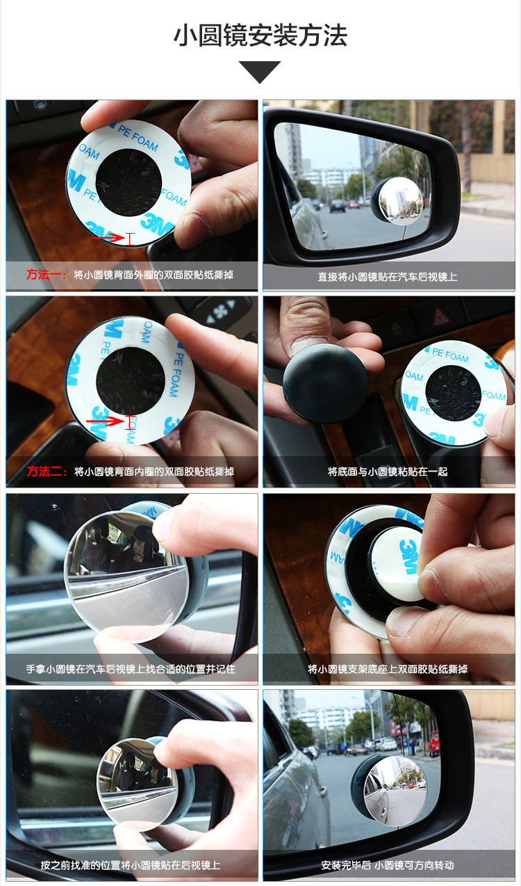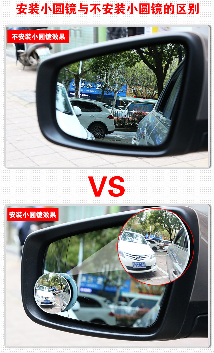 汽车后视镜360度倒车盲点镜广角镜高清无边可调节小圆镜防死角镜