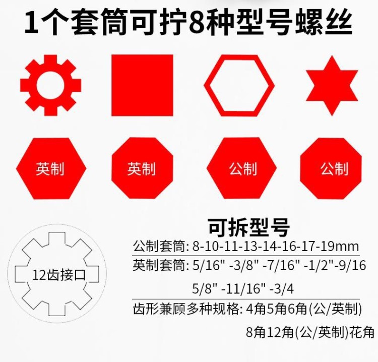 厂家直销供应八合一套筒扳手旋转狗骨头扳52合一扳手48合一扳手