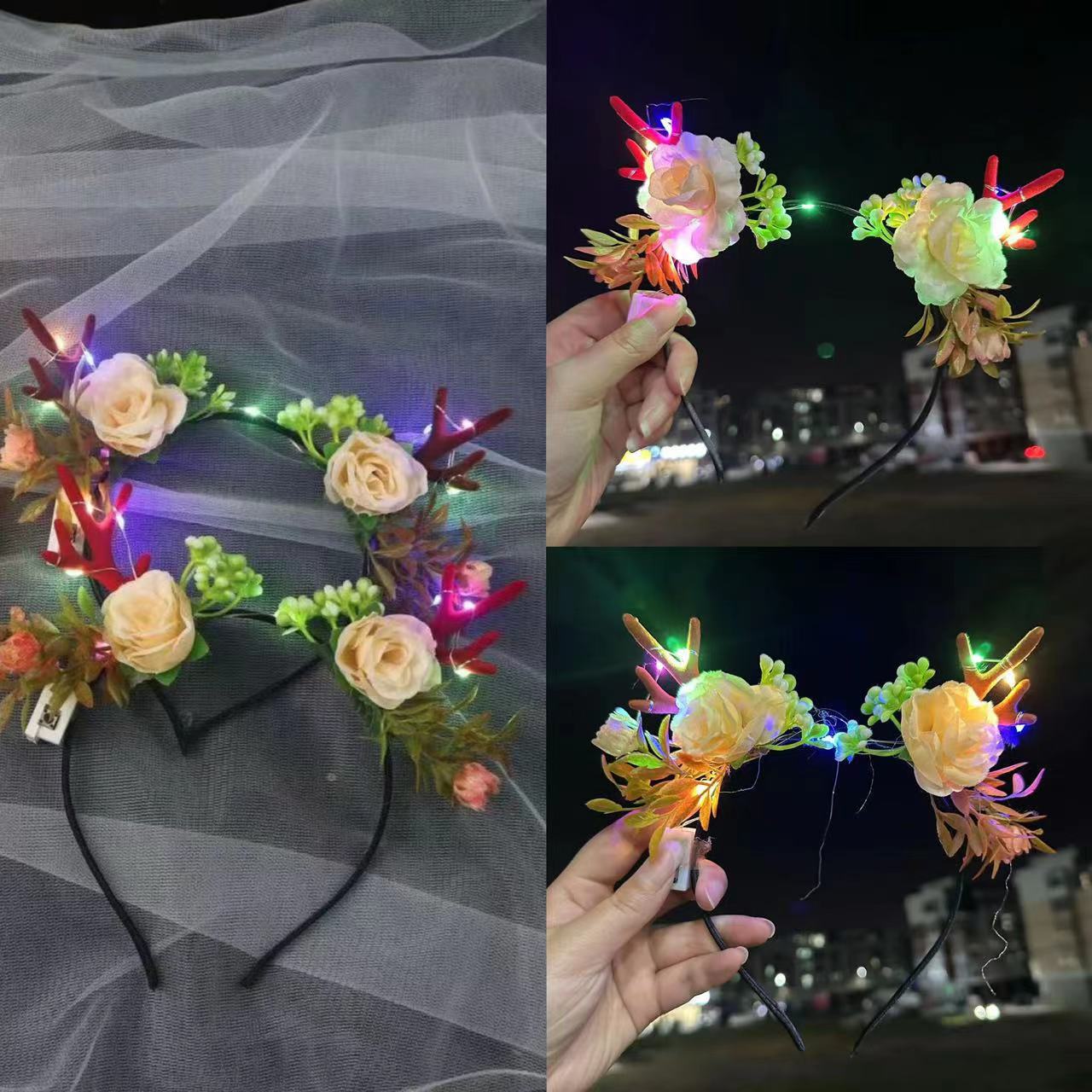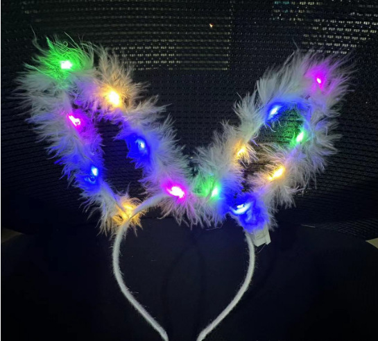 发光发箍毛绒狐狸耳朵发亮羽毛兔耳朵批发 地推礼品头饰地摊玩具